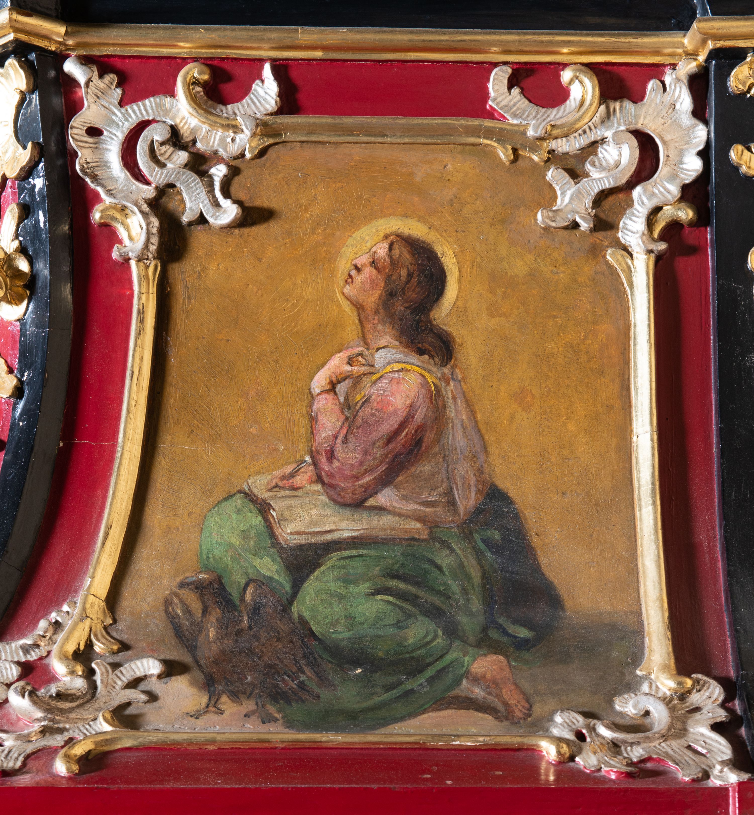 Liczne ubytki warstwy polichromii i złoceń, rozszczelnienie konstrukcji, zabrudzenie powierzchni.