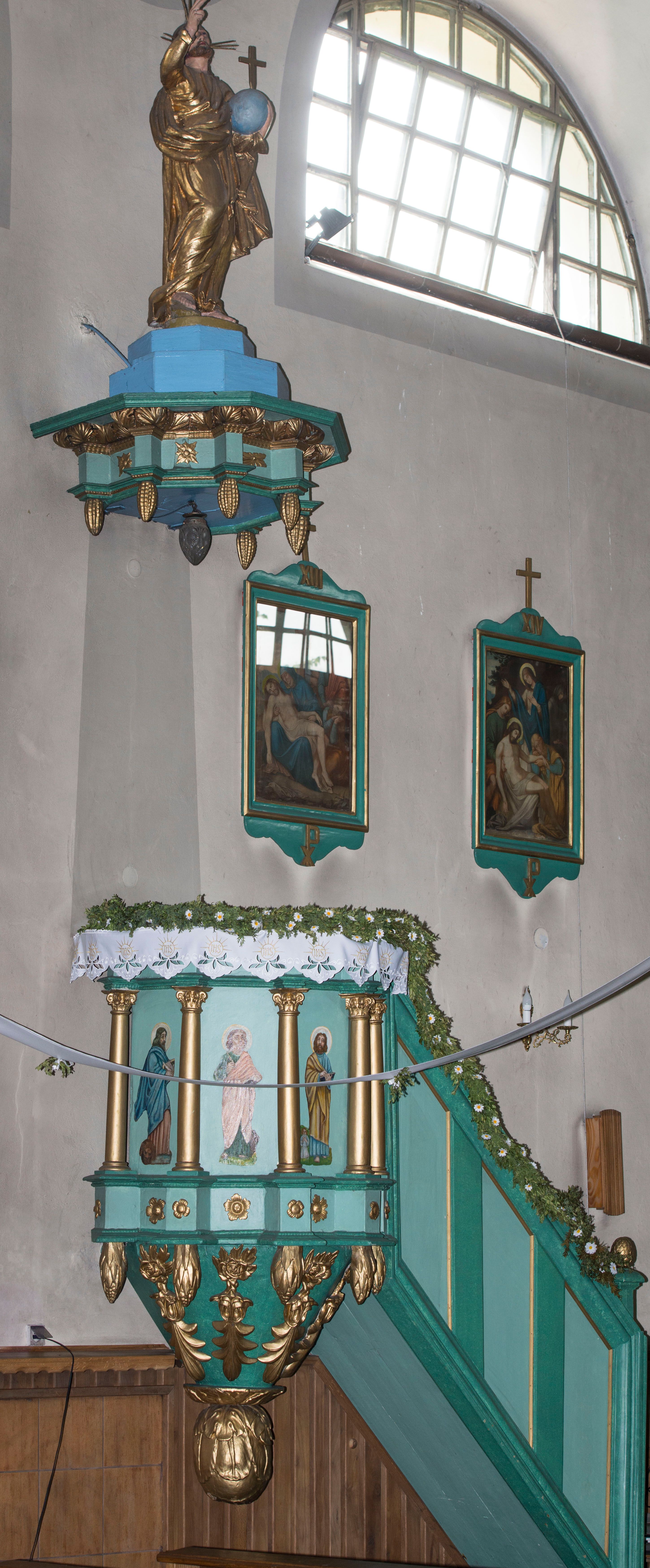 Ambona została wykonana w 1828 roku, zaraz po zakończeniu budowy kościoła. W tym samym czasie powstały trzy ołtarze oraz chór.