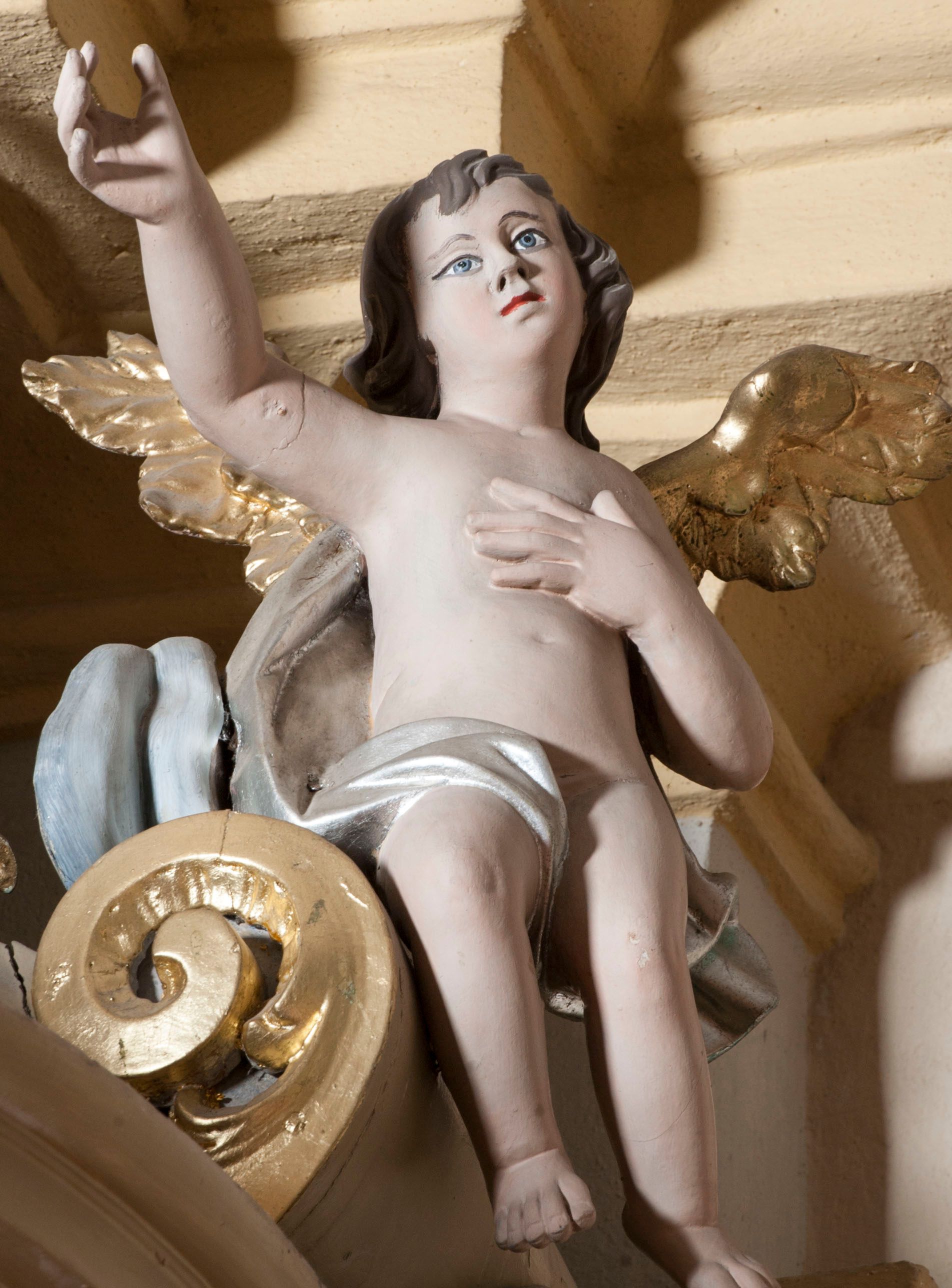 Dobry, widoczne ubytki warstwy malarskiej i pękniecia.
