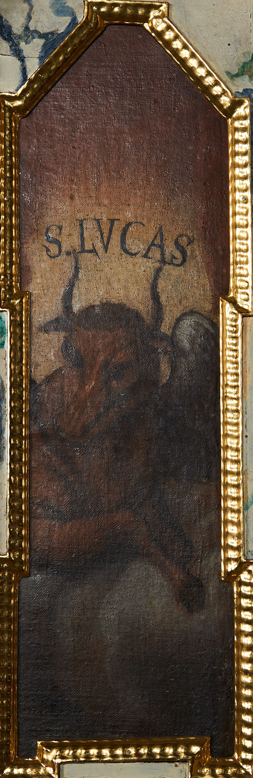 Czas powstania ambony można ustalić jedynie na podstawie analizy stylistycznej, bowiem brakuje o niej wzmianek w starszych przekazach źródłowych (najwcześniejszy zapis pochodzi z 1728 roku). Ambonę cechują manierystyczne formy oraz silnie załamane gzymsy, świadczące o znacznej plastyczności dzieła, co pozwala datować ten zabytek na XVII wiek. W źródłach archiwalnych brakuje wiadomości na temat autorów obrazów znajdujących się w płycinach ambony, jednak poziom artystyczny dzieł wskazuje na warsztat prowincjonalny. Atrybuty ewangelistów ukazane na ambonie (człowiek, lew, orzeł i wół) pojawiają się już w wizji Ezechiela (Ez 1, 1-14) i apokaliptycznym widzeniu św. Jana (Ap 4, 6-8). Symbole te znane były również w obrazie świata starożytnych Babilończyków, gdzie odnosiły się do zodiaku, pór roku i czterech stron świata. Każde z trzech zwierząt ucieleśnia szczególny typ siły fizycznej: lew – siła potężna, ognista, nieujarzmiona; orzeł – ostrość wzroku, wysokość i szybkość lotu; wół – odporność i wytrwałość. Z kolei człowiek oznacza istotę obdarzoną duszą, inteligencją i wolą. W wizji Ezechiela cechy te są poszerzone i opisują Boga: człowiek – poznanie i wolę Boga, wół – jego siłę, lew – potęgę, a orzeł – wszechwiedzę. Z odniesieniem czterech symboli do tajemnic Chrystusa i do Ewangelii spotykamy się po raz pierwszy u św. Hieronima. W Lidii odkryto blok marmuru z następującym tekstem, odnoszącym się do Chrystusa i odpowiadający czterem atrybutom ewangelistów: „Jak człowiek cierpiał, jak lew zwyciężał, jak orzeł wzleciał, jak wół został zabity na ofiarę”.