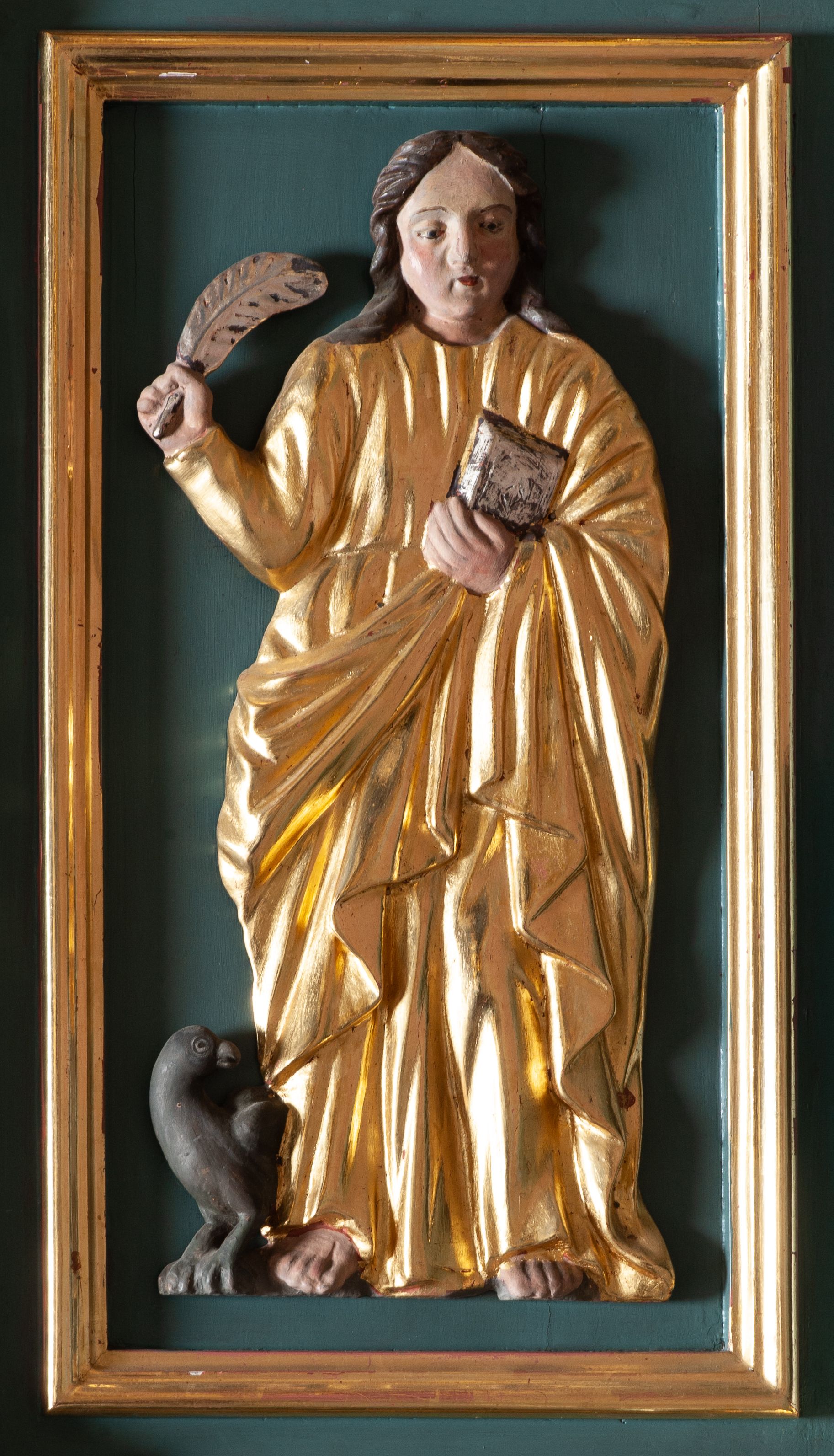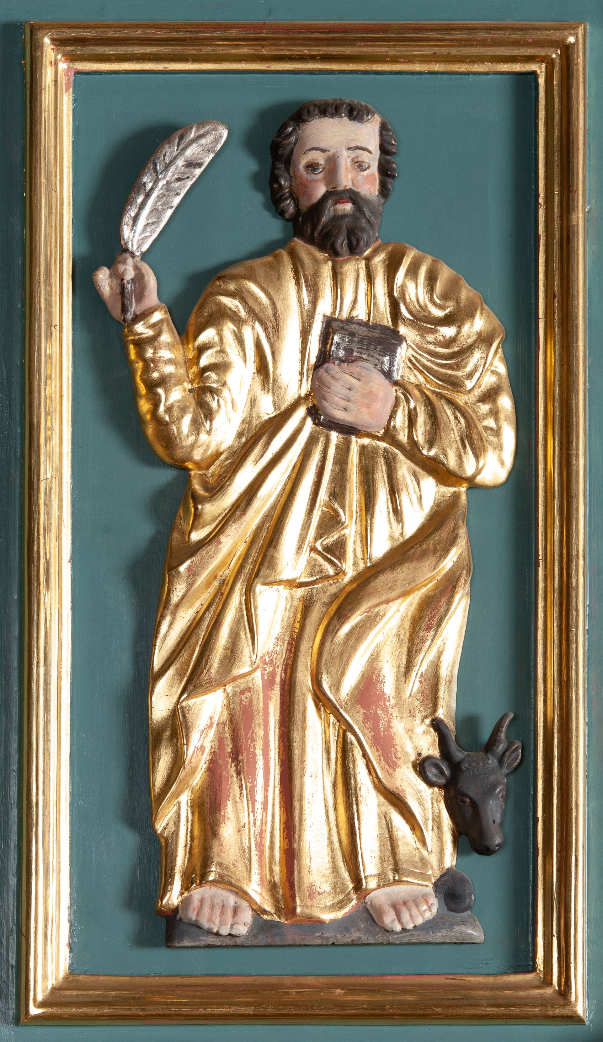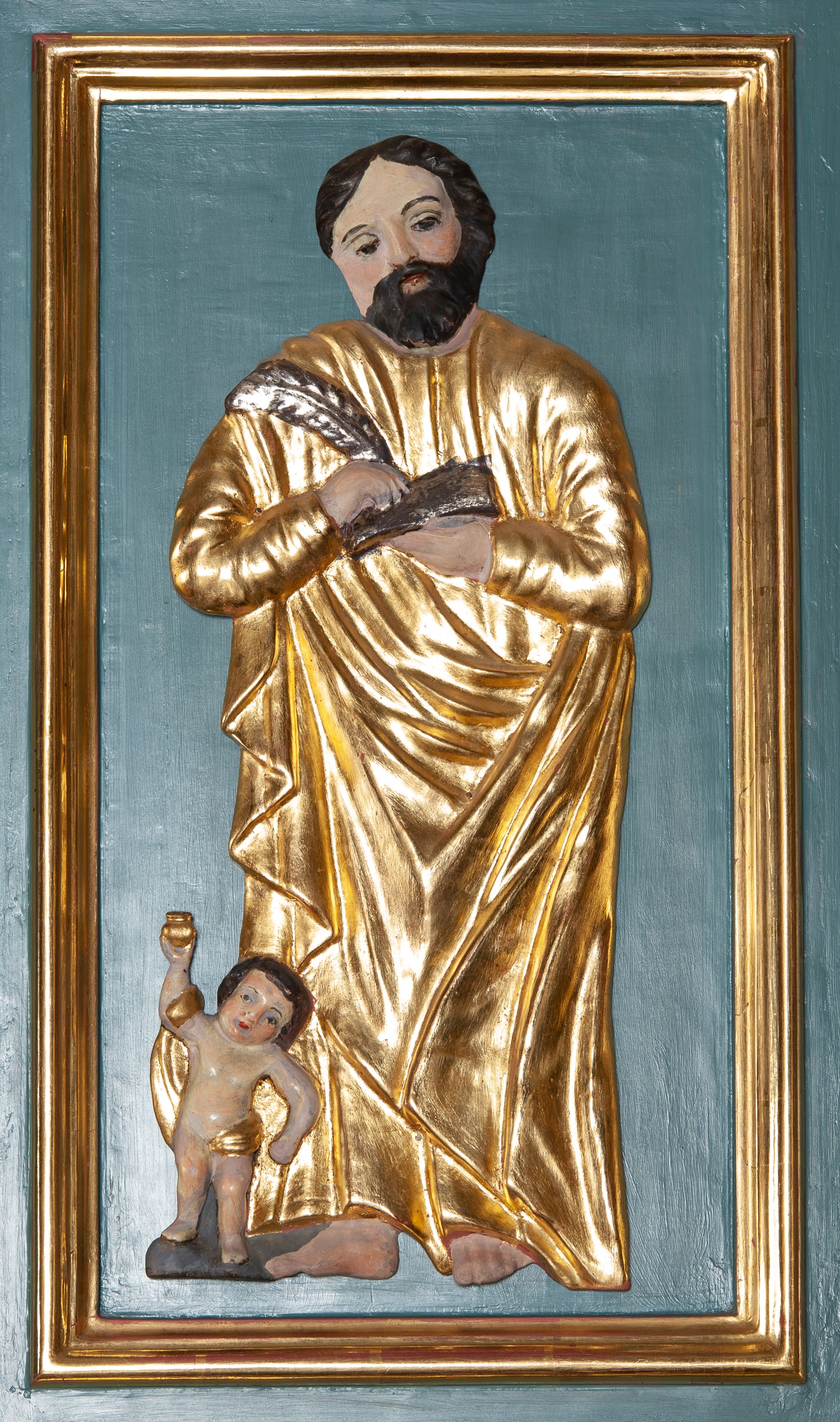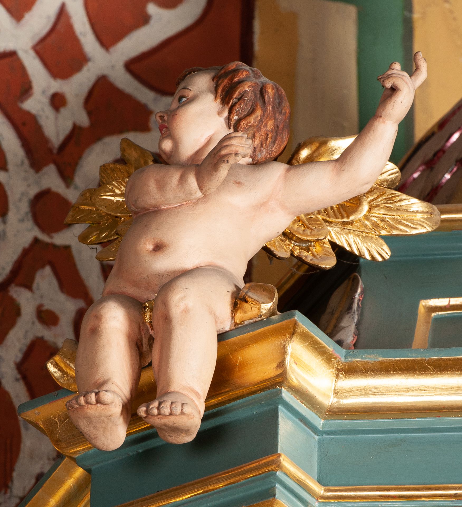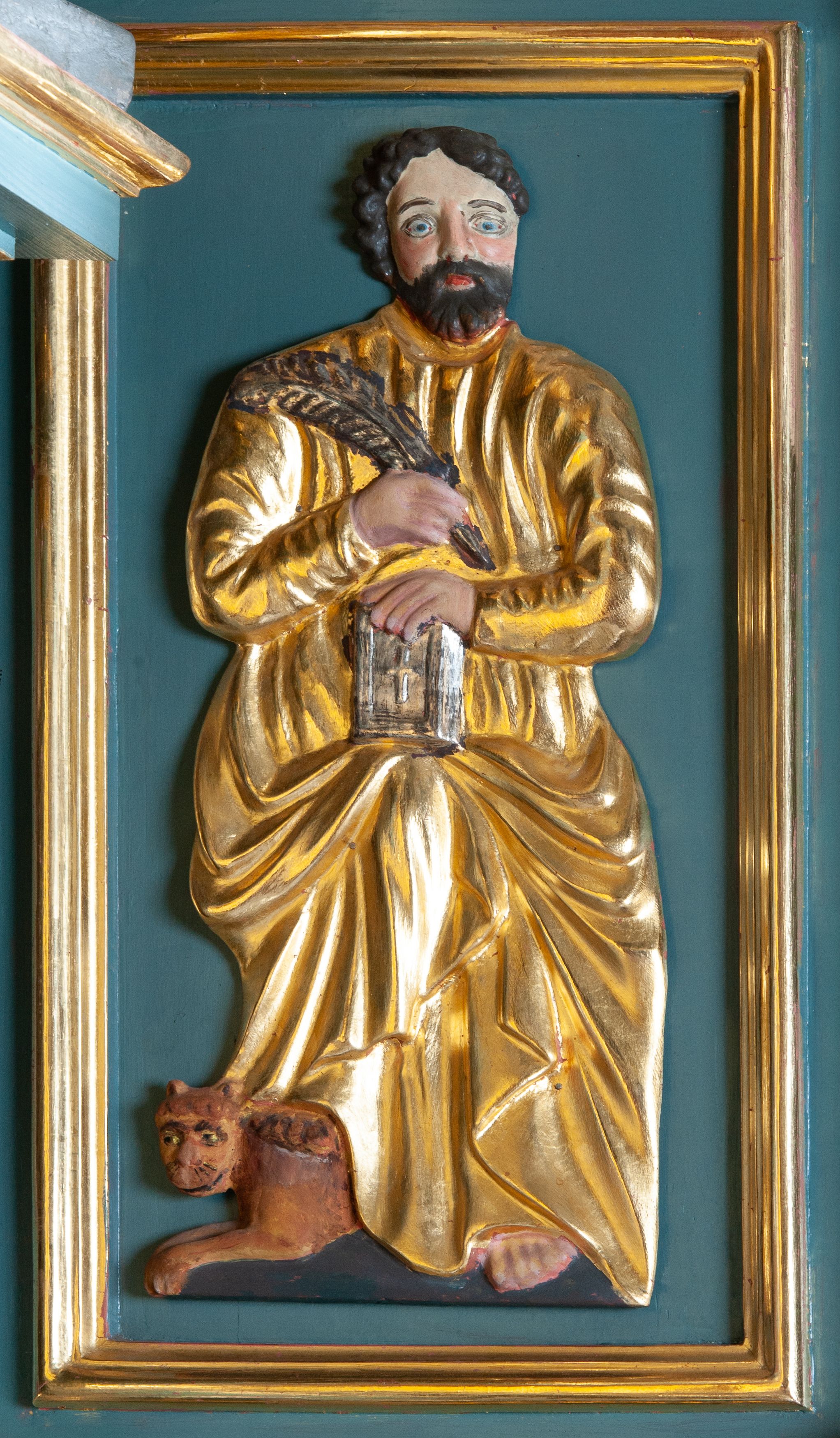 Struktura polichromowana w kolorze szaro-niebieskim, profile i ornamentyka złocone.