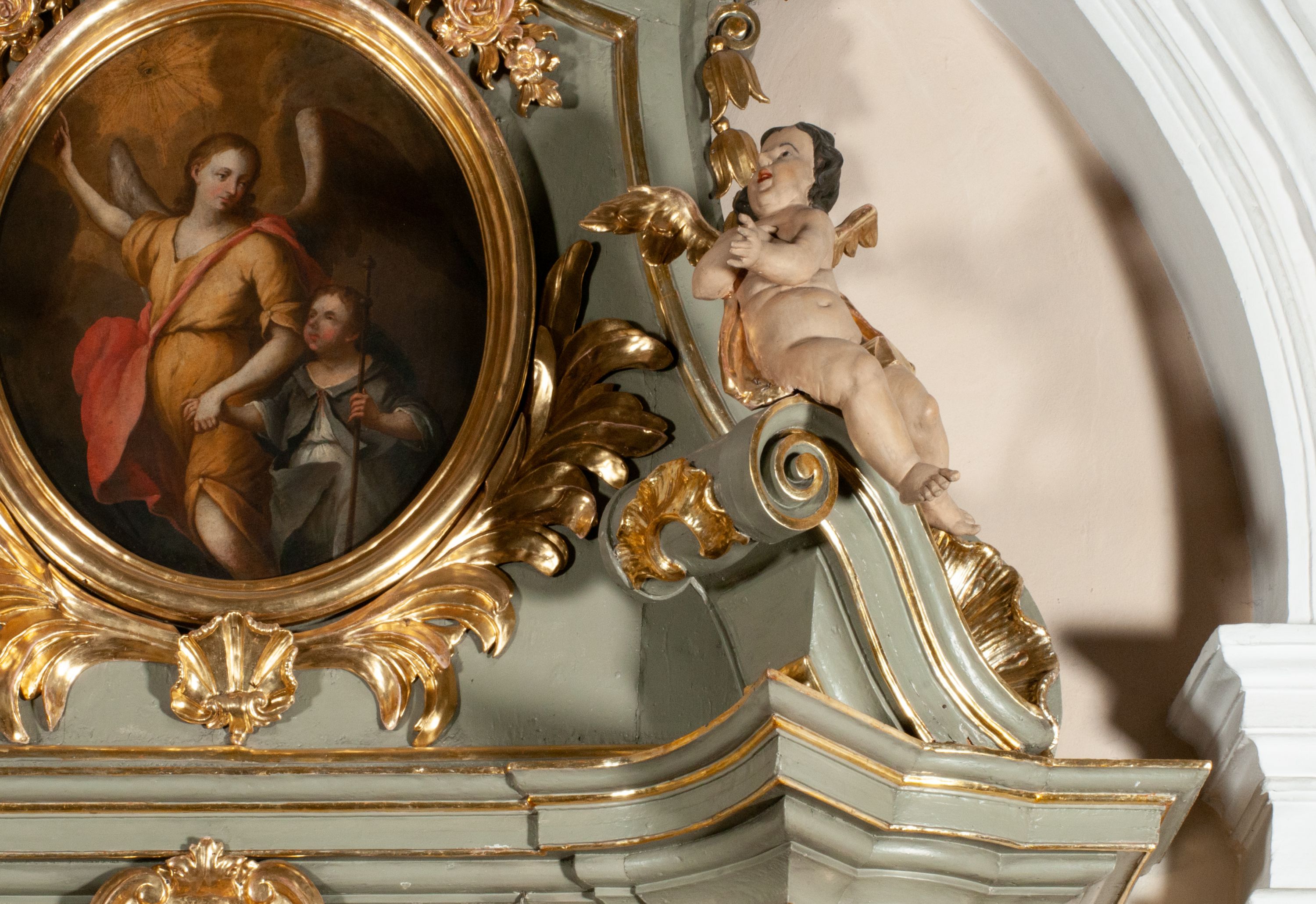 Obraz w zwieńczeniu ołtarza powstałego w połowie XVIII wieku.