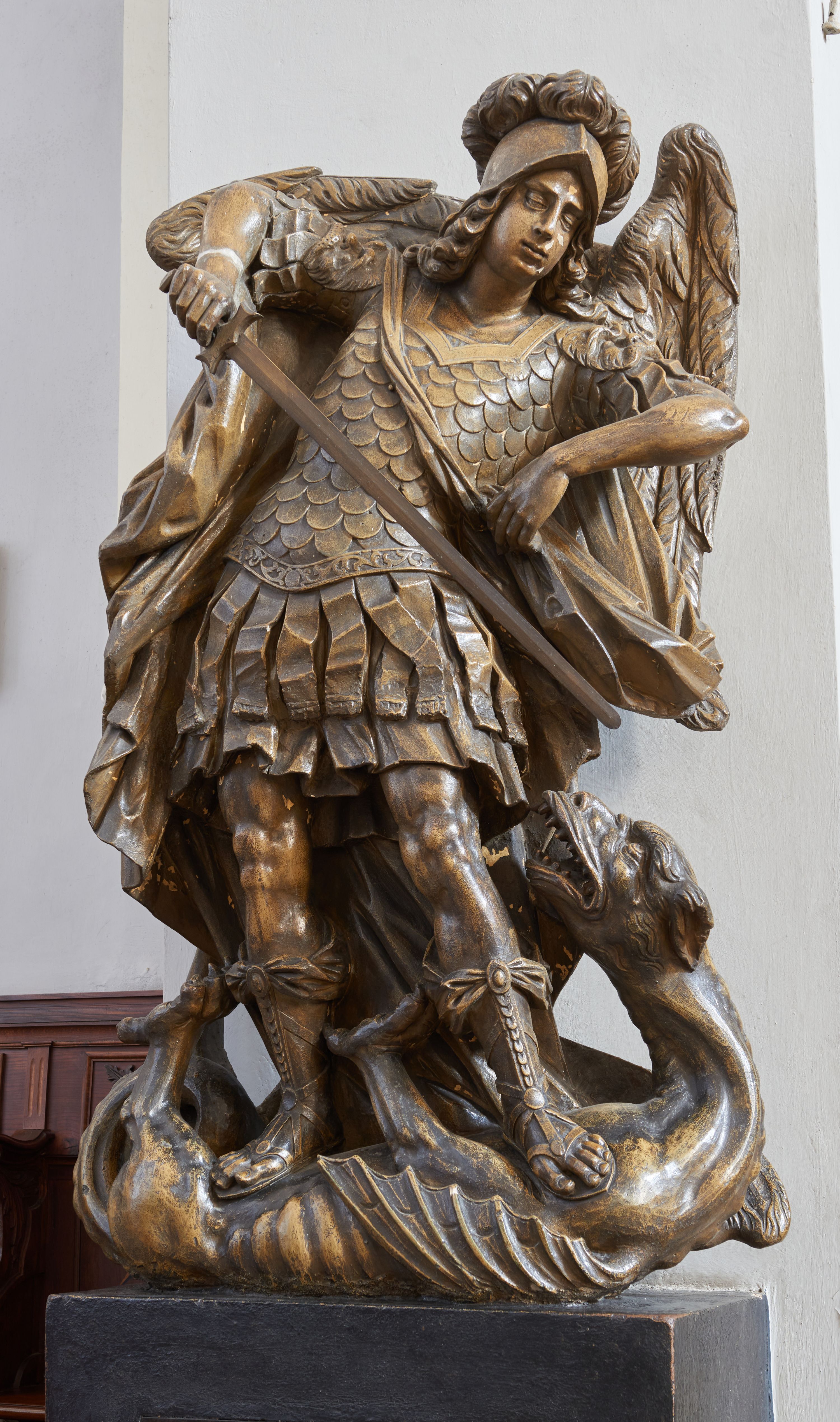 Rzeźba Archanioła Michała pochodzi prawdopodobnie z kościoła Karmelitów bosych p. w. św. Michała
