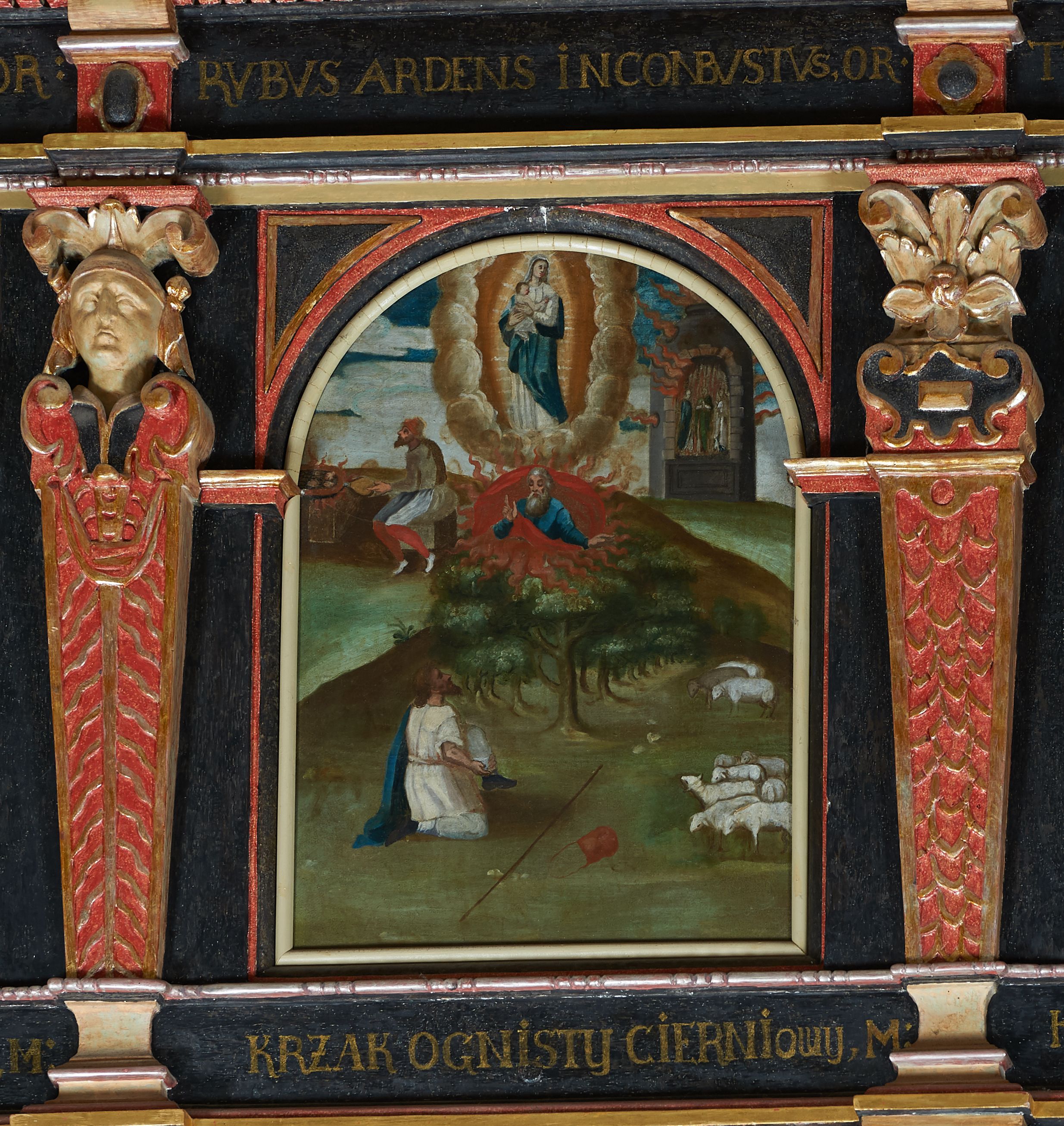 5. „RVBVS ARDENS INCONBVSTVS, OR(A PRO NOBIS)”, „KRZAK OGNISTY CIERNIowy, M(ÓDL SIĘ ZA NAMI)”