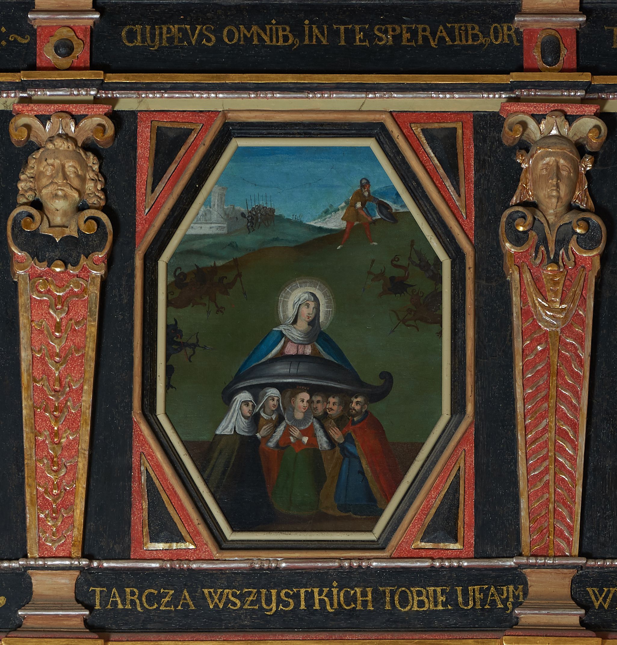 8. „CLYPEVS OMNIB, IN TE SPERATIB, OR(A PRO NOBIS)”, „TARCZA WSZYSTKICH TOBIE UFAJ[ĄCY]M”