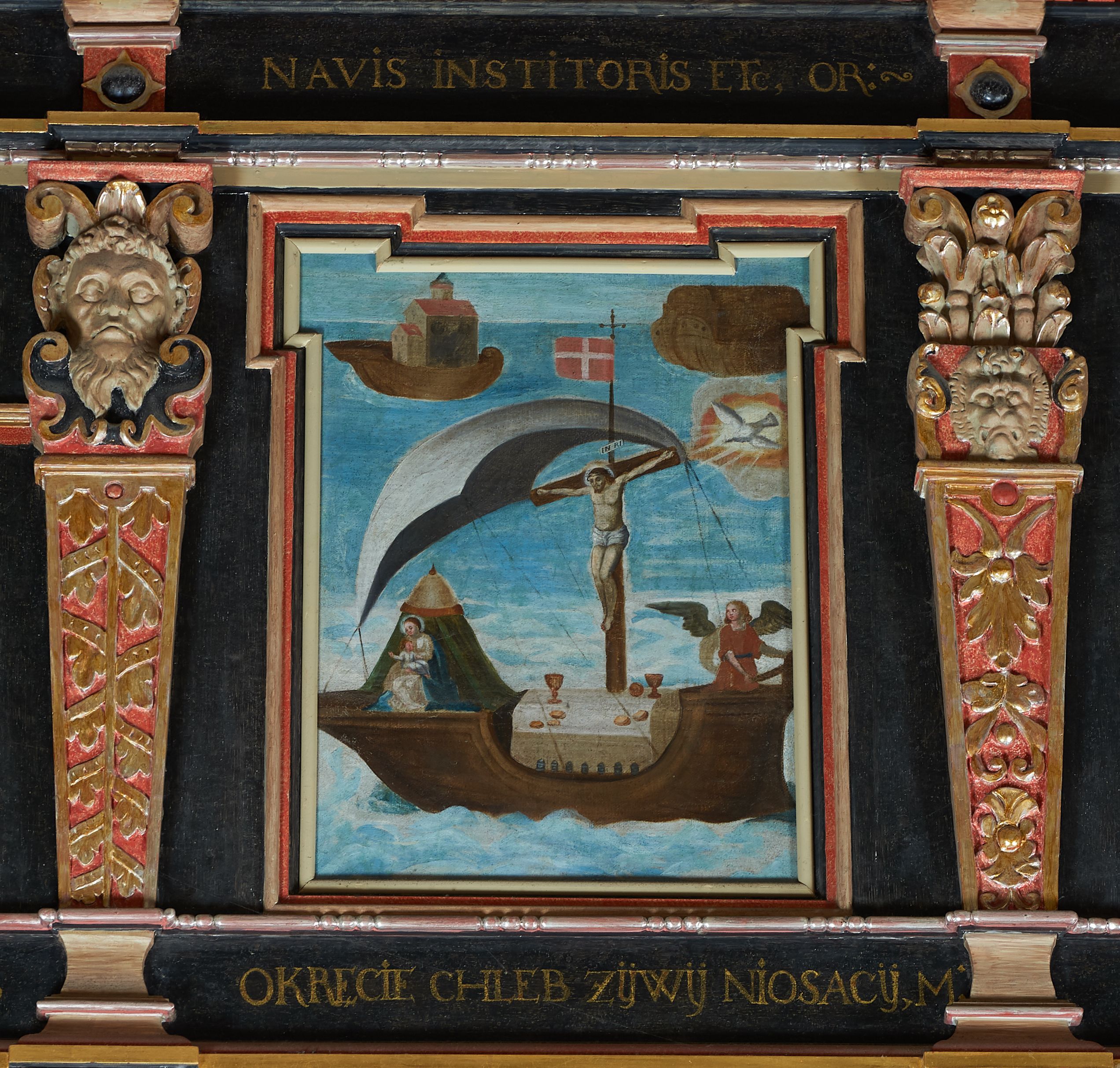 8. „NAVIS INSTITORIS ETC, OR(A PRO NOBIS)”, „OKĘCIE CHLEB ŻŸWŸ NIOSACŸ, M(ÓDL SIĘ ZA NAMI)”