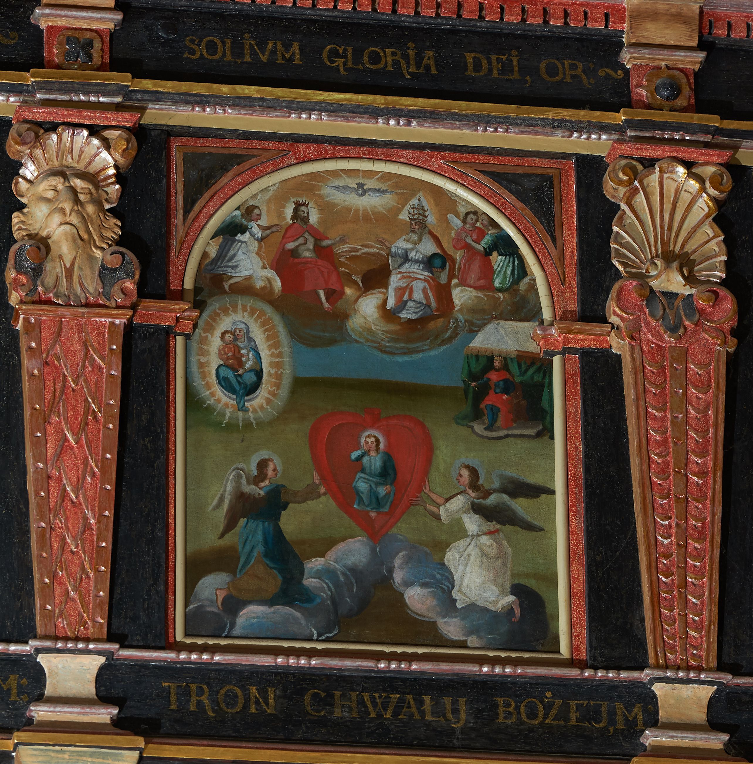 13. „SOLVM GLORIA DEI, OR(A PRO NOBIS)”, „TRON CHWAŁY BOŻEJ, M(ÓDL SIĘ ZA NAMI)”