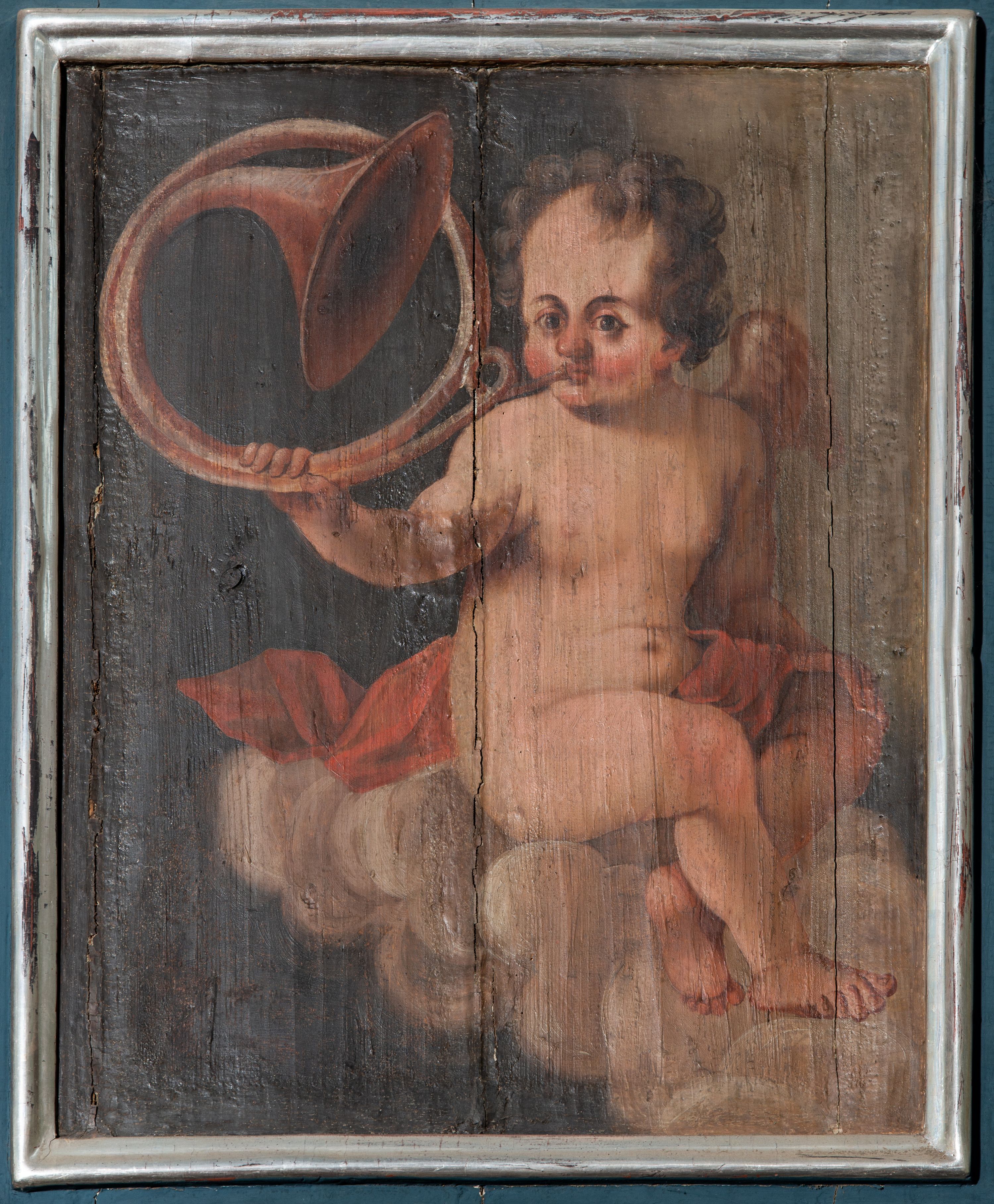 Spękania drewna, przetarcia srebrzeń i polichromii.
