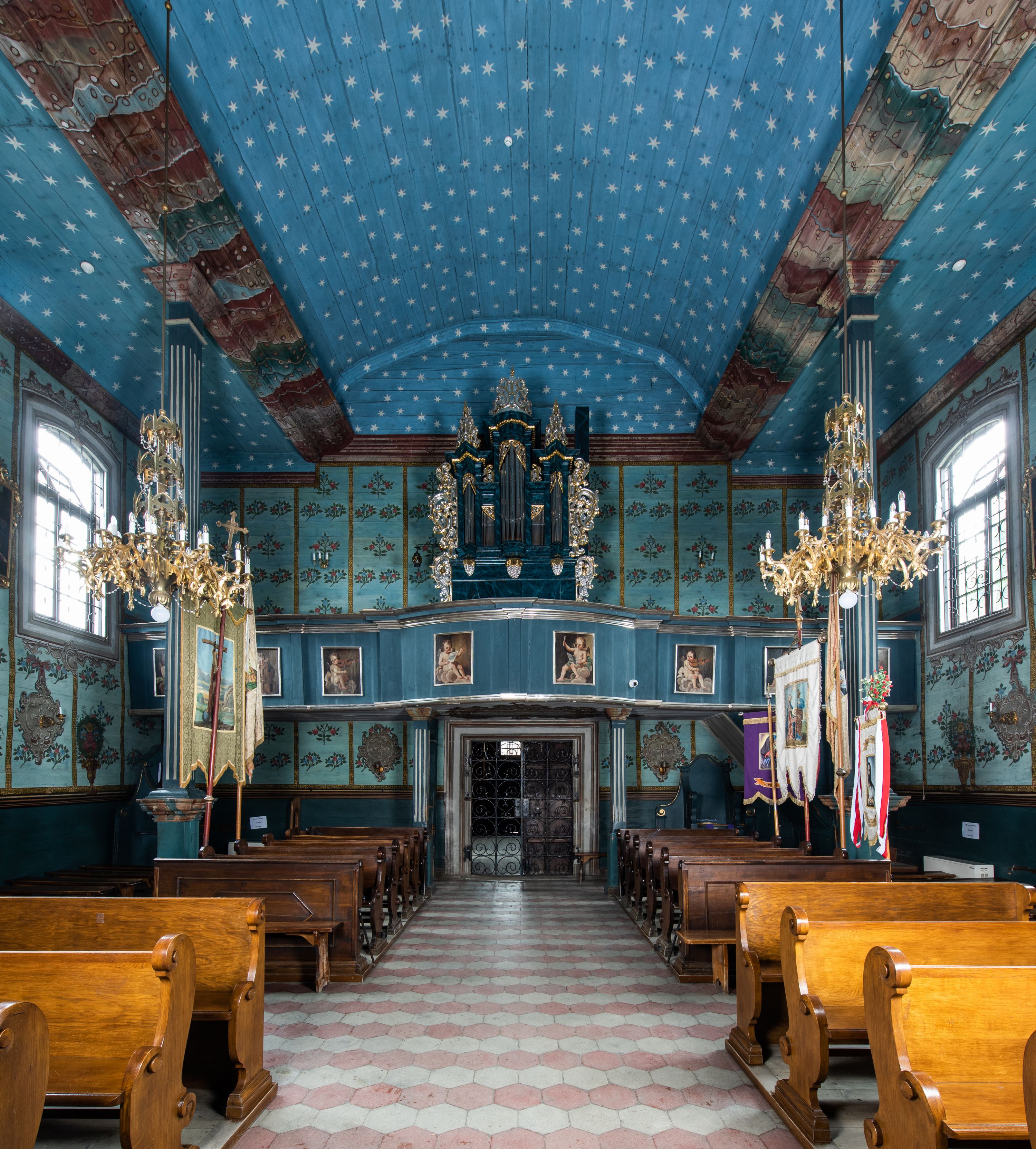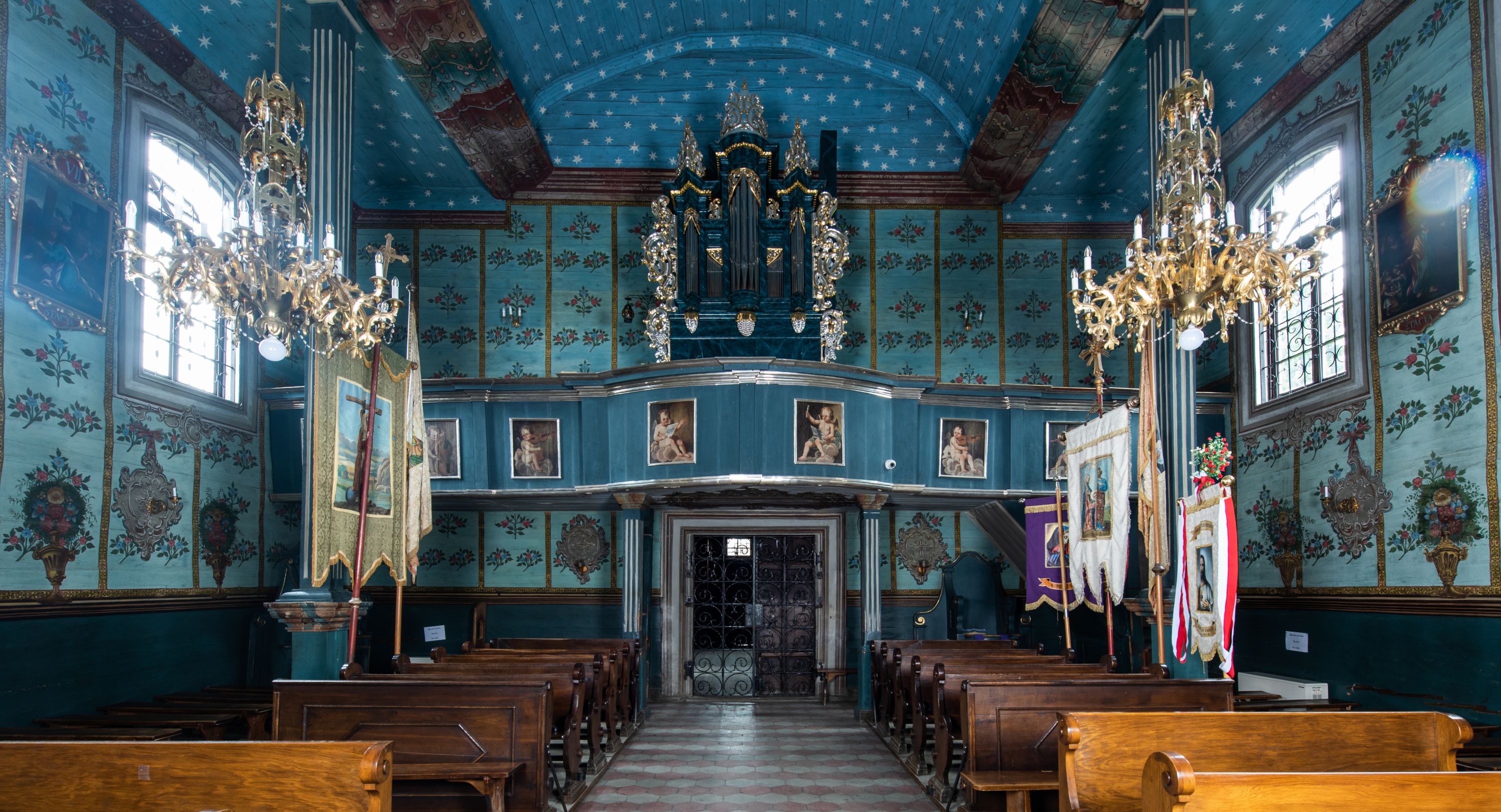 Dekoracja malarska balustrady chóru muzycznego odnosi się do funkcji tej części kościoła, gdzie powstaje oprawa muzyczna mszy świętej. Dlatego ilustruje putta śpiewające i grające na różnych instrumentach.