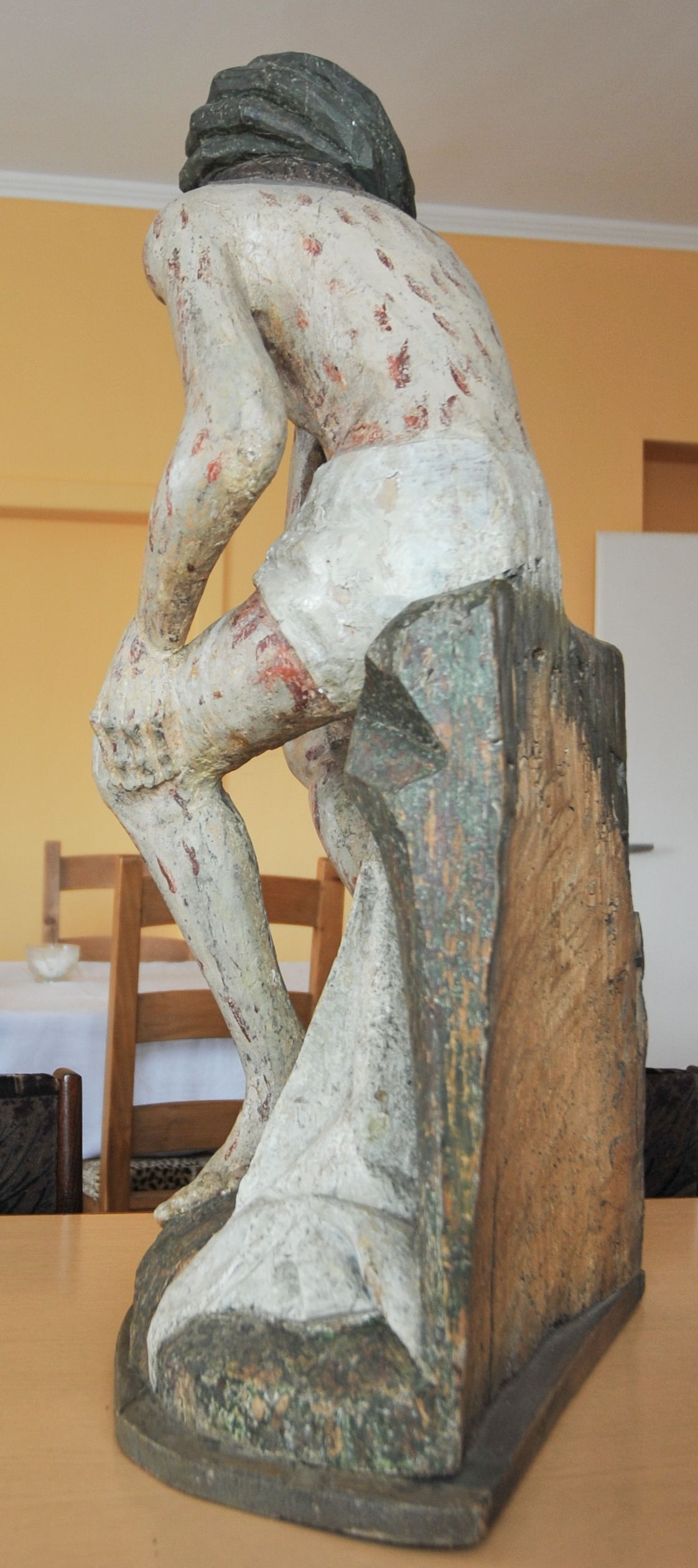 Liczne zabrudzenia i ubytki polichromii, zwłaszcza w partii twarzy.