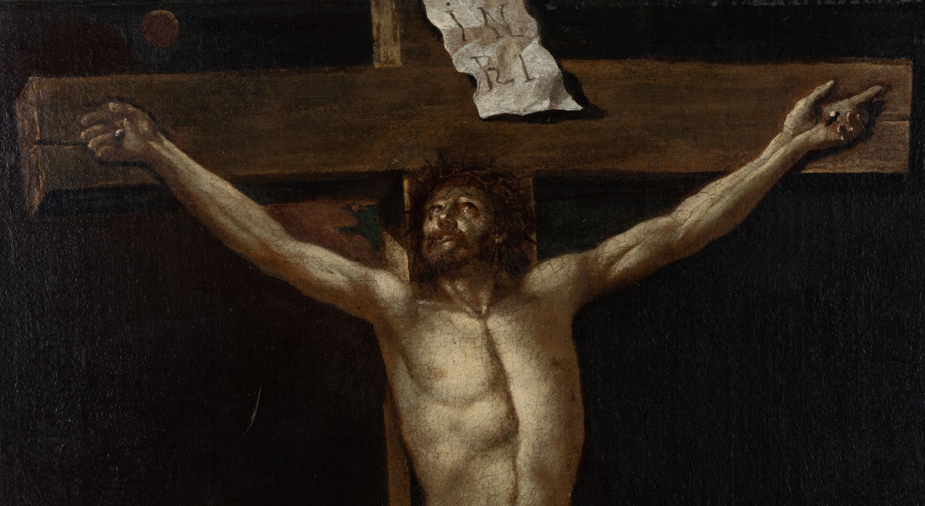 Obraz z przedstawieniem Ukrzyżowanego Chrystusa powstał prawdopodobnie w drugiej połowie XVIII wieku. Należał do kolekcji kardynała Jana Puzyny.