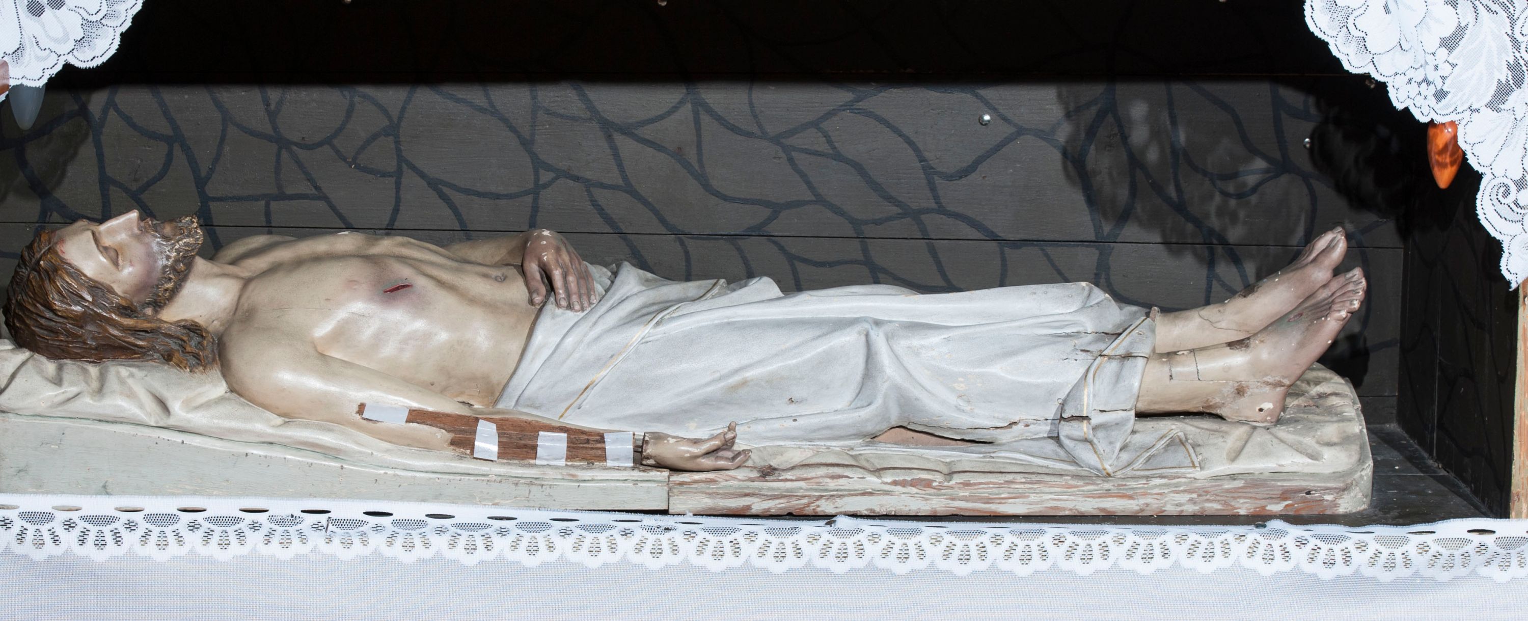 Rzeźba powstała w XX wieku. Przedstawia martwego Chrystusa w grobie, którego ciało do połowy owinięte jest całunem. Figura umieszczana jest w grobie wielkopiątkowym.