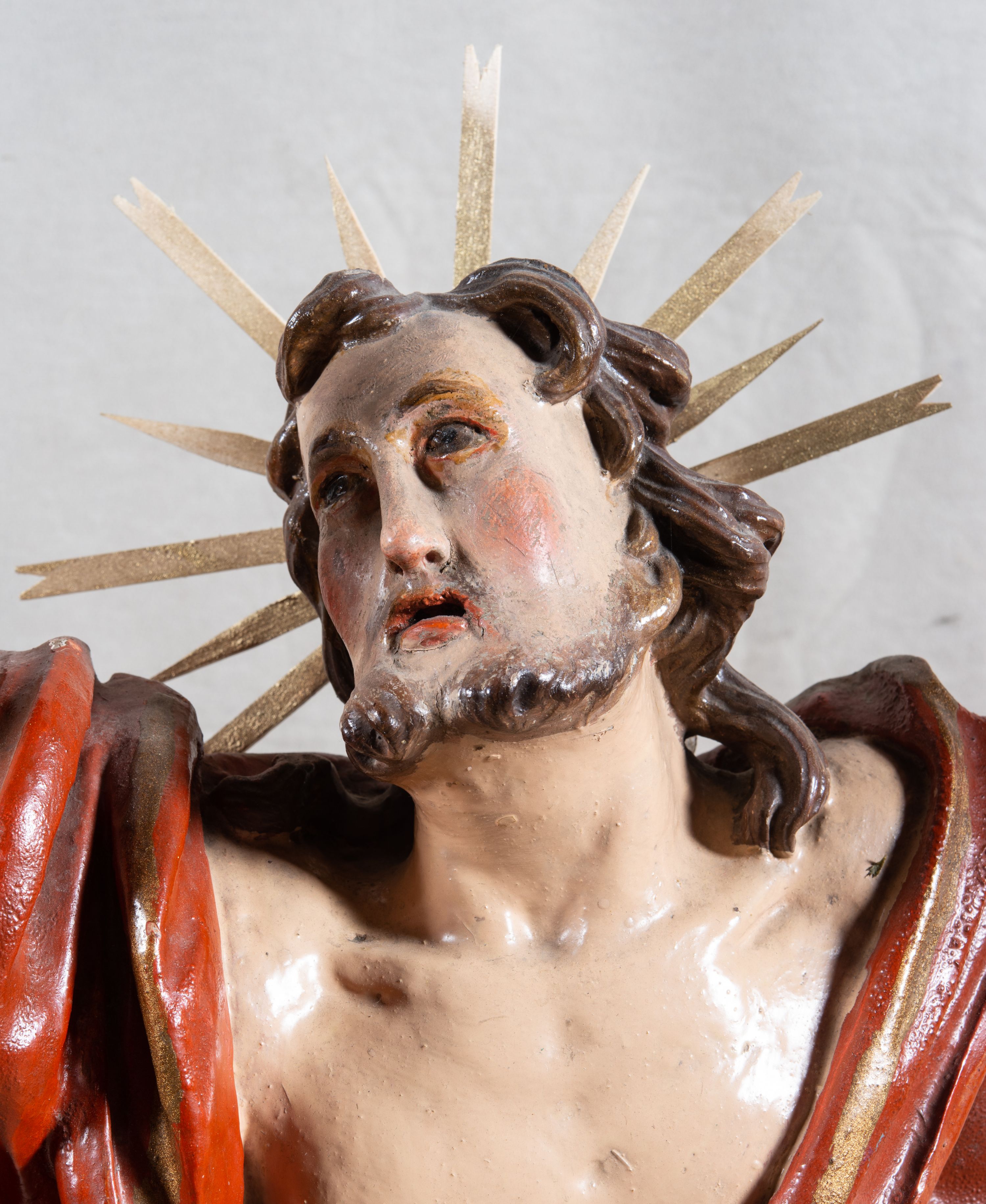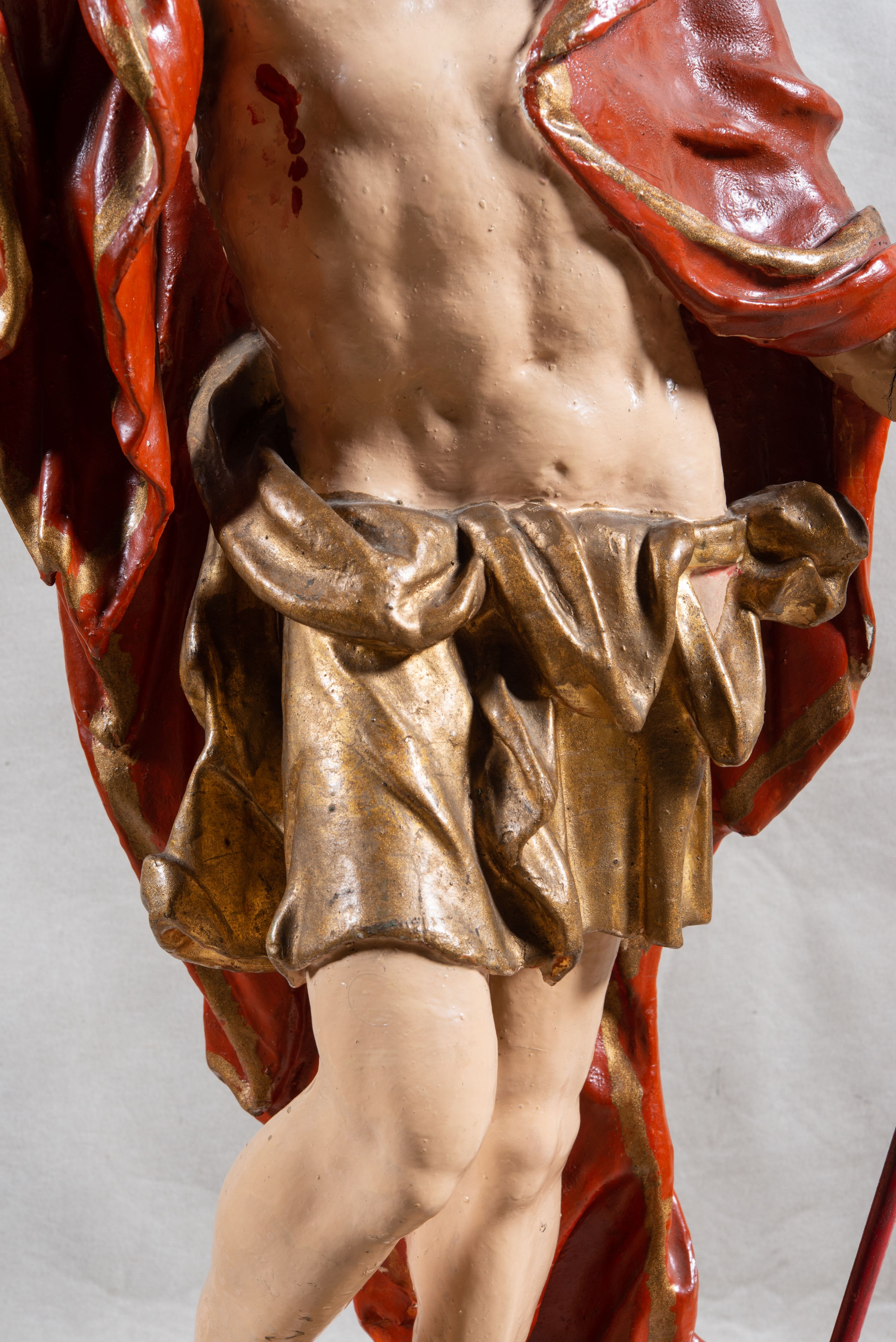 Figura Zmartwychwstałego przedstawia powstałego z grobu, triumfującego Chrystusa. Tradycyjnie przesłonięty jest czerwonym płaszczem, który wskazuje na jego męczeństwo, chorągiew zaś jest symbolem zwycięstwa nad śmiercią. Figura używana jest w procesji rezurekcyjnej, a następnie stawia się ją na ołtarzu po lewej stronie, gdzie znajduje się do czasu obchodów święta Wniebowstąpienia Pańskiego. Prezentowaną rzeźbę charakteryzuje dynamizm formy, typowy dla osiemnastowiecznej plastyki barokowej, wyrażony zarówno w pełnym ruchu układzie sylwetki, niezwykle plastycznym modelunku poszczególnych partii ciała – zwłaszcza muskulatura, pukle włosów, aż po intensywnie drapowaną powierzchnię perizonium i płaszcza.