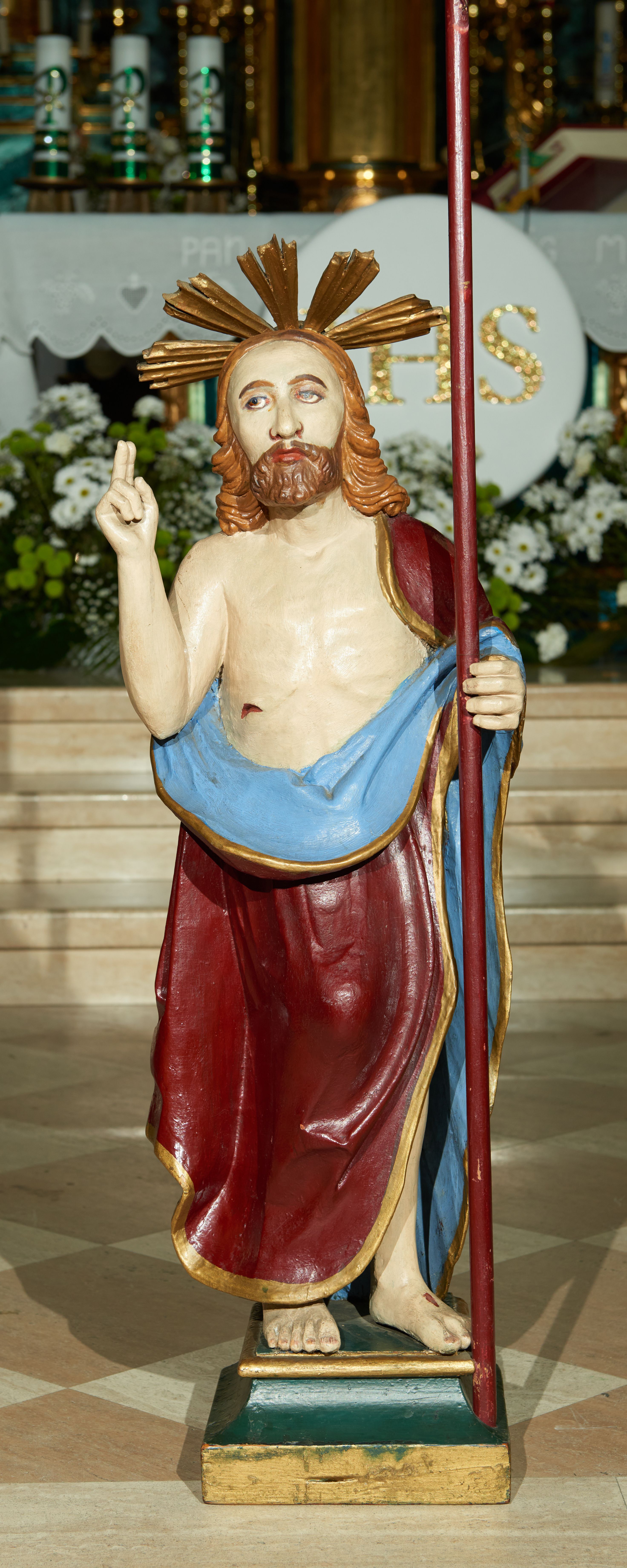 Figura Chrystusa Zmartwychwstałego powstała w XVII wieku. Przedstawia Jezusa jako triumfującego, po tym jak powstał z grobu. Czerwona szata wskazuje na jego męczeństwo, a chorągiew jest symbolem zwycięstwa nad śmiercią.