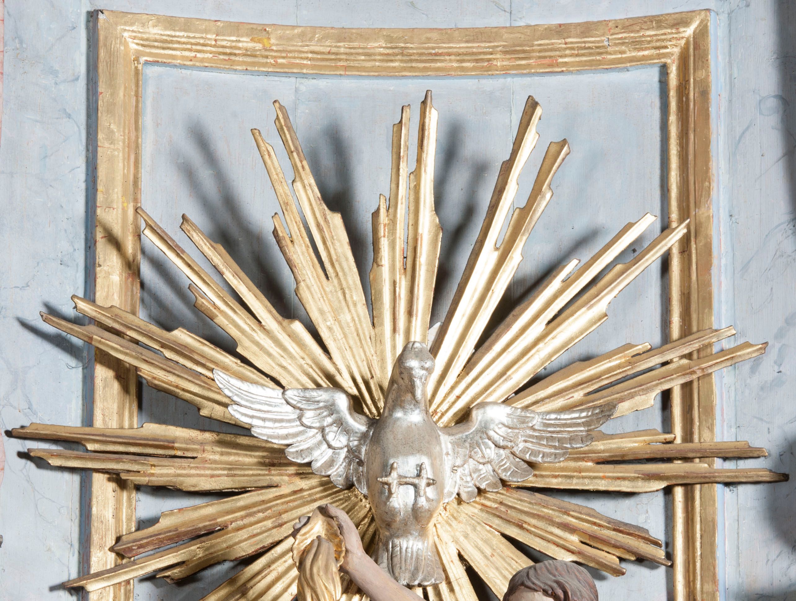 Do dekoracji nadbudowy antyambony o funkcji chrzcielnicy tradycyjnie wybierano jeden z dwóch wiodących tematów – Adama i Ewę lub widoczny w Mucharzu Chrzest Chrystusa.