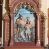 Płaskorzeźbę ujmuje rzeźbiona na wzór retabulum ołtarzowego architektoniczna struktura. Podstawę tworzy wysoki cokół, ujęty parą kolumienek, którego pole wypełnia płycina w kształcie stojącego prostokąta o wklęsło ściętych narożach. Na cokole osadzona jest część środkowa struktury, w formie prostokątnej arkady zamkniętej łukiem półkolistym, ujętej parą kolumienek oraz parą uszaków w postaci zamkniętych trójkątnie przypór. Struktura powyżej arkady przybiera formę frontonu budowli ze szczytem, jaki tworzy gzyms wieńczący w kształcie trójkątnego przyczółka, flankowany parą niewielkich pilastrów. Powyżej widoczna konstrukcja przypominająca pokryty dachówką dach pulpitowy. Zwieńczenie ma formę aediculi z arkadą z łukiem trójlistnym, ujętą parą kolumienek wspierających belkowanie z gzymsem w kształcie półkolistego łuku nadwieszonego. Dodatkowo po bokach aediculi znajduje się para przypór. Powyżej arkady w części środkowej przedstawiono płaskorzeźbione popiersie Boga Ojca. W arkadzie zwieńczenia jest figura anioła. Utrzymaną w odcieniach brązu strukturę zdobi złocona dekoracja ornamentalna w formie stylizowanych wici roślinnych i rozet.