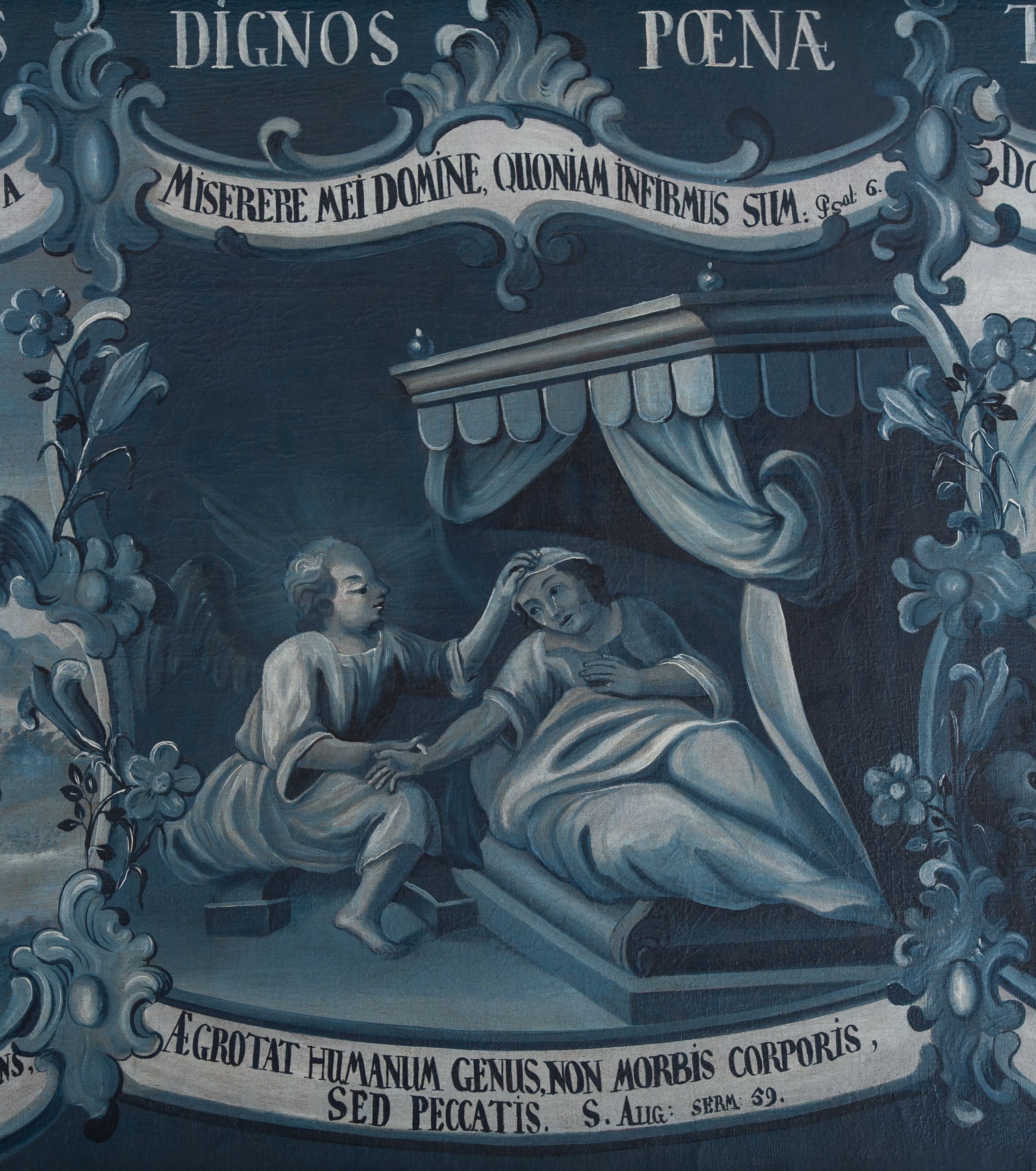 Druga scena opatrzona jest cytatem z psalmu „Zmiłuj się nade mną Panie, albowiem chory jestem” (Ps 6, 3) i jego komentarzem autorstwa św. Augustyna „Ludzkość choruje nie na choroby ciała, ale na grzechy” (Augustyn, De verbis Domini, Sermon 59). Grzech rozumiany jest zatem jako choroba, dlatego personifikacja Duszy leży w łóżku, a pomóc jej może Boże miłosierdzie, ukazane jako opiekujący się chorą Amor Boży.