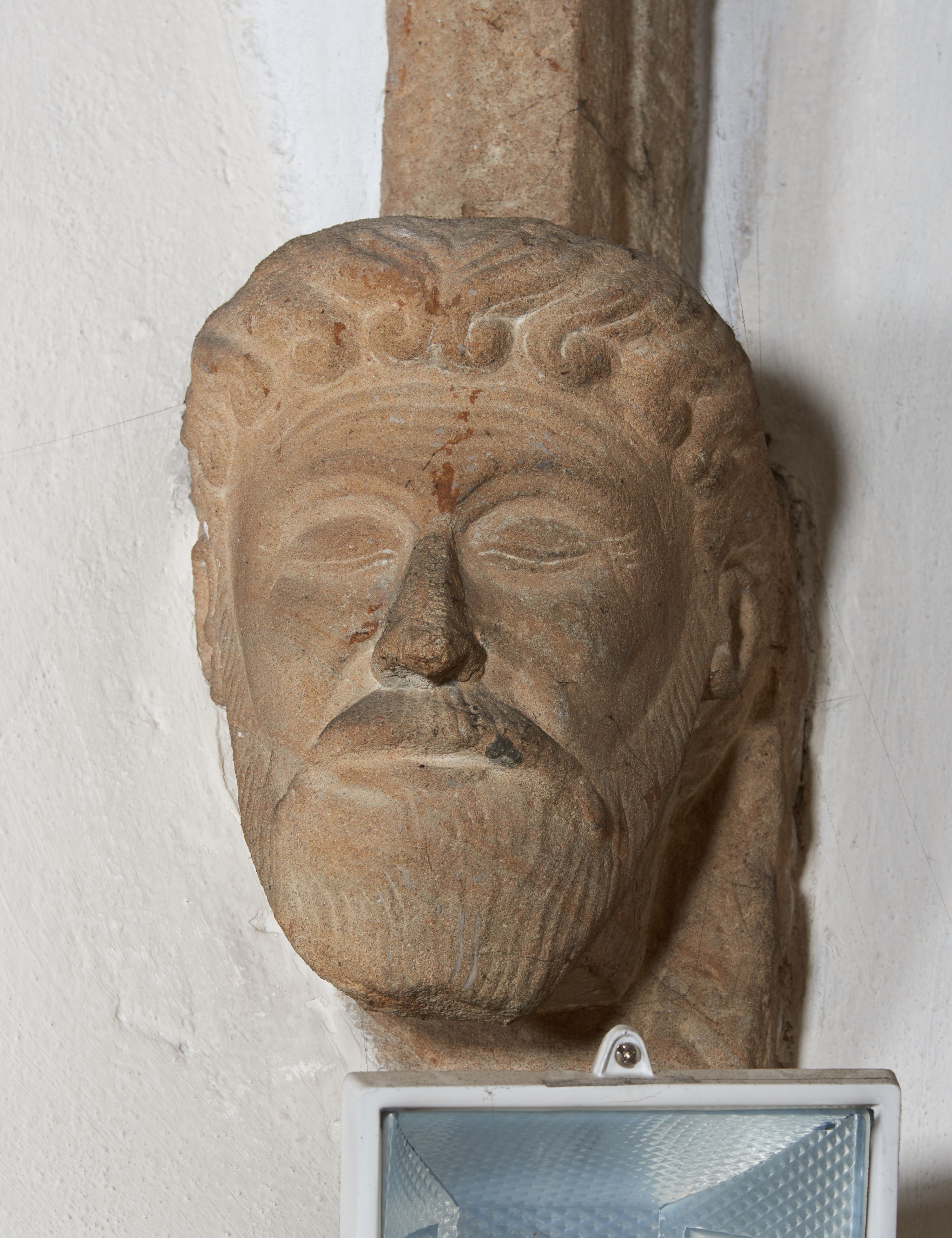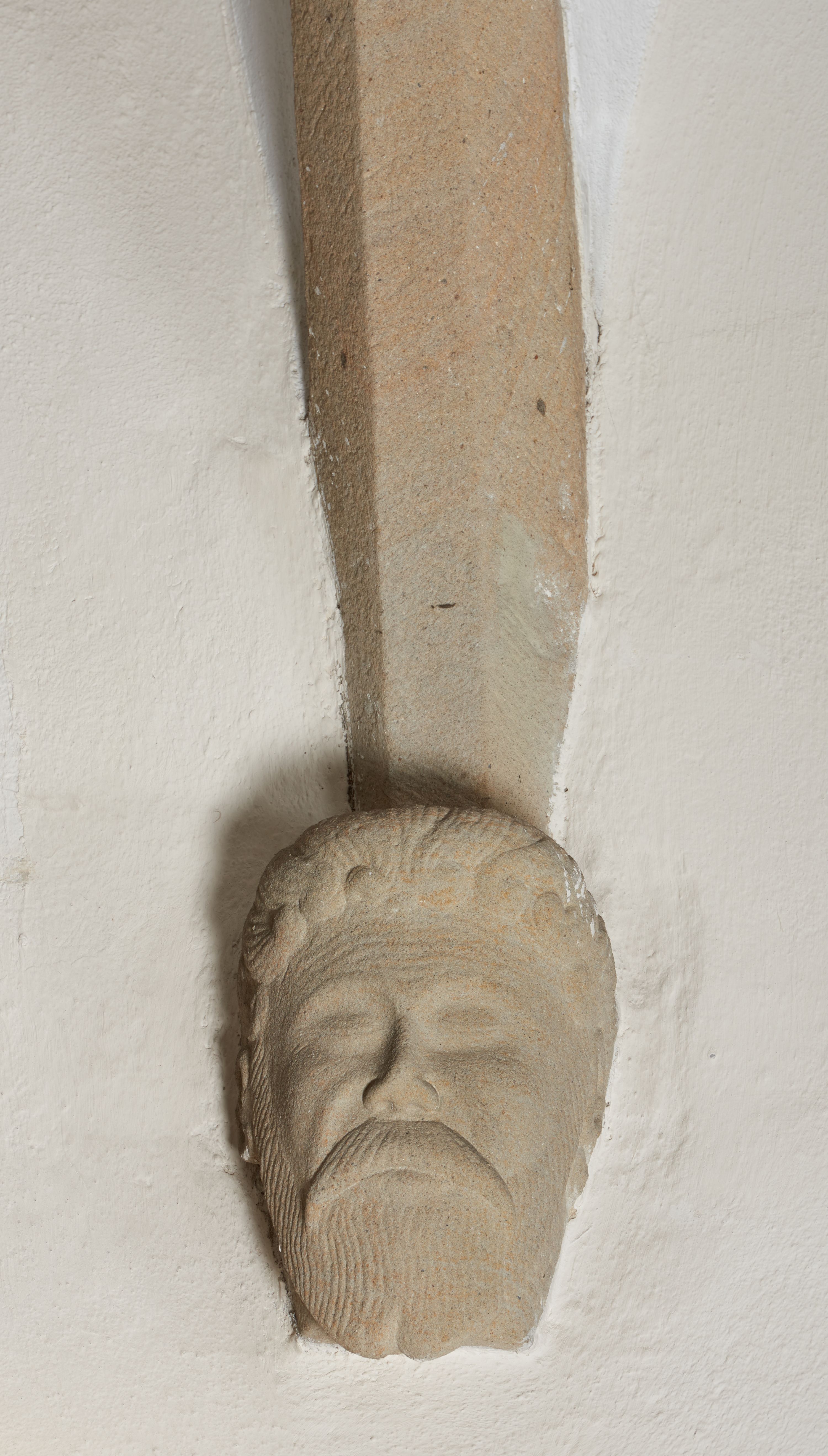 Komplet sześciu kamiennych konsol w formie męskich, brodatych głów, na które spływają żebra krzyżowego sklepienia w nawie głównej. Postać pierwsza o twarzy szerokiej, okolonej długim zarostem oraz włosami układającymi się w loki na czole. Oczy zamknięte, wydatny, prosty nos. Widoczne rurkowate bruzdy na czole. Postać druga o twarzy pociągłej, okolonej długim zarostem artykułowanym za pomocą rurkowatych fałd. Broda na końcu nieznacznie rozdwojona. Włosy proste ponad czołem tworzą trójkątne zakola. Oczy zamknięte, czoło pokryte bruzdami. Postać trzecia o trójkątnej twarzy z niskim, pokrytym bruzdami czołem i kręconych włosach. Oczy zamknięte. Postać czwarta o owalnej, pełnej twarzy, wystających kościach policzkowych. Zarost artykułowany za pomocą równoległych fałdek. Włosy układające się w loki ponad czołem. Oczy zamknięte. Postać piąta o szerokiej, płaskiej twarzy z gęstym zarostem. Długie, falowane wąsy, zamknięte oczy. Włosy ponad czołem układające się w loki. Postać szósta o pociągłej, podłużnej twarzy z zarostem. Długi, prosty nos, zamknięte oczy, niskie czoło ponad, którym bujne, proste włosy. Na przecięciach żeber dwa polichromowane zworniki z godłem herbu Drużyna oraz syglami „S(ebastian) L(ubomirski)" umieszczonymi na czerwonym tle, pierwszy ośmioboczny, drugi w kształcie wieloliścia. W podniebiu arkady tęczowej wolutowa konsola ustawiona na kapitelu pilastra w podniebiu łuku tęczowego. U podstawy konsoli, na osi umieszczony rollwerkowy kartusz mieszczący godło herbu Drużyna oraz sygle „S(ebastian) L(ubomirski)”.