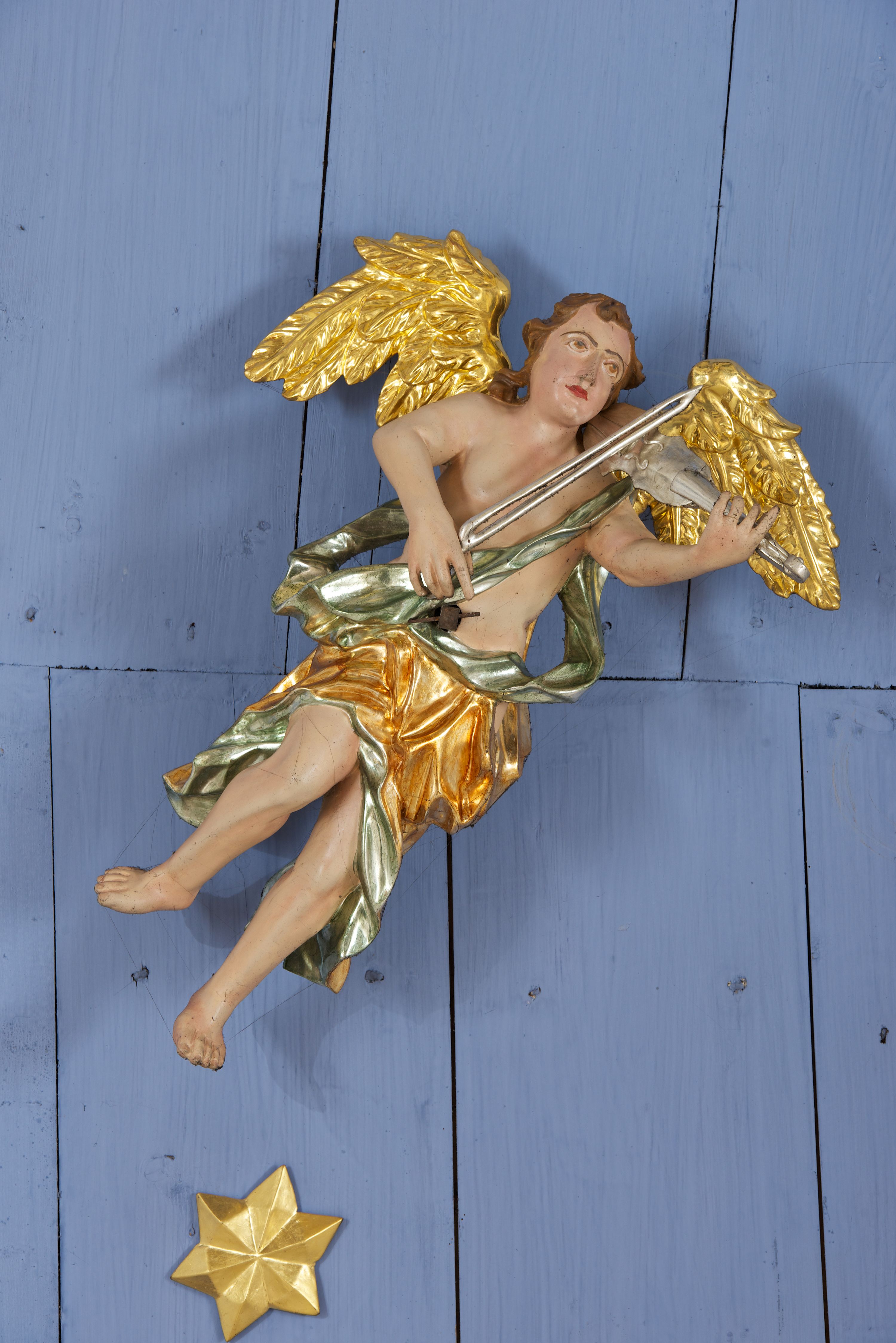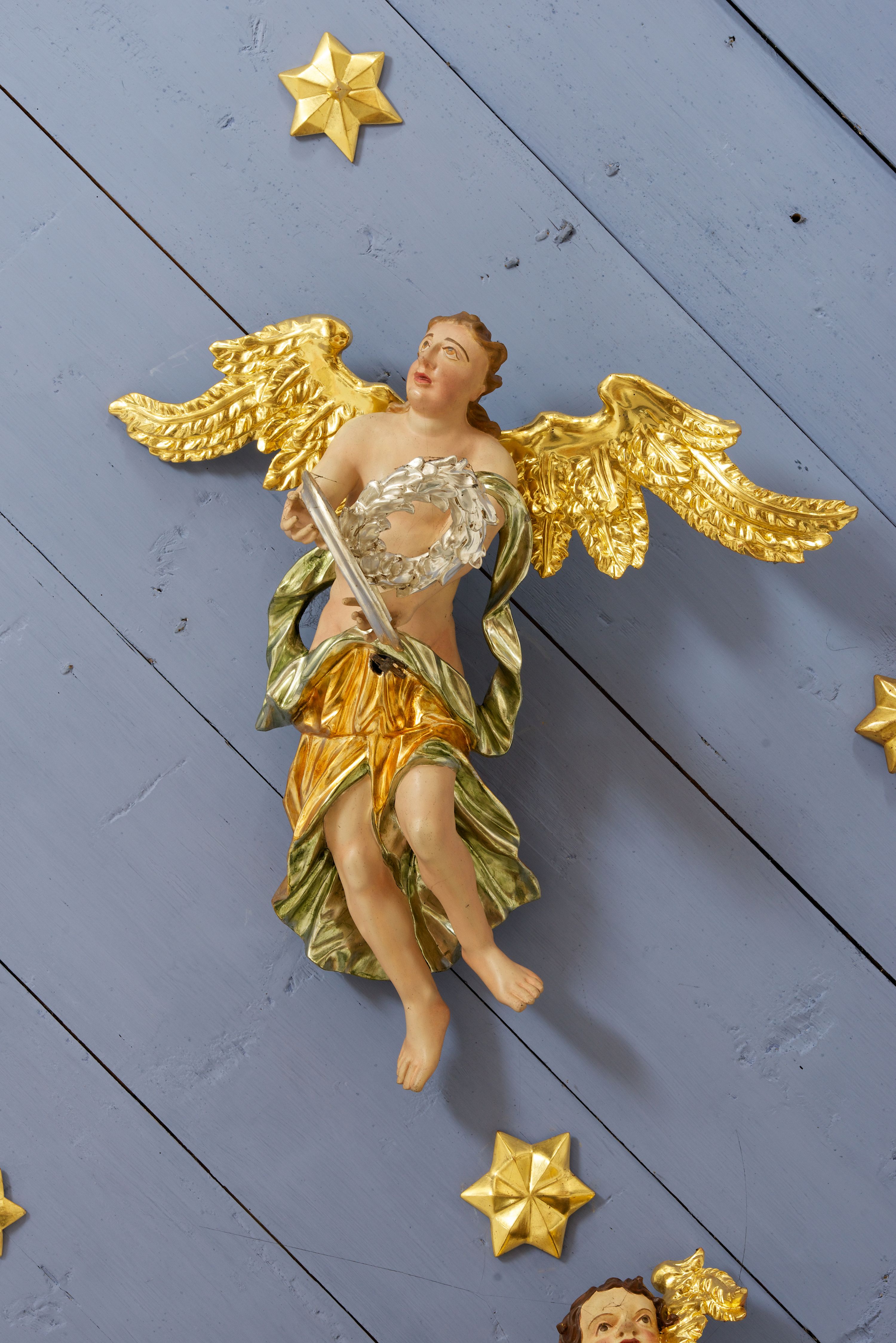 Paulina Kluz, "Drewniany strop z dekoracja rzeźbiarską grupy Koronacja Marii i muzykujących aniołów", [w:] "Sakralne Dziedzictwo Małopolski", 2026, źródło: https://sdm.upjp2.edu.pl/dziela/drewniany-strop-z-dekoracja-rzezbiarska-grupy-koronacja-marii-i-muzykujacych-aniolow