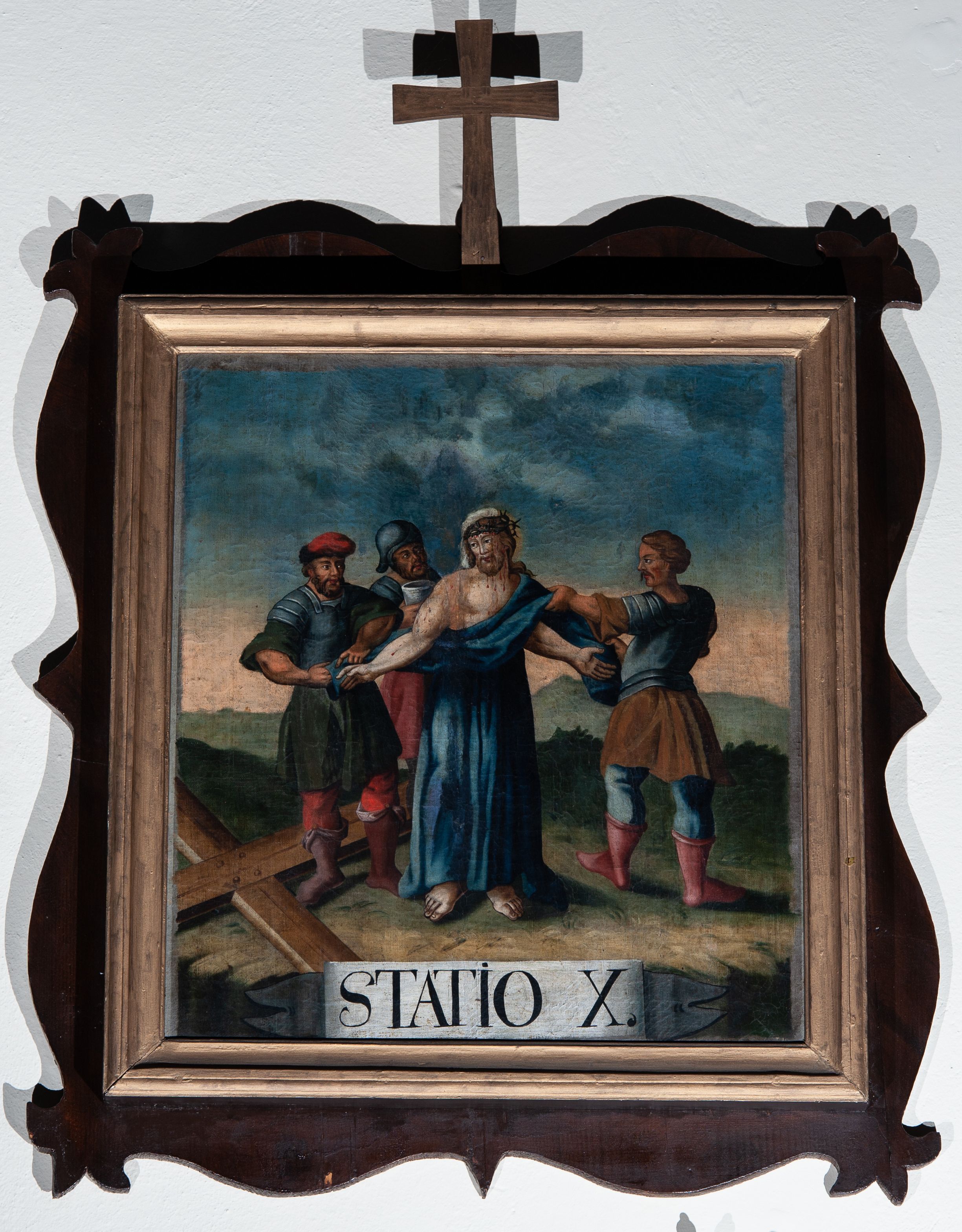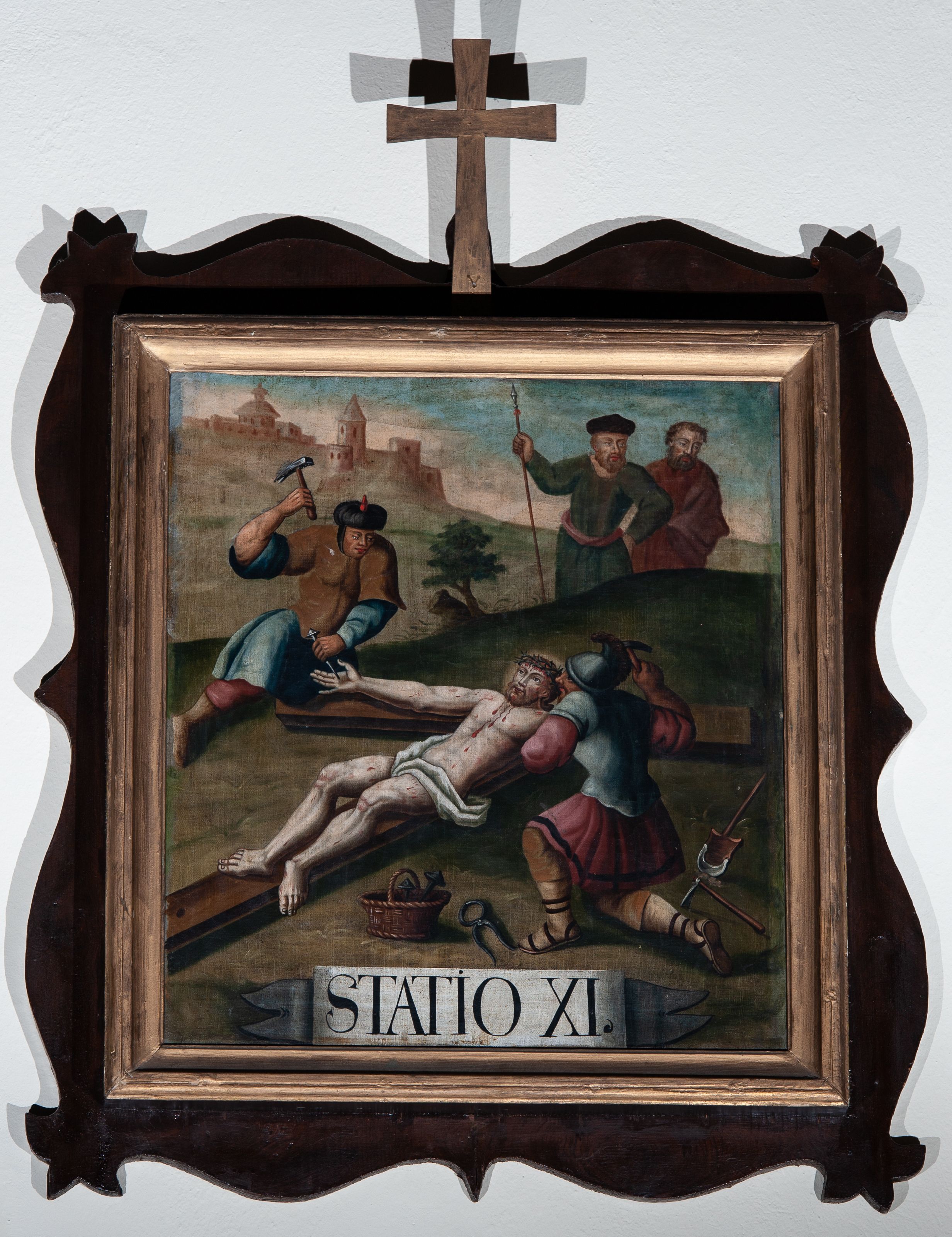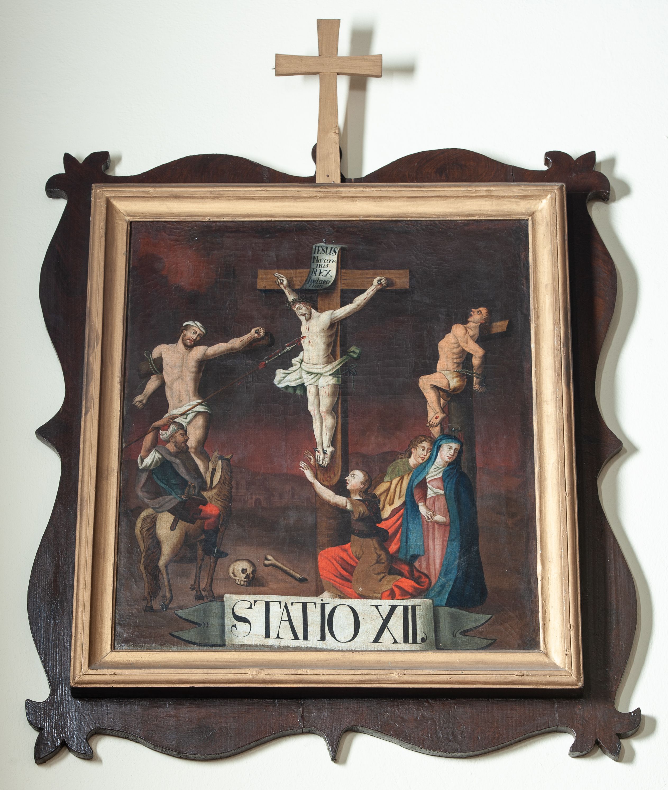 Czternaście stacji Drogi Krzyżowej malowanych olejno na płótnie, w profilowanych ramkach z krzyżykiem, zawieszonych na ścianach nawy i prezbiterium. Wykonane w wieku XIX zapewne przez malarza małopolskiego.