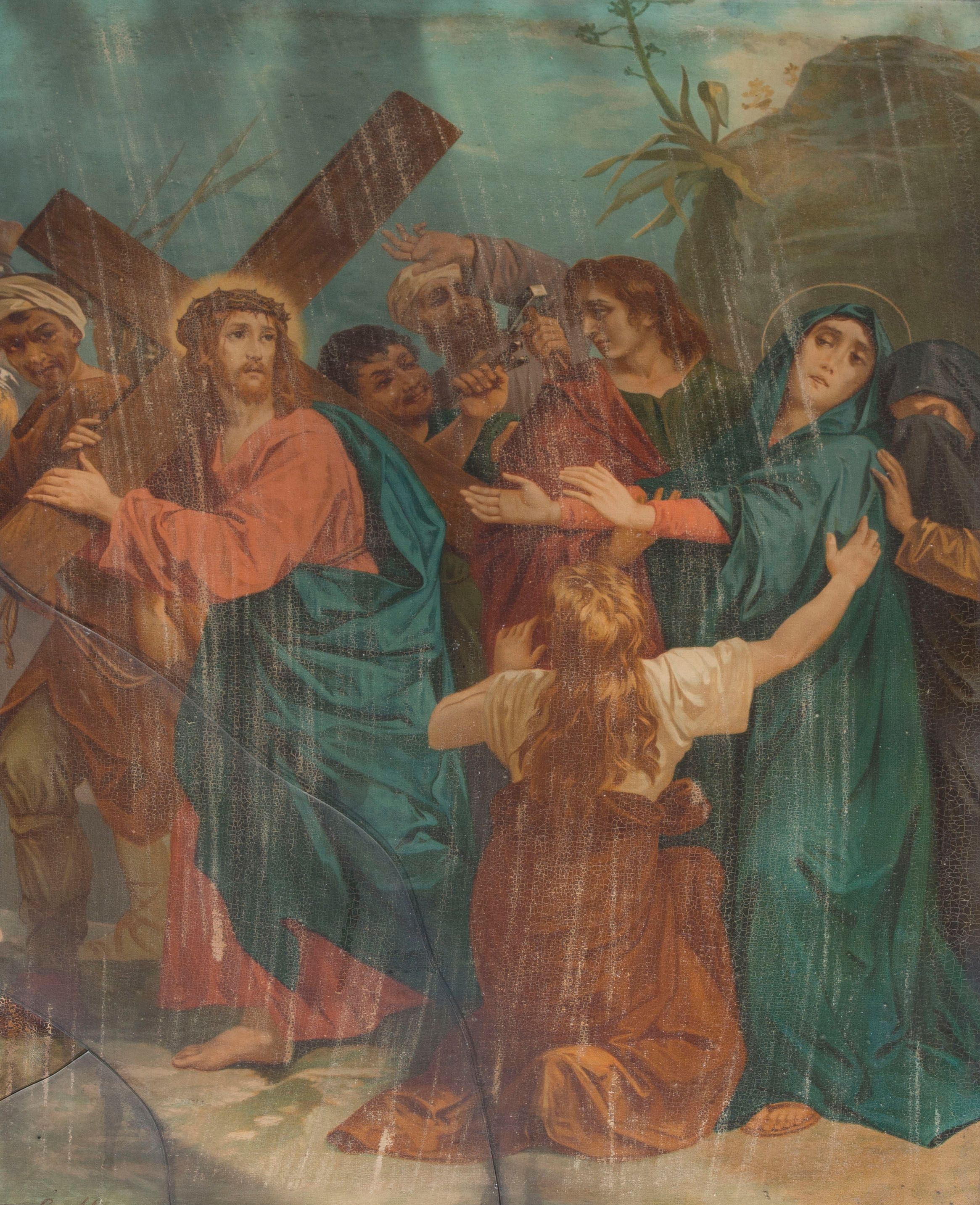 Nabożeństwo drogi krzyżowej stanowi zespół rozważań nad ostatnimi chwilami życia Jezusa od momentu skazania na śmierć, poprzez przejście z krzyżem ulicami Jerozolimy na miejsce stracenia, po złożenie jego ciała do grobu. Wraz ze wzmożonym w średniowieczu ruchem pielgrzymkowym kult, jakimi na terenie Jerozolimy otaczano miejsca ostatniej ziemskiej wędrówki Jezusa, stopniowo przenosił się na tereny zachodniej Europy. Tam kształtował się pod wpływem przybierającej różne formy pobożności pasyjnej i wiążącym się z nią pragnieniem współczucia umęczonemu Chrystusowi oraz uczestnictwa w jego cierpieniach. Wraz z potrzebą stworzenia odpowiedniego nabożeństwa pojawiała się konieczność wydzielenia służących dewocji miejsc w obrębie kościołów lub w ich najbliższym otoczeniu (np. korytarze klasztorne, dziedzińce przykościelne), a także powstawania tzw. kalwarii (najstarsza w Polsce Kalwaria Zebrzydowska, 1609-1617). Początkowo liczba stacji drogi krzyżowej wahała się od kilku do kilkunastu. Ostateczny układ 14 stacji ukształtował się z końcem XVIII wieku. Nabożeństwo to, początkowo praktykowane głównie w zgromadzeniach zakonnych, stopniowo wprowadzano w parafiach, gdzie szerzyło się od lat siedemdziesiątych XIX wieku. Cykle plastyczne w układzie 14 scen upowszechniły się w XVIII wieku, m.in. dzięki twórczości Giovanniego Battisty Tiepola (kościół Frari w Wenecji, 1745) a na terenie Polski Szymona Czechowicza (kaplica zamkowa w Podhorcach, 1763). Na przestrzeni XIX wieku stacje drogi krzyżowej wykonywane na potrzeby kościołów parafialnych w różnorodnych technikach (od malarstwa olejnego, przez litografie, odlewy gipsowe, płaskorzeźby po oleodruki) cechowały przede wszystkim wielopostaciowe sceny o charakterze narracyjnym.