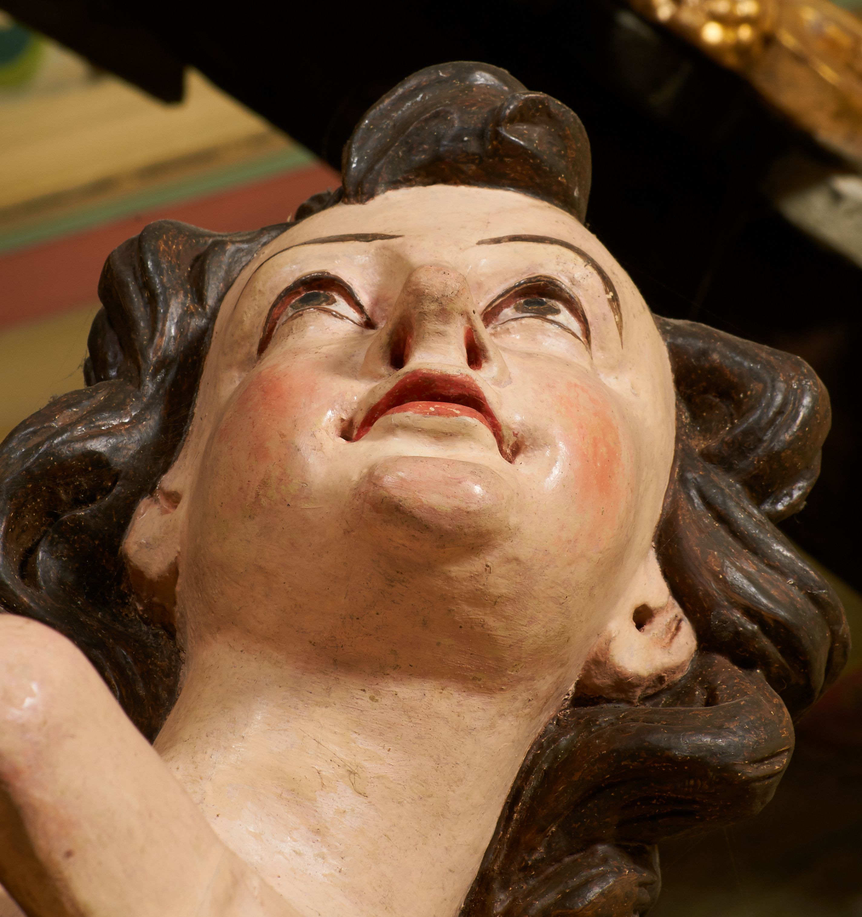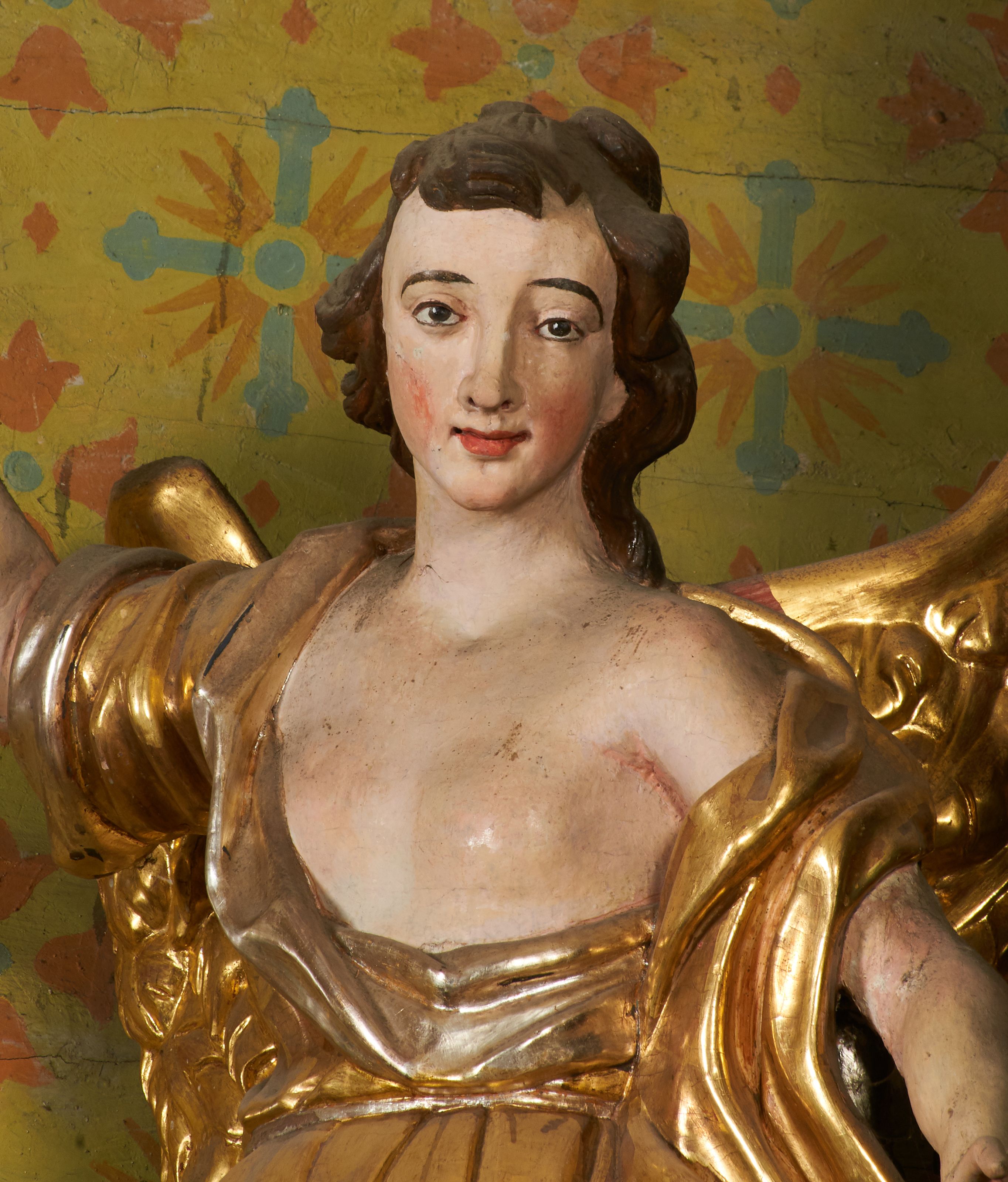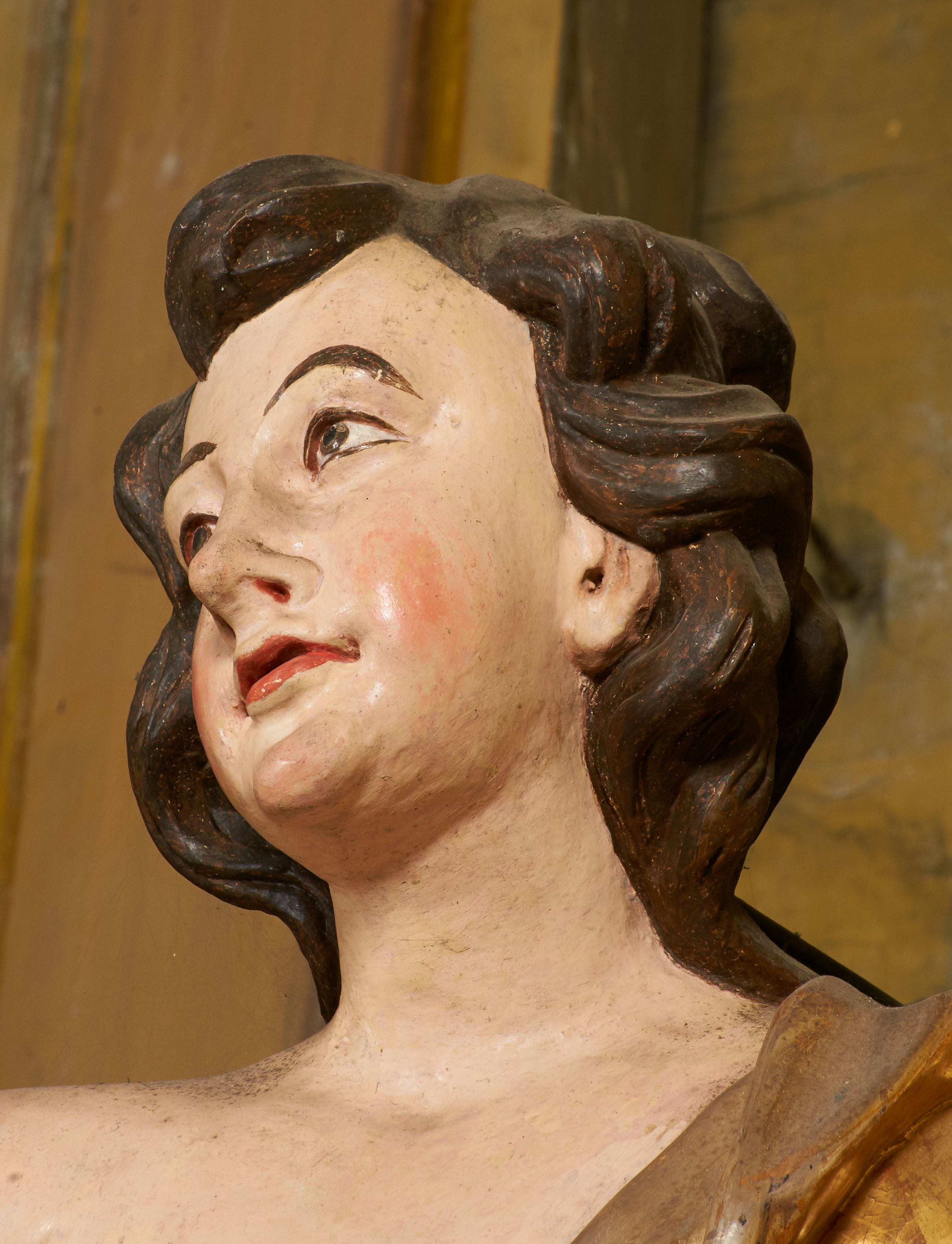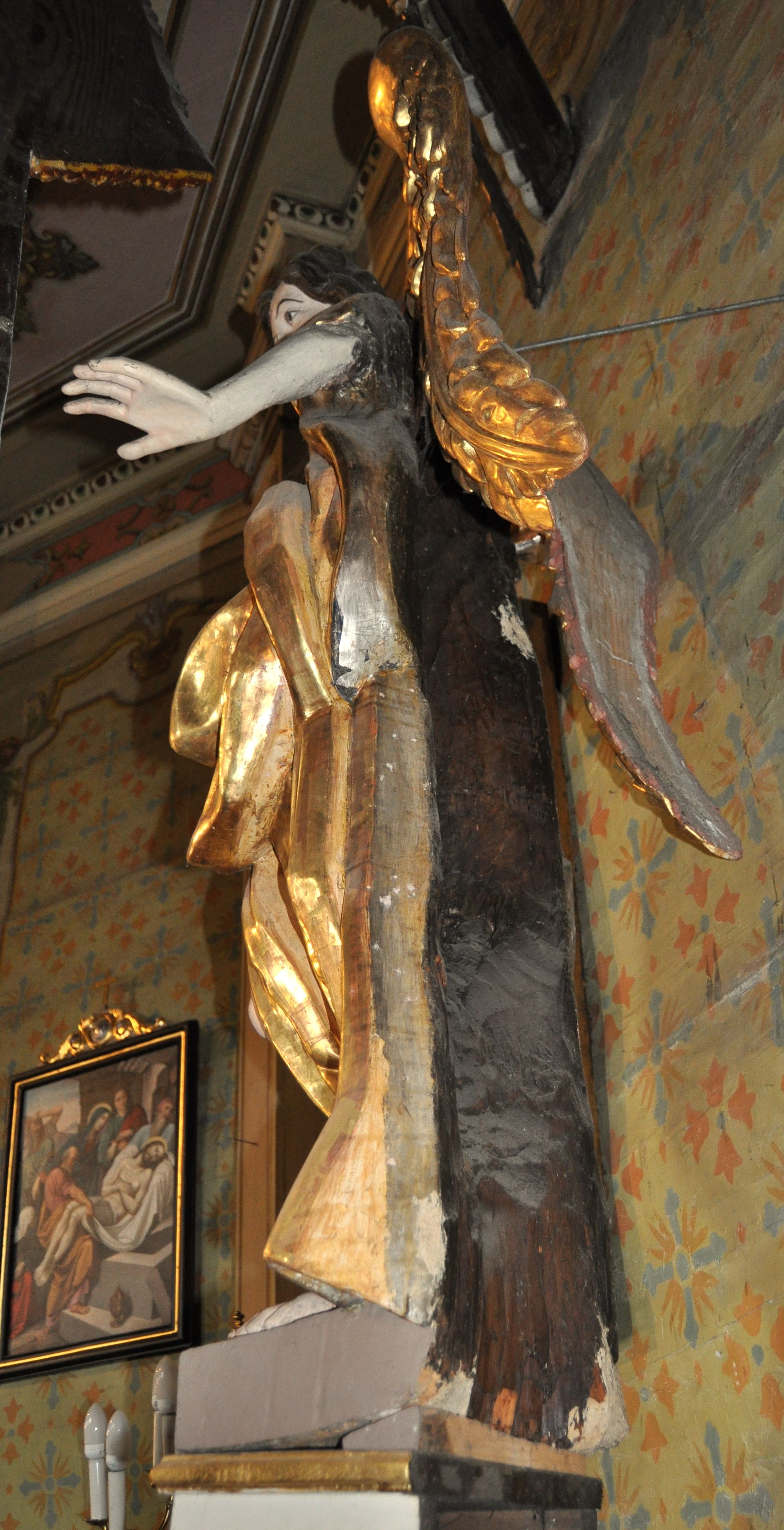 Figury zabrudzone, z lekkimi przetarciami w partii polichromii i złoceń. Odmalowywane i pozłacane w latach 1833, 1844, 1883, 1907, 1957 i 1987.