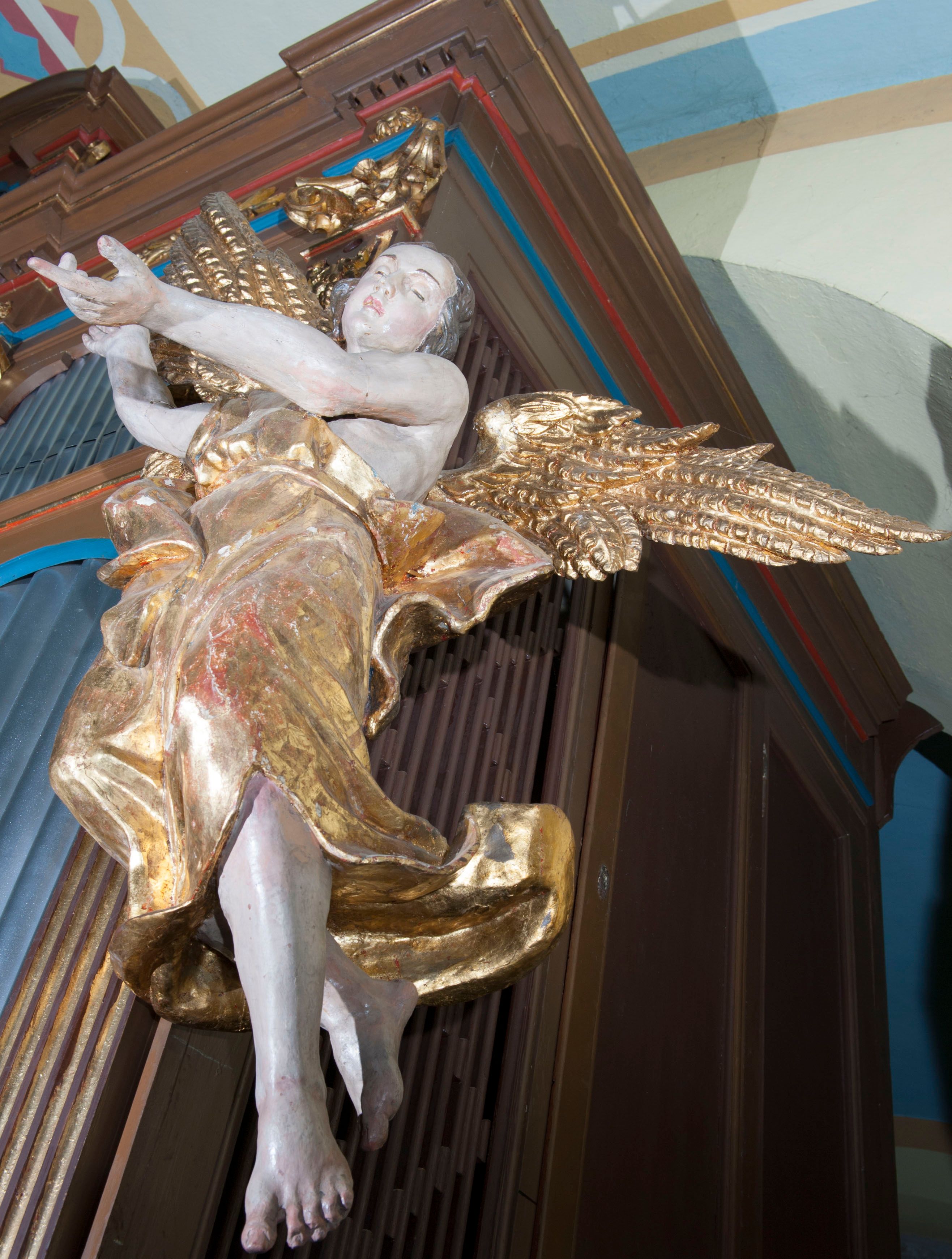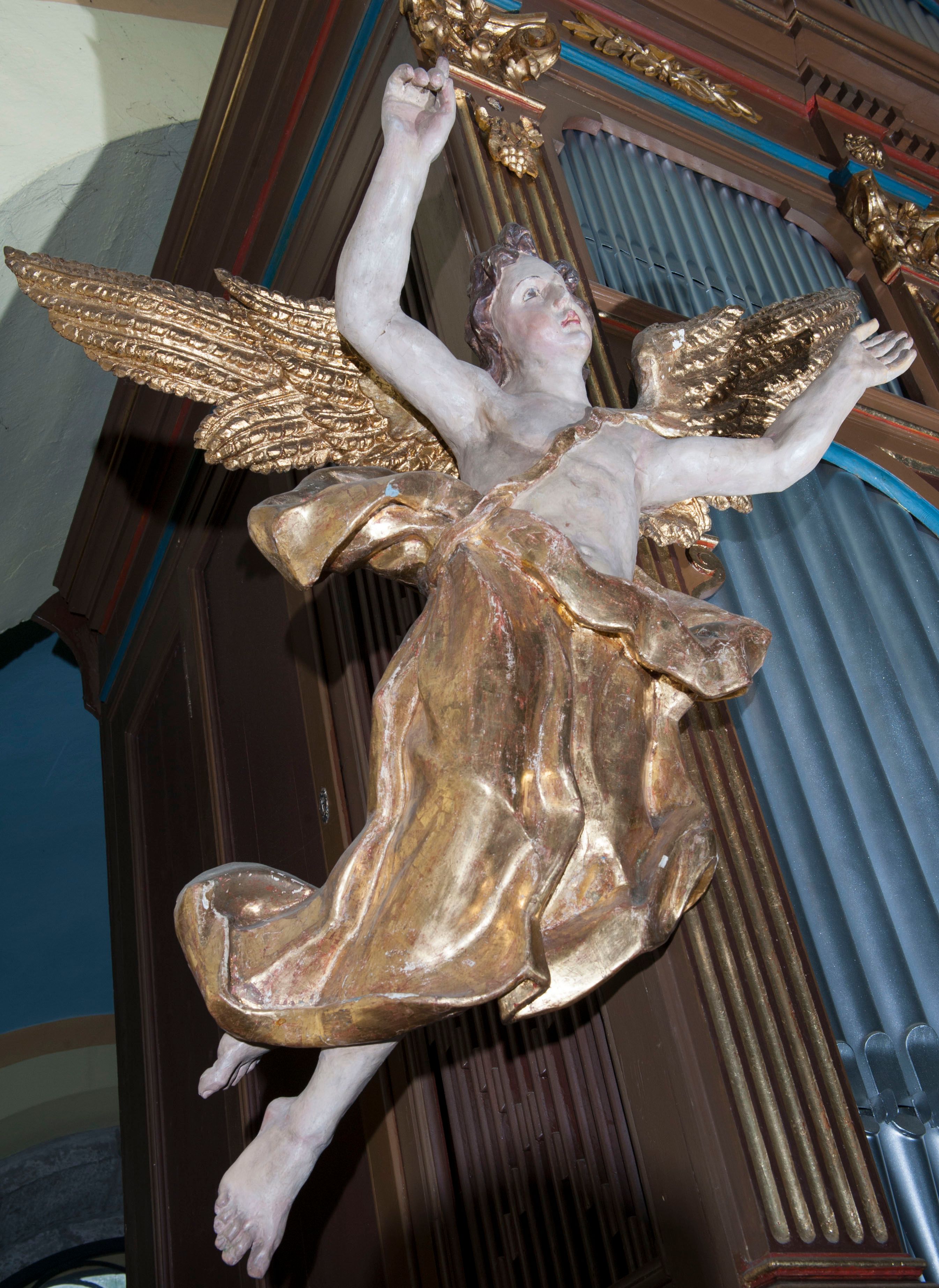 Osiemnastowieczne anioły zostały wtórnie użyte do ozdoby organów wykonanych po 1845 roku. Ukazano je w typowej konwencji ikonograficznej jako młodzieńców otulonych częściowo obszernymi płaszczami, ze skrzydłami utworzonymi z ptasich piór.