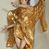 Figura zwrócona frontalnie, w wykroku, z wypchniętym lewym biodrem, obie ręce wyciągnięte w geście w przeciwną stronę, głowa skierowana w prawo, rzeźba w płynnym ruchu. Twarz owalna, o pełnych policzkach i delikatnych rysach. Nos niewielki, lekko zadarty, oczy małe wpatrzone na wprost, usta niewielki, pełne, rozchylone. Włosy krótkie, rzeźbione w pojedyncze, silnie skręcone pukle, ekspresyjnie rozwiane. Anioł jest ubrany w szatę sięgającą kolan, przewiązaną diagonalnie przez prawe ramię i oplatającą postać wokół z silnie drapowanym fragmentem zawijającym się na ramieniu oraz w partii nóg i marszczonym w obrębie torsu. Skrzydła duże, delikatnie rozchylone. Polichromia naturalistyczna w odsłoniętych partiach ciała, szaty złocone.