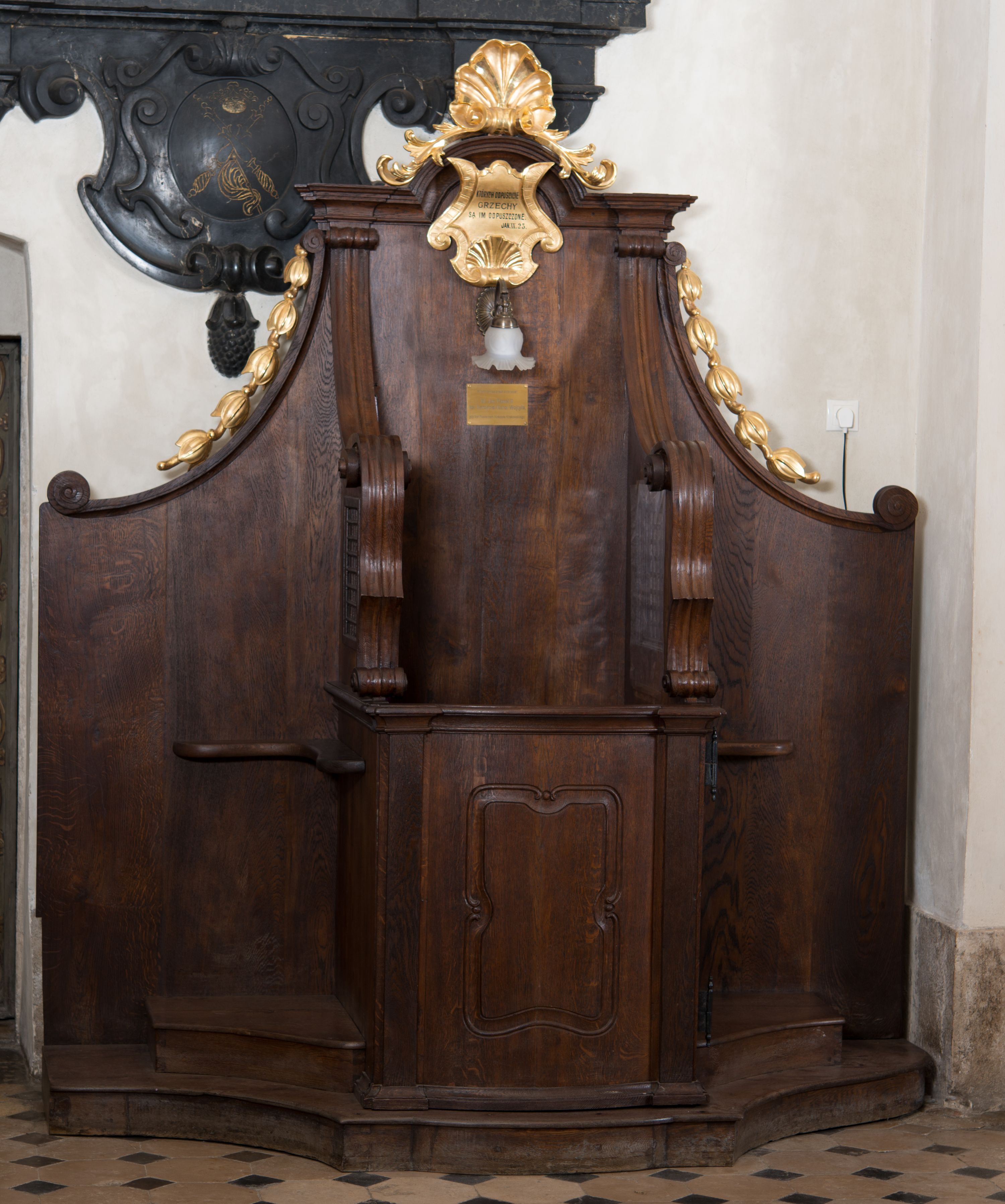 Dwa konfesjonały o formach późnobarokowych sprawione w 1781 roku, wykonane przez stolarza Sebastiana Łagowskiego.