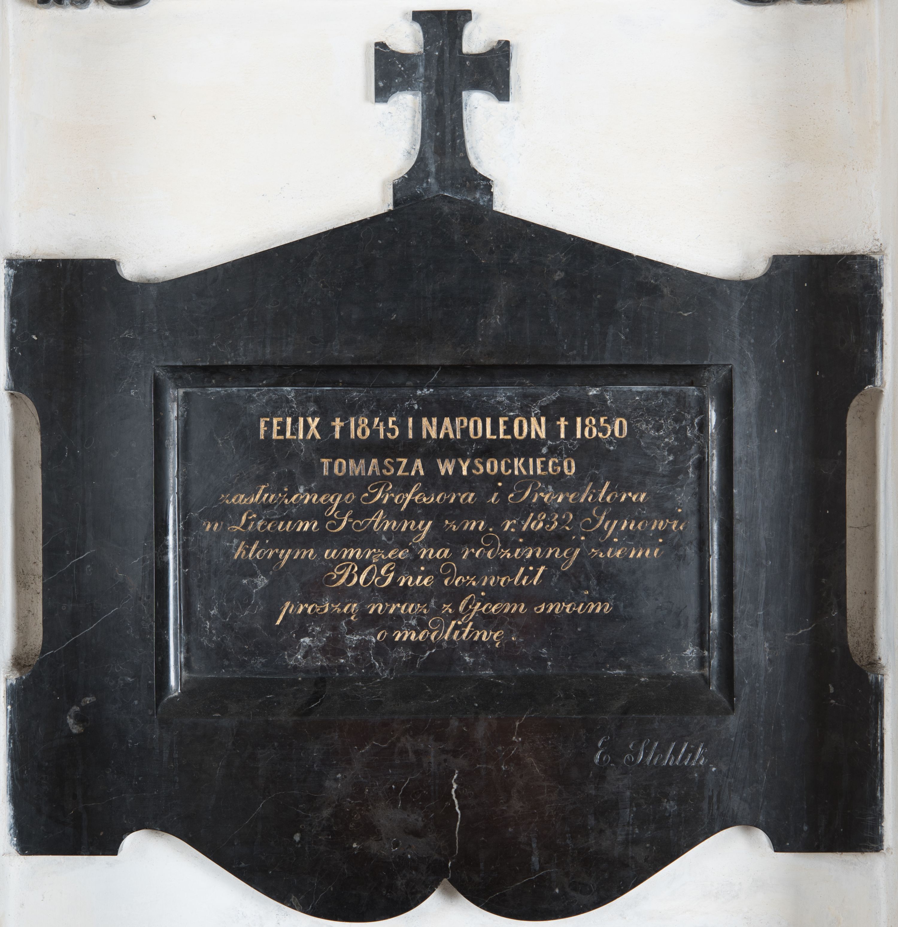 Epitafium Tomasza Wysockiego, zasłużonego profesora w Liceum św. Anny w Krakowie i jego dwóch synów Feliksa i Napoleona, jest dziełem znanego krakowskiego kamieniarza Edwarda Stehlika.