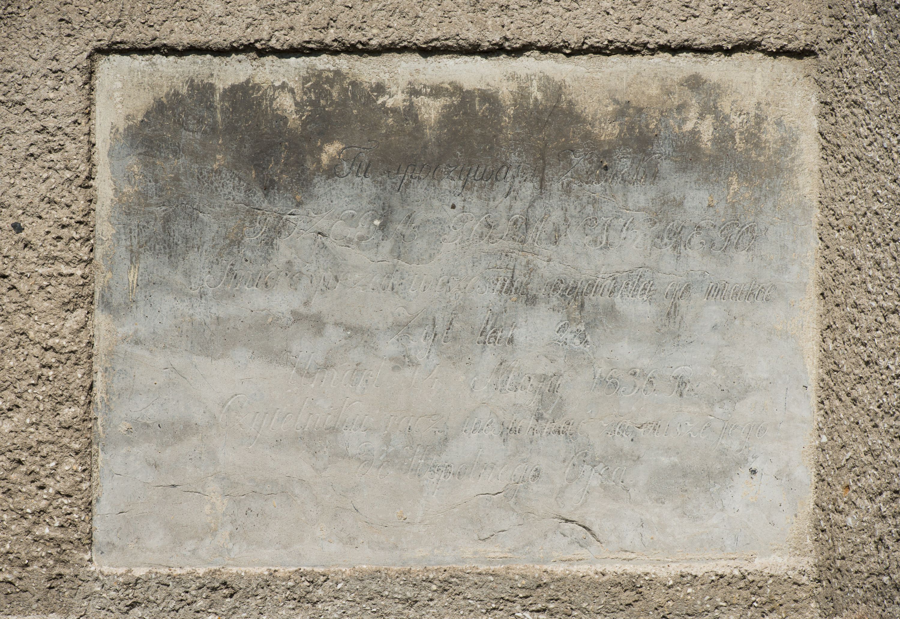 Tablica uzyskała kształt leżącego prostokąta. Jej pole w całości pokrywa inskrypcja: "Tu spoczywają Zwłoki / JÓZEFA GOLAWSKYEGO / Śmierć przed wczesna wydarła go matce / Zył lat 26 / Umarł 14 Maja 1836. R[OKU]. / Czytelniku racz westchnąć za Dusze jego / Do Wspólnego Ojca".
