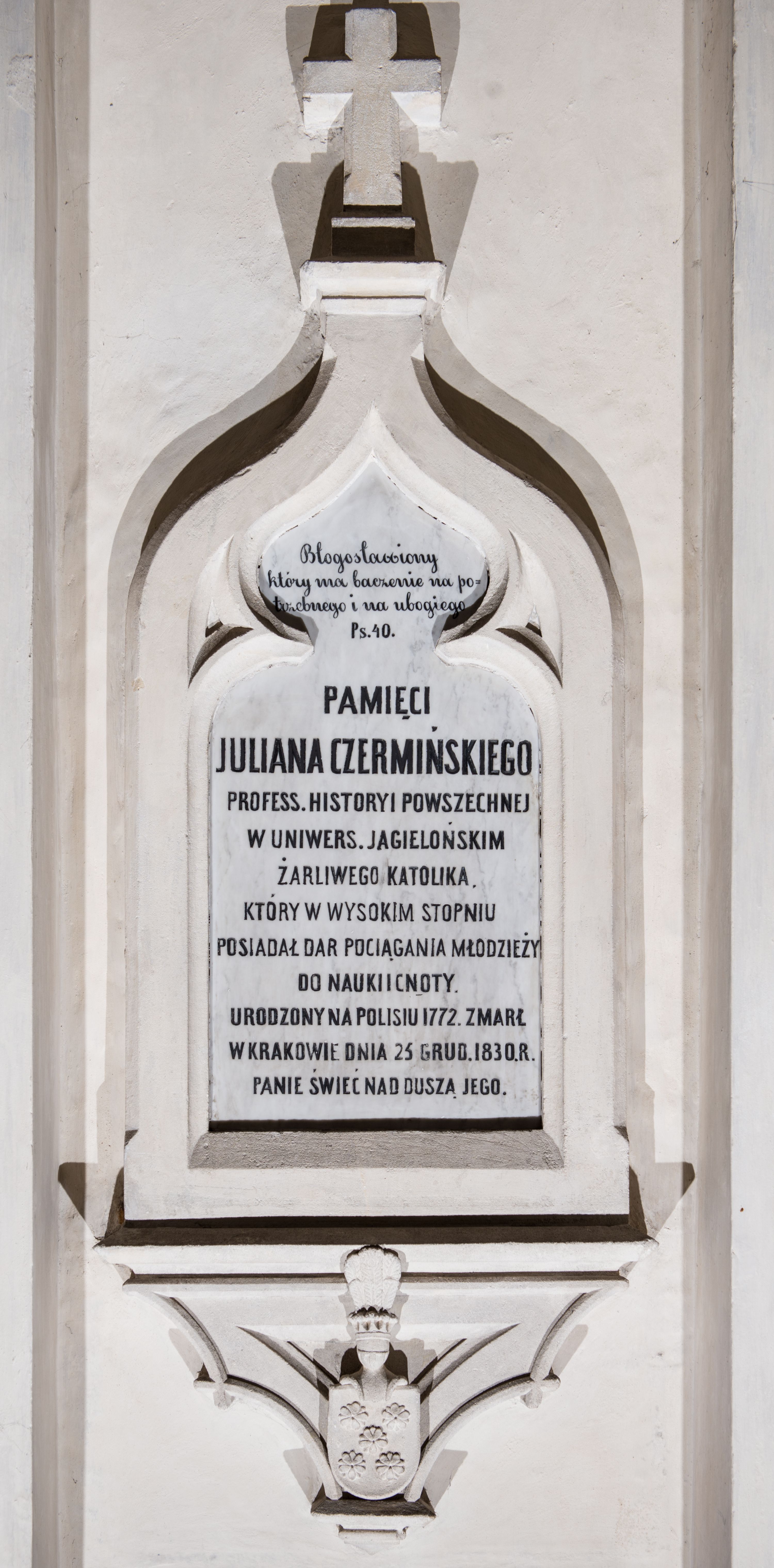 Epitafium Juliana Czerwińskiego, historyka, zasłużonego profesora Uniwersytetu Jagiellońskiego wykonano po jego śmierci w 1830 roku.
