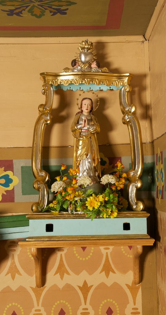Feretron z figurą Najświętszej Marii Panny Niepokalanie Poczętej powstał w XIX wieku.