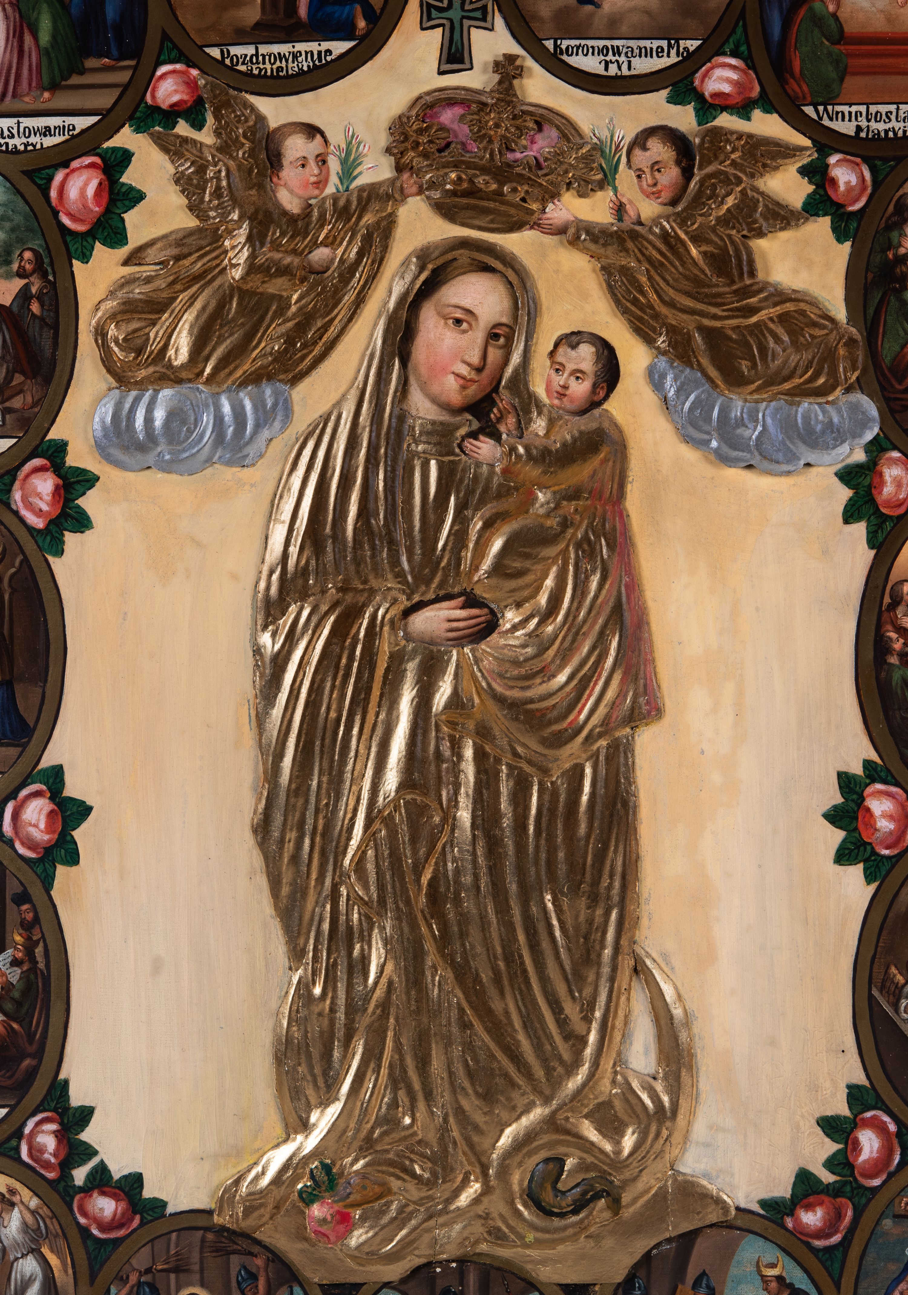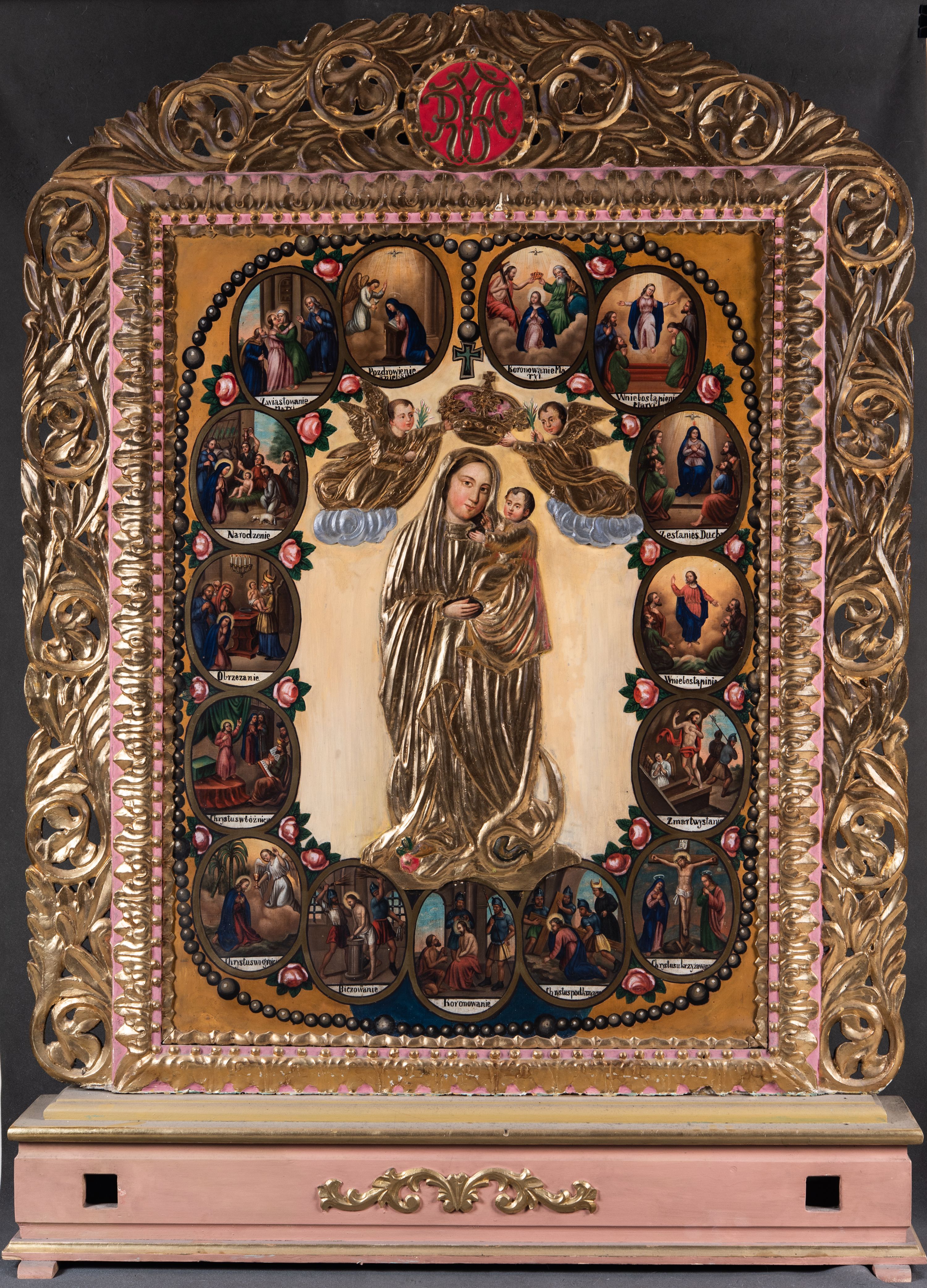 ks. Szymon Tracz, "feretron z obrazami Matki Boskiej Pocieszenia i Matki Boskiej Różańcowej", [w:] "Sakralne Dziedzictwo Małopolski", 2025, źródło: https://sdm.upjp2.edu.pl/dziela/feretron-z-obrazami-matki-boskiej-pocieszenia-i-matki-boskiej-rozancowej
