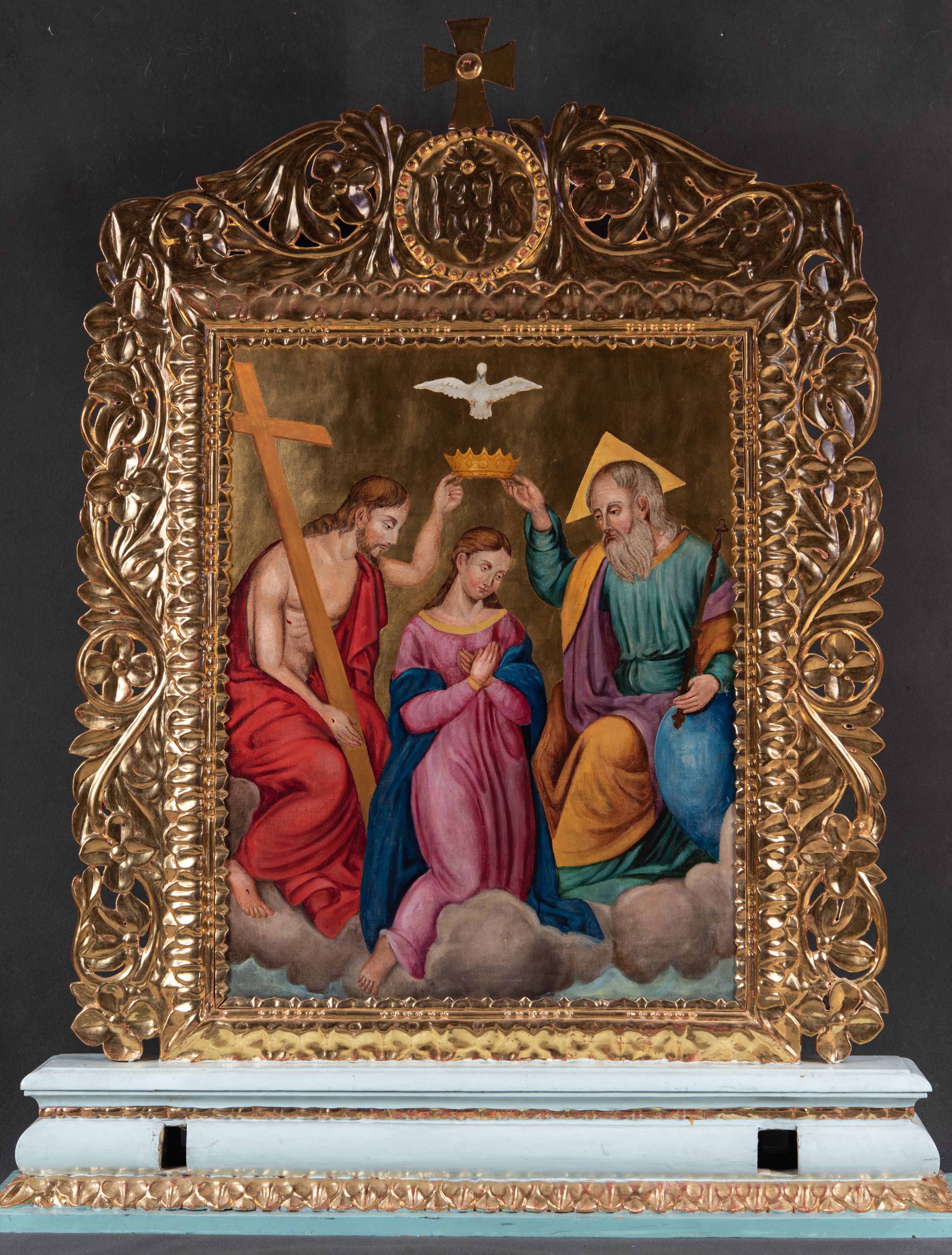ks. Szymon Tracz, "feretron z obrazami Matki Boskiej z Dzieciątiem i Koronacji Marii", [w:] "Sakralne Dziedzictwo Małopolski", 2026, źródło: https://sdm.upjp2.edu.pl/dziela/feretron-z-obrazami-matki-boskiej-z-dzieciatiem-i-koronacji-marii