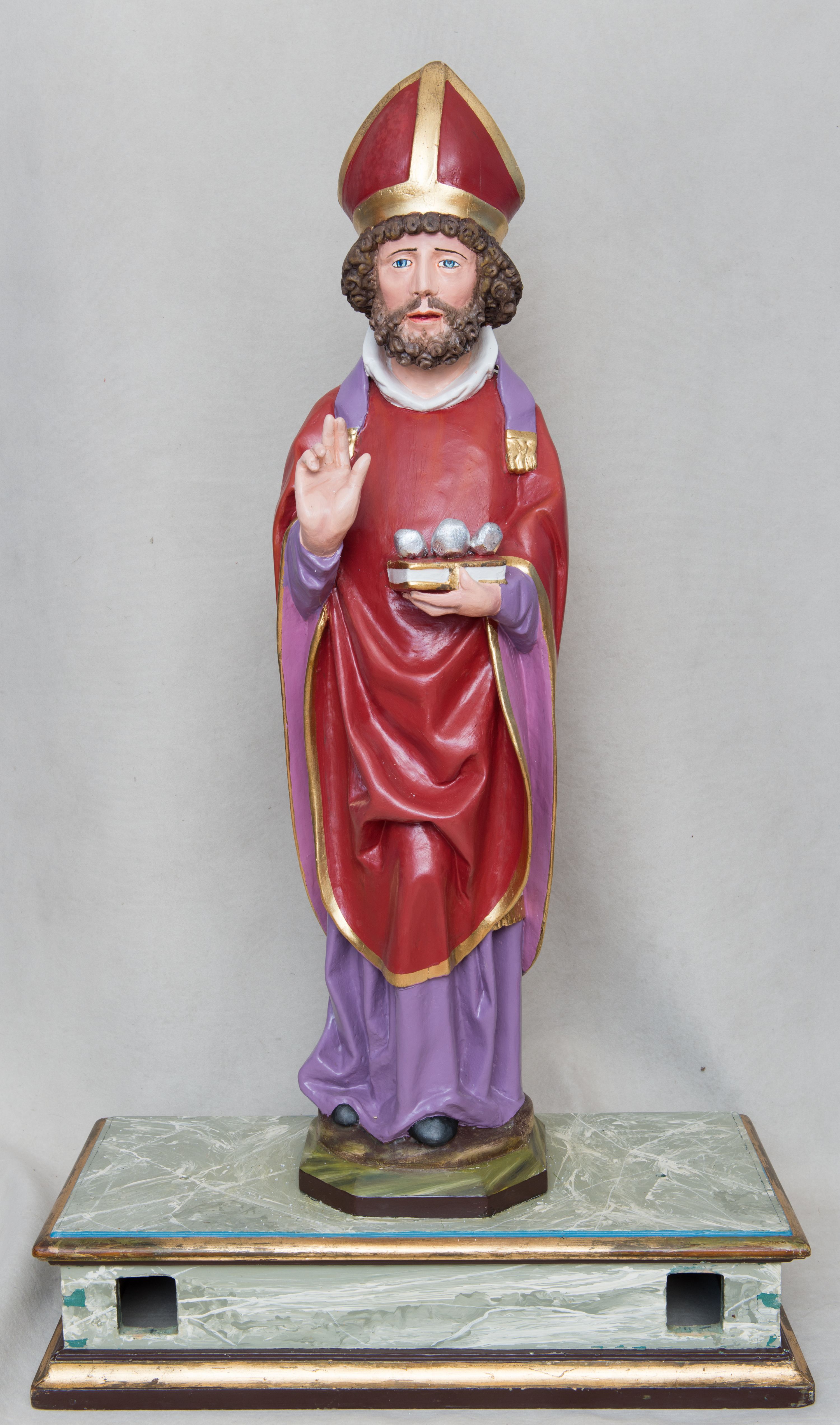 Rzeźba św. Mikołaja została wykonana na początku XVI wieku. W ostatnim wieku została zamontowana do postawy feretronu, gdzie służyła podczas procesji. Przez wiele lat silnie przemalowana farbami olejnymi była uważana za dzieło sztuki ludowej z XIX wieku.