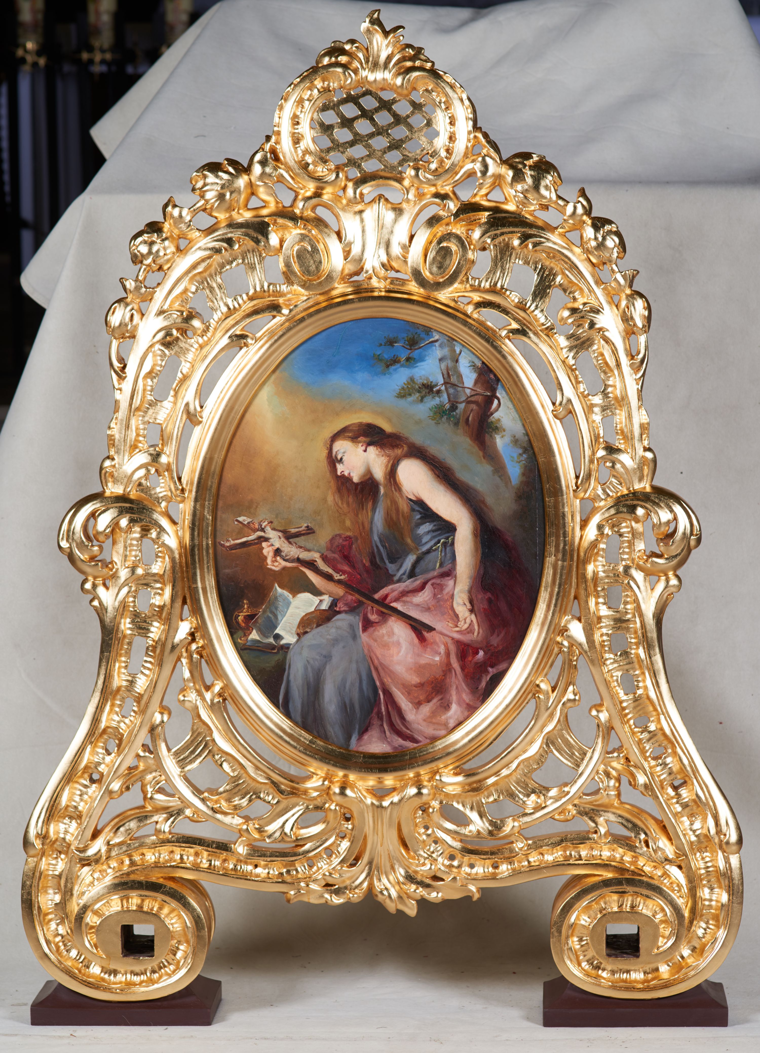 Obraz z wizerunkiem św. Marii Magdaleny prawdopodobnie przycięty, z dosztukowanymi bokami. Feretron odnowiony w 2015 roku.