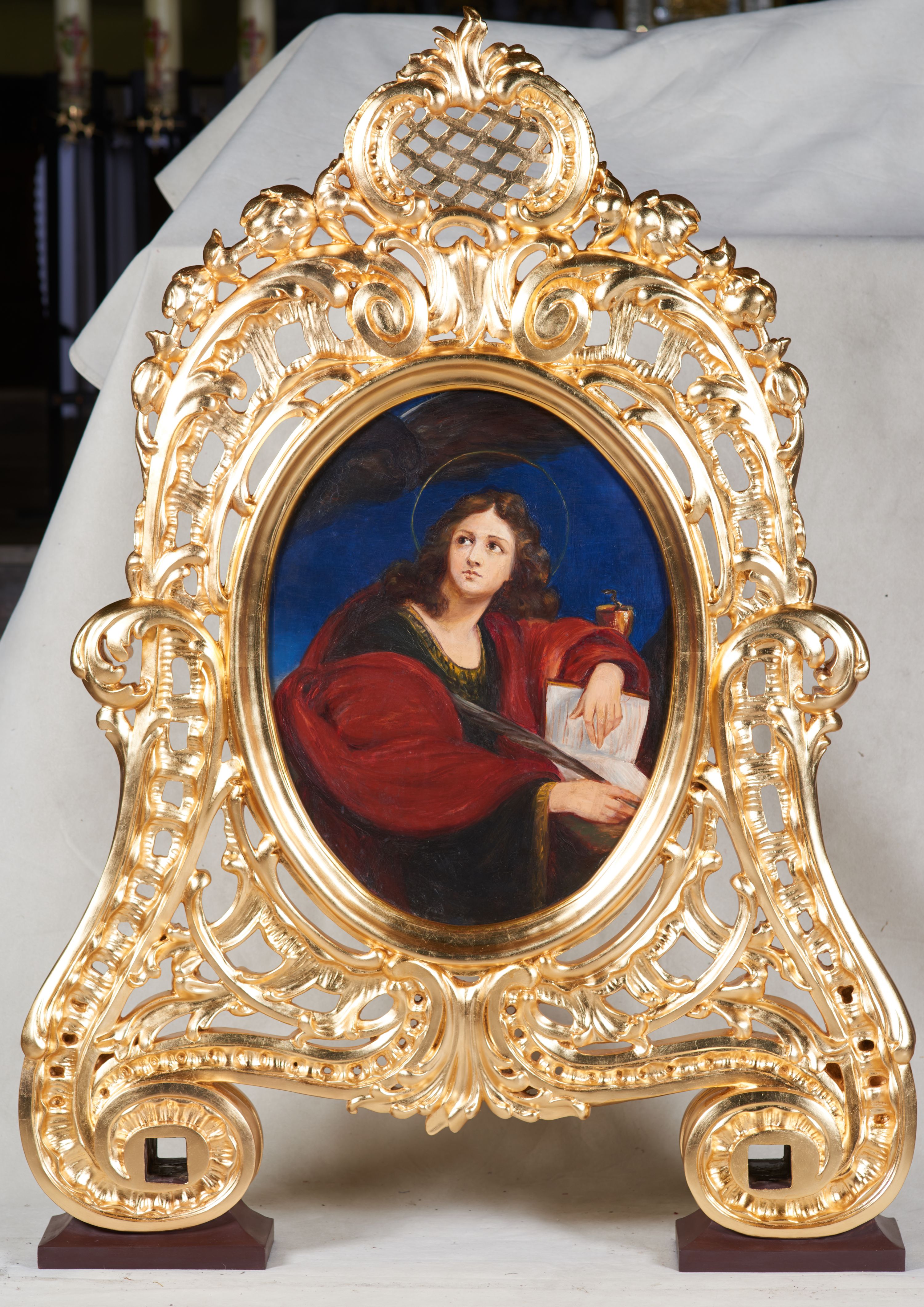 Maria Działo, "Feretron ze Św. Marią Magdaleną oraz św. Janem Ewangelistą", [w:] "Sakralne Dziedzictwo Małopolski", 2026, źródło: https://sdm.upjp2.edu.pl/dziela/feretron-ze-sw-maria-magdalena-oraz-sw-janem-ewangelista