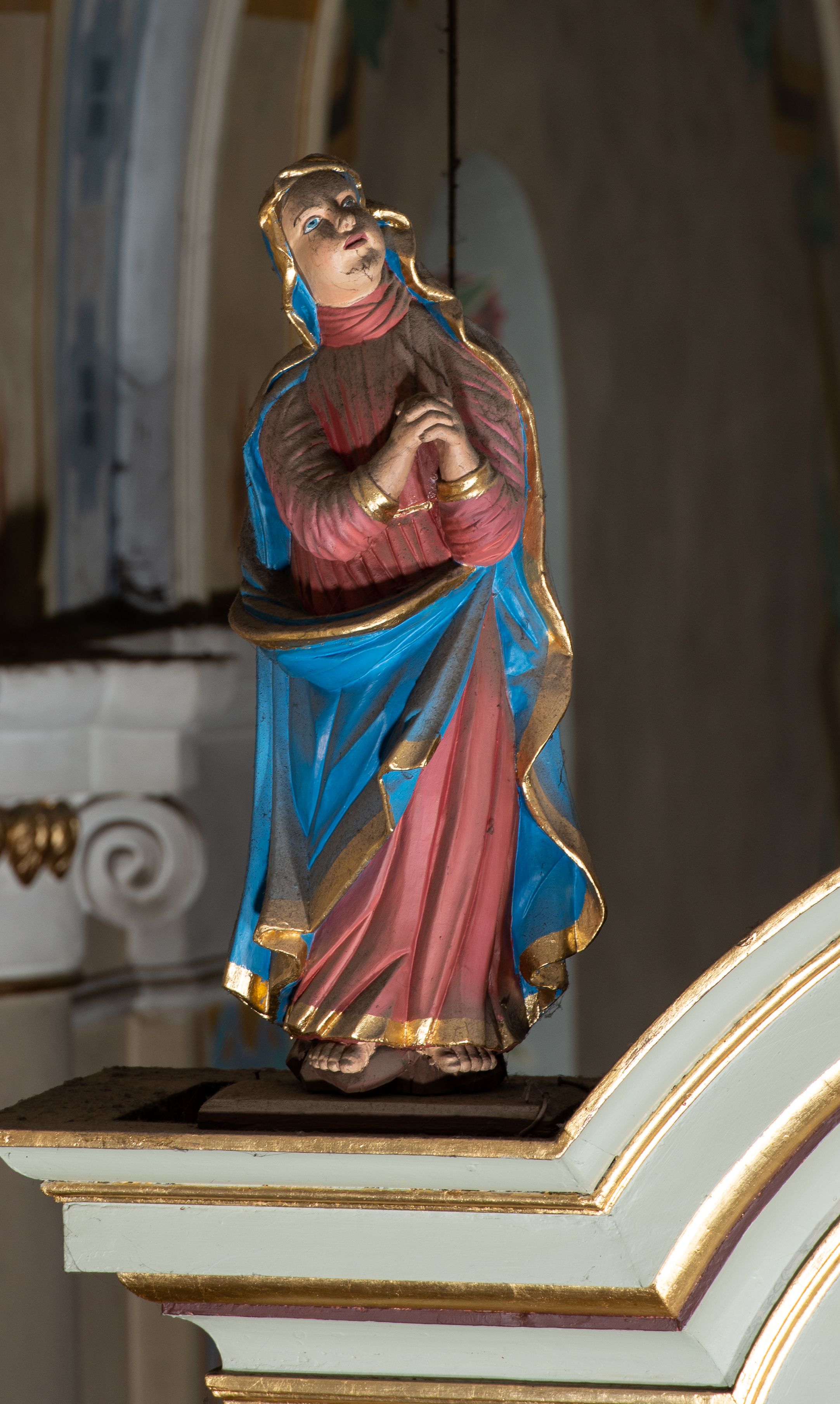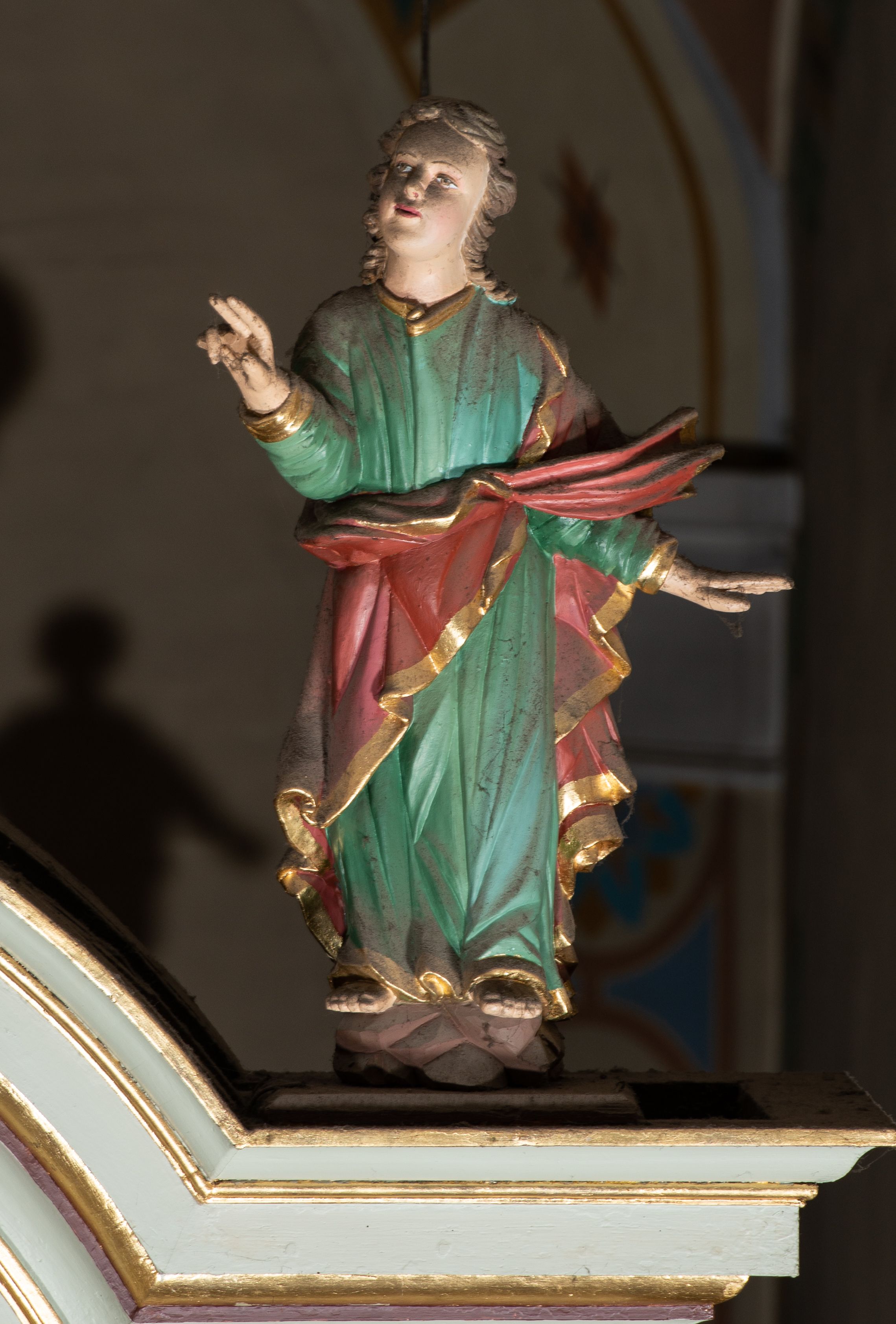 Silne zabrudzenia wszystkich figur na belce tęczowej.