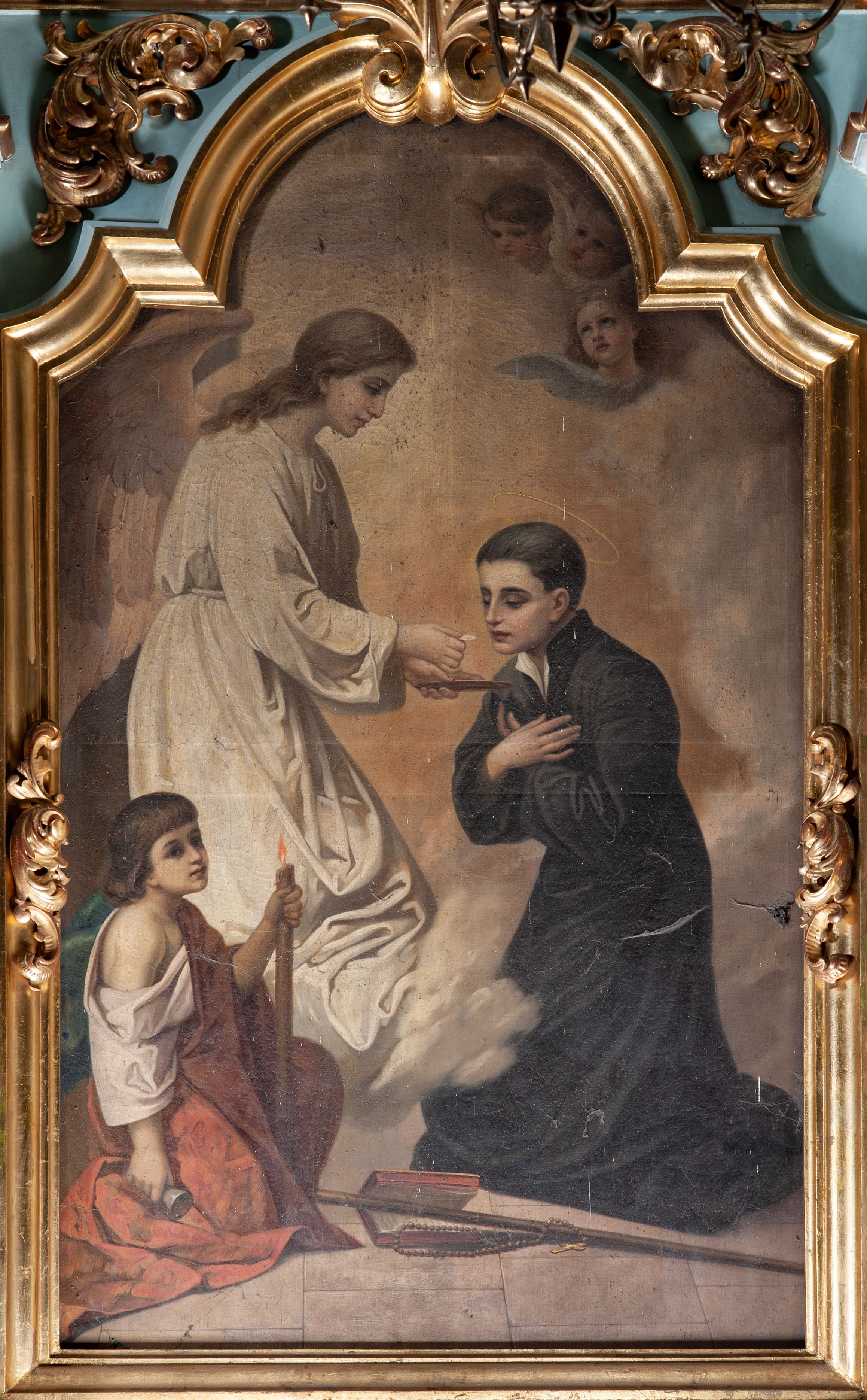 Obraz przedstawiający komunię anielską św. Stanisława Kostki wykonał Bolesław Rutkowski w 1914 roku. Dzieło przedstawia epizod z życia św. Stanisława Kostki, gdy ten podczas pobytu w Wiedniu i odbywanej wówczas choroby miał mistyczne wizje, w tym komunię anielską.