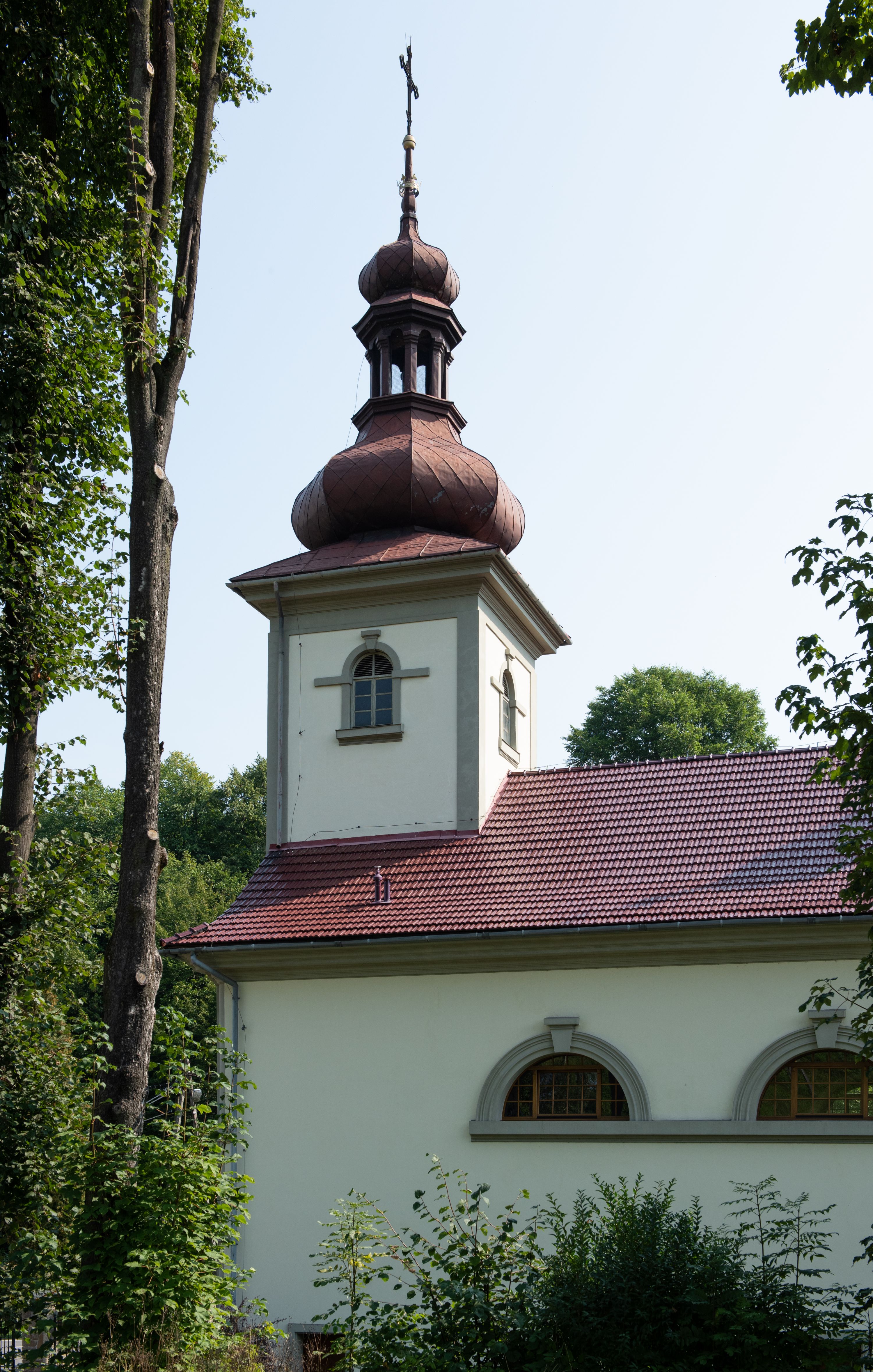 Pierwsza świątynia w tym miejscu była wzmiankowany w latach 1325-1327. Obecny kościół, ufundowany przez gminę, wybudowano w 1828 roku na miejscu poprzedniego, drewnianego. Świątynia jest budowlą o prostych formach architektonicznych, której części są jasno wydzielone, wnętrze jest klarownie artykułowane, a zewnętrzne elewacje pozostają niemal gładkie – można ją zakwalifikować do stylu józefińskiego.