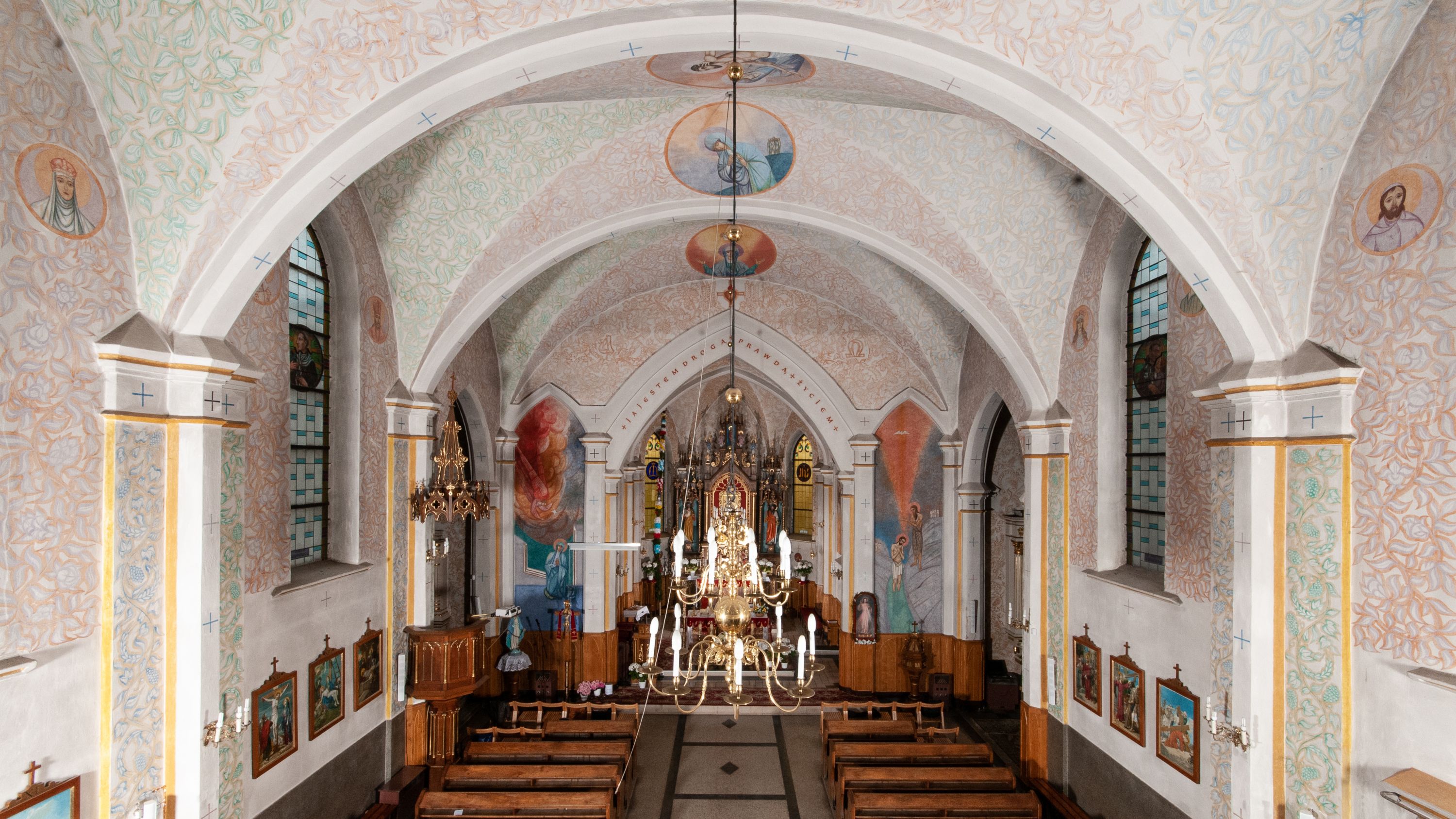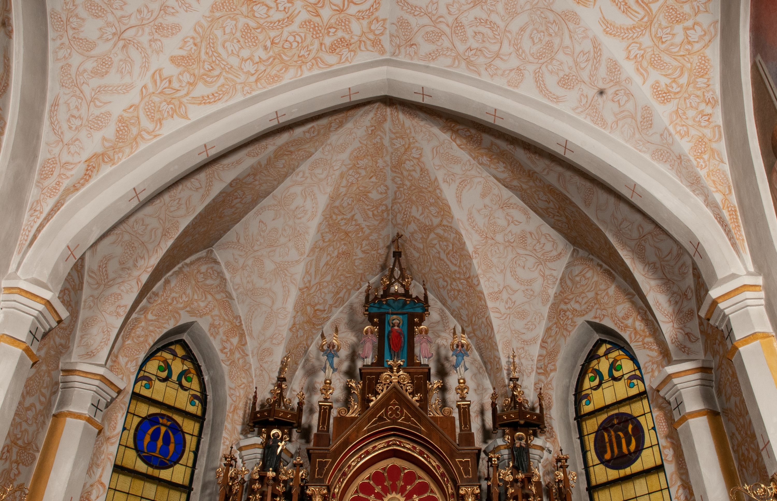 Kościół w Woli Batorskiej to niewielka budowla wykonana w stylu neogotyckim na tradycyjnym planie krzyża łacińskiego, zakończonego wieloboczną absydą o ostrołukowo zamkniętych oknach wydzielonych na zewnątrz szkarpami. Autorem projektu, a także zapisów w kronice parafialnej był architekt Jan Franciszek Stobnicki. Na szczególną uwagę w świątyni zasługuje zespół witraży wykonany w pracowni Tadeusza Wilkosza w czasie jej budowy. Autorem projektów był Zygmunt Wierusz Kowalski. Artysta wykonał również projekty do kościoła w Krakowie-Kosocicach, na co wskazują niemal identyczne przedstawienia św. Józefa z Dzieciątkiem i pelikana karmiącego młode pisklęta. Witraże w Woli Batorskiej fundowali mieszkańcy parafii i kapłani z nią związani: ksiądz Józef Krupa i ksiądz Andrzej Kiełboń. Przedstawienia figuralne noszą znamiona akademickiej idealizacji, można jednak zauważyć również pewne dążenie do pewnej sumaryczności w ujęciu postaci. W partiach dekoracyjnych pojawiają się motywy z witrażownictwa młodopolskiego – stylizowane kwiaty oraz międzywojennego – geometryczne bordiury. Ołtarz główny pochodzi z 1948 roku. Jego autorem jest znany rzeźbiarz Wojciech Maciejowski. Podobnie jak architektura świątyni ołtarz został wykonany w stylu neogotyckim. W trójosiowej nastawie złożono elementy stosowane w architekturze gotyckiej, takie jak ażurowe wieżyczki zwieńczone pinaklami, dekorujące je kwiatony oraz żabki, łuki ostre, wimpergi czy maswerki. Rzeźbiarz prowadził warsztat zlokalizowany przy ulicy Mazowieckiej w Krakowie, a także przez pewien czas posiadał dodatkową pracownię przy krakowskim klasztorze Kanoników Regularnych Laterańskich.