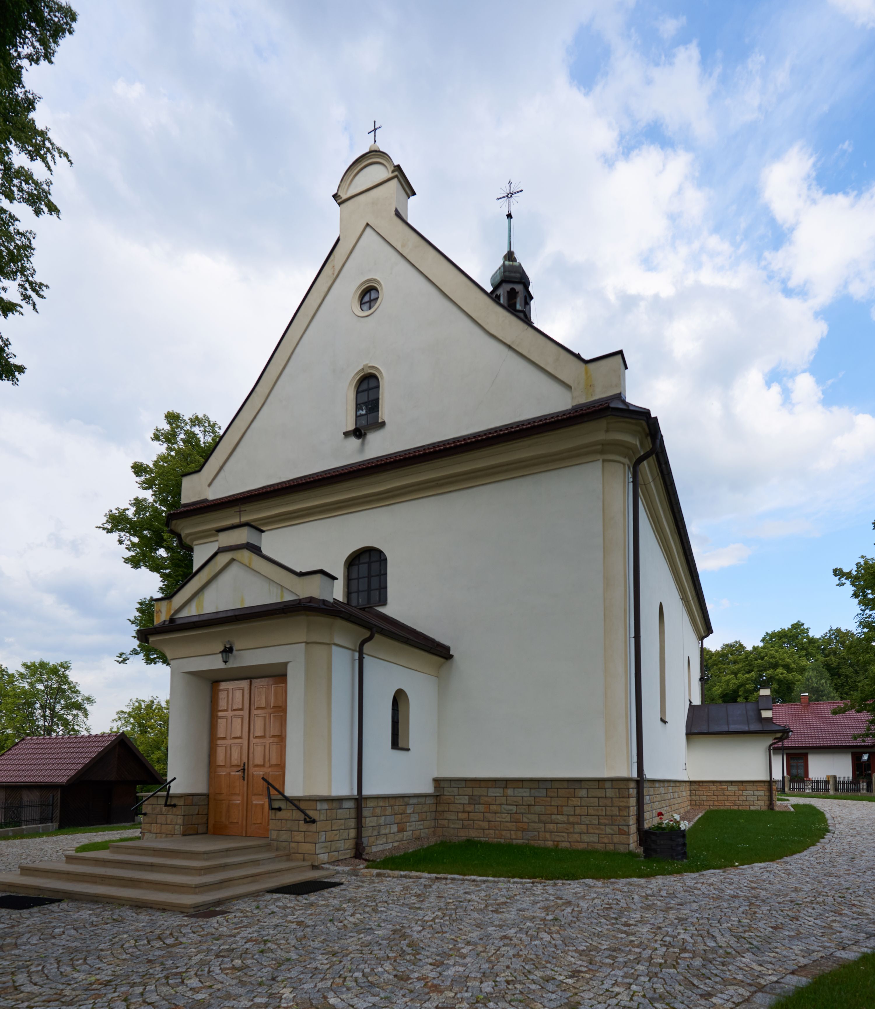 W 1803 roku na miejscu starego, drewnianego kościoła zaczęto wznosić nową, murowaną świątynię, którą w 1823 (1826?) roku konsekrował biskup Grzegorz Tomasz Ziegler. W 1835 roku wieżyczkę na sygnaturkę nakryto blachą, w 1851 otynkowano fasadę, rok później resztę kościoła otynkowano i pobielono, a w 1861 roku naprawiono wieżyczkę na sygnaturkę. W 1967 roku kościół został zelektryfikowany, zaś w 1971 roku wyposażenie wpisano do rejestru zabytków. W latach siedemdziesiątych XX wieku do zakrystii dobudowano kotłownię. W latach 2011-2012 w okna wstawiono witraże, budowlę otynkowano oraz wymieniono pokrycie dachu.