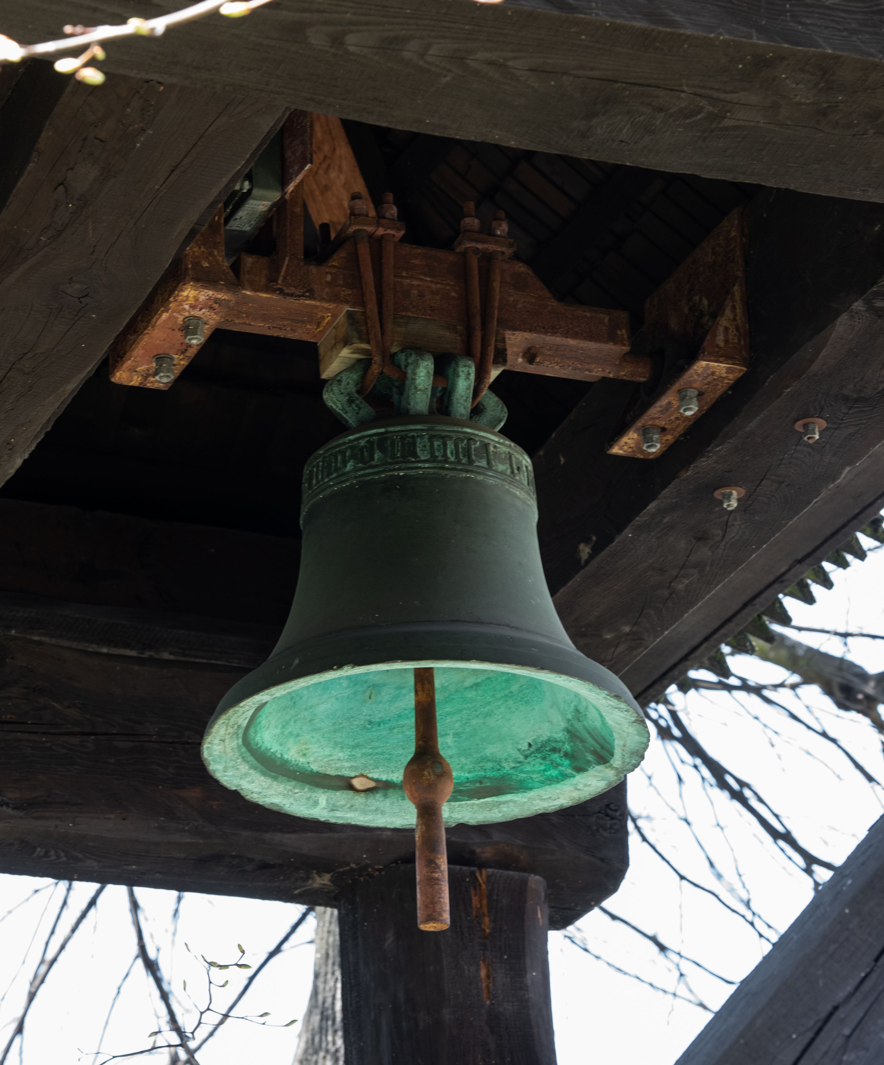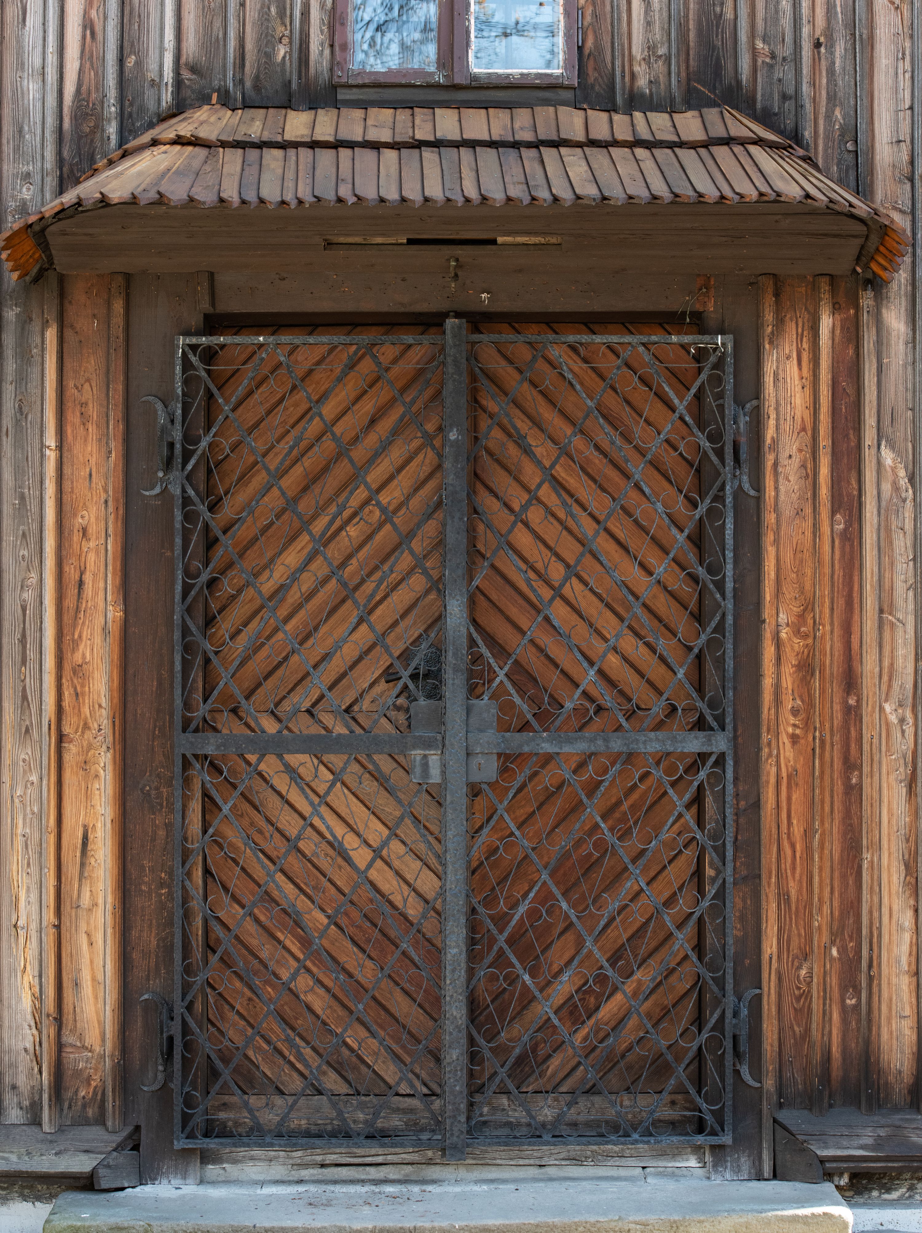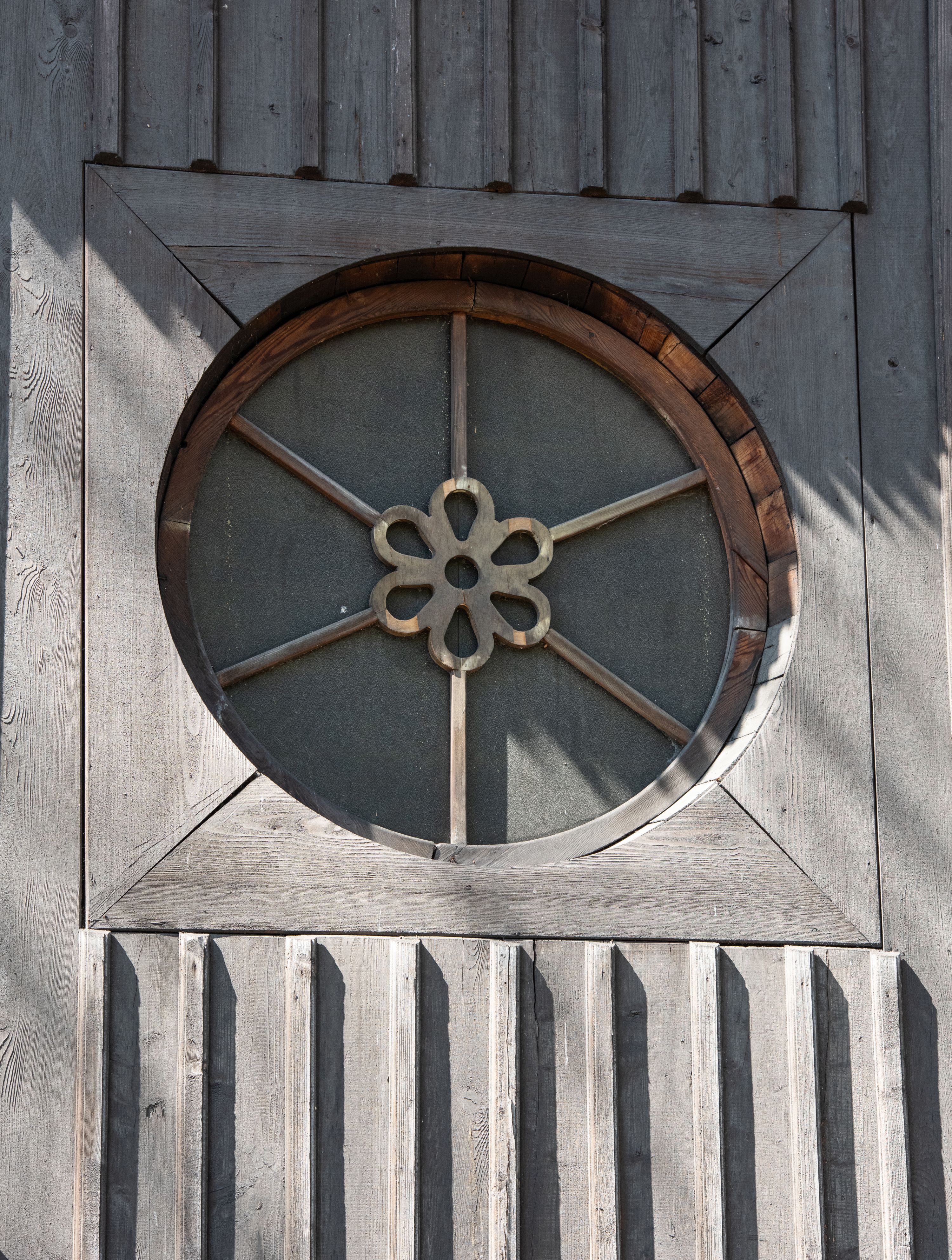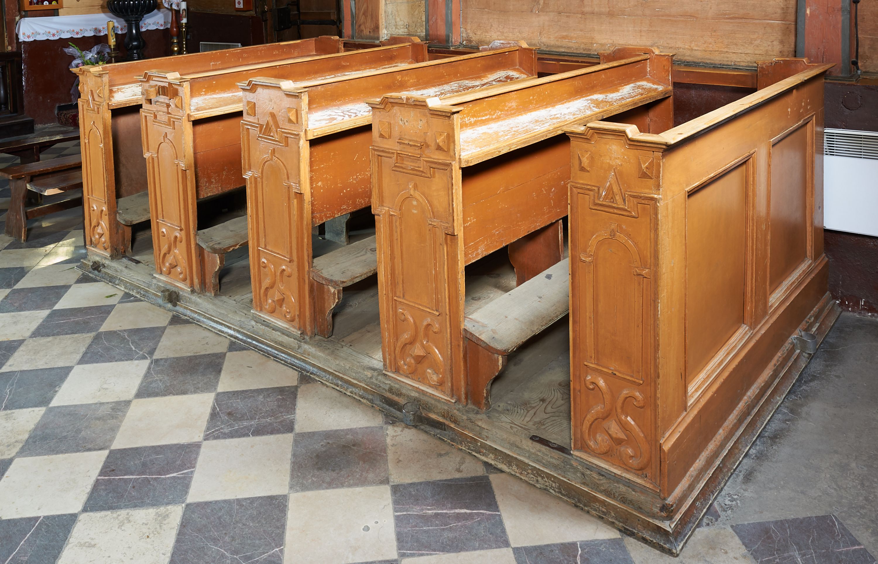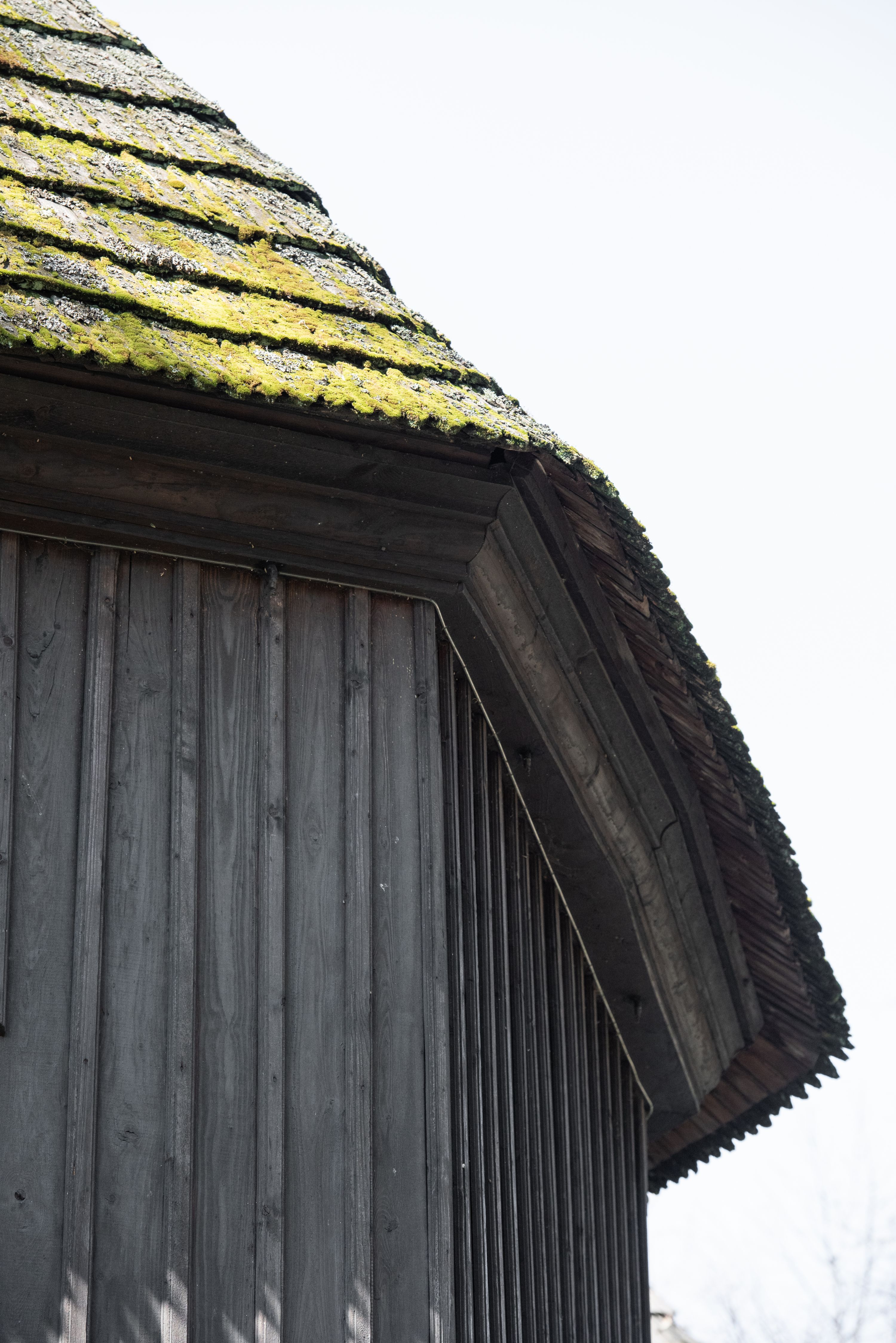Rzadki przykład drewnianej świątyni na rzucie krzyża łacińskiego i murowaną kaplicą grobową.