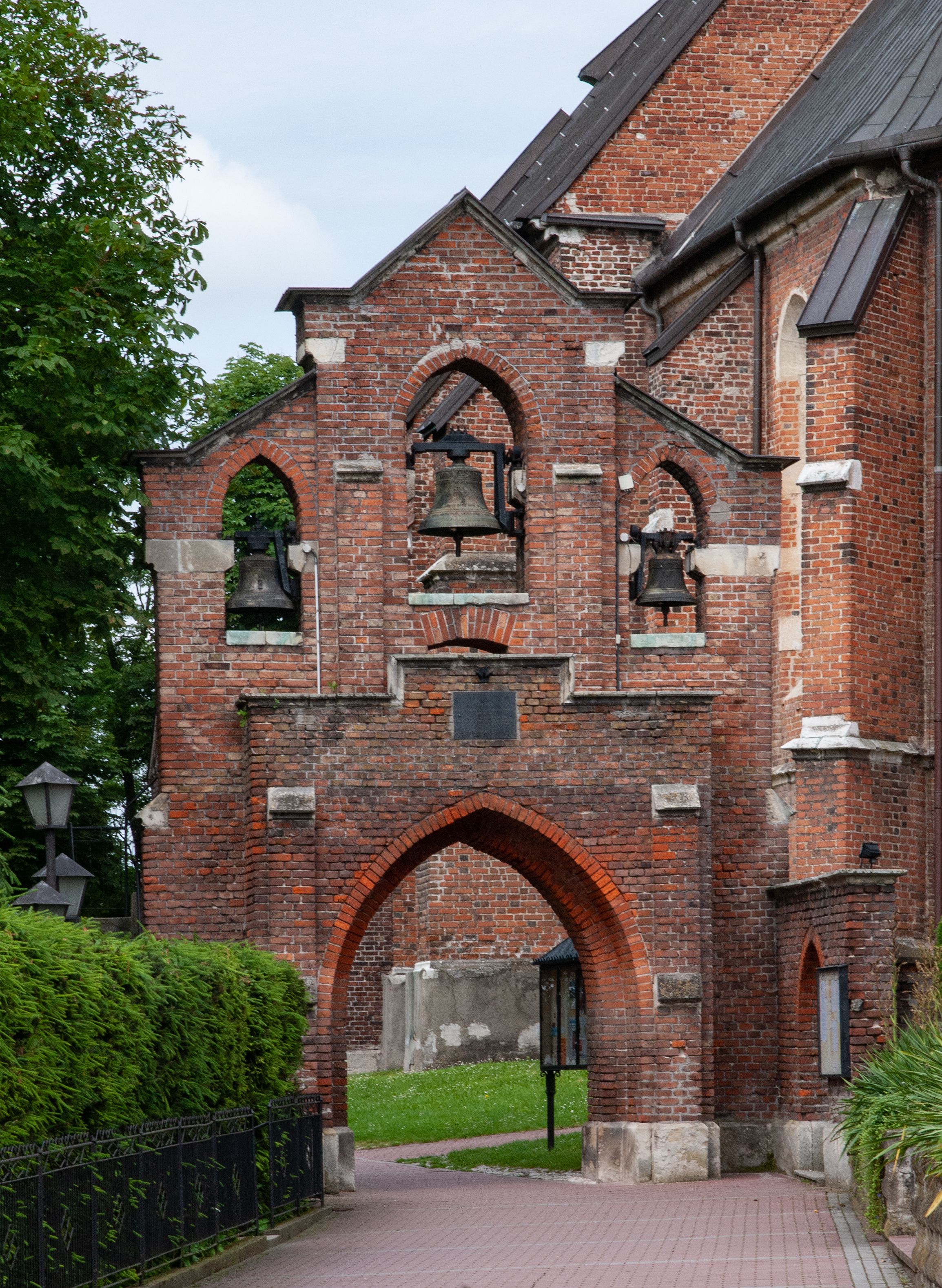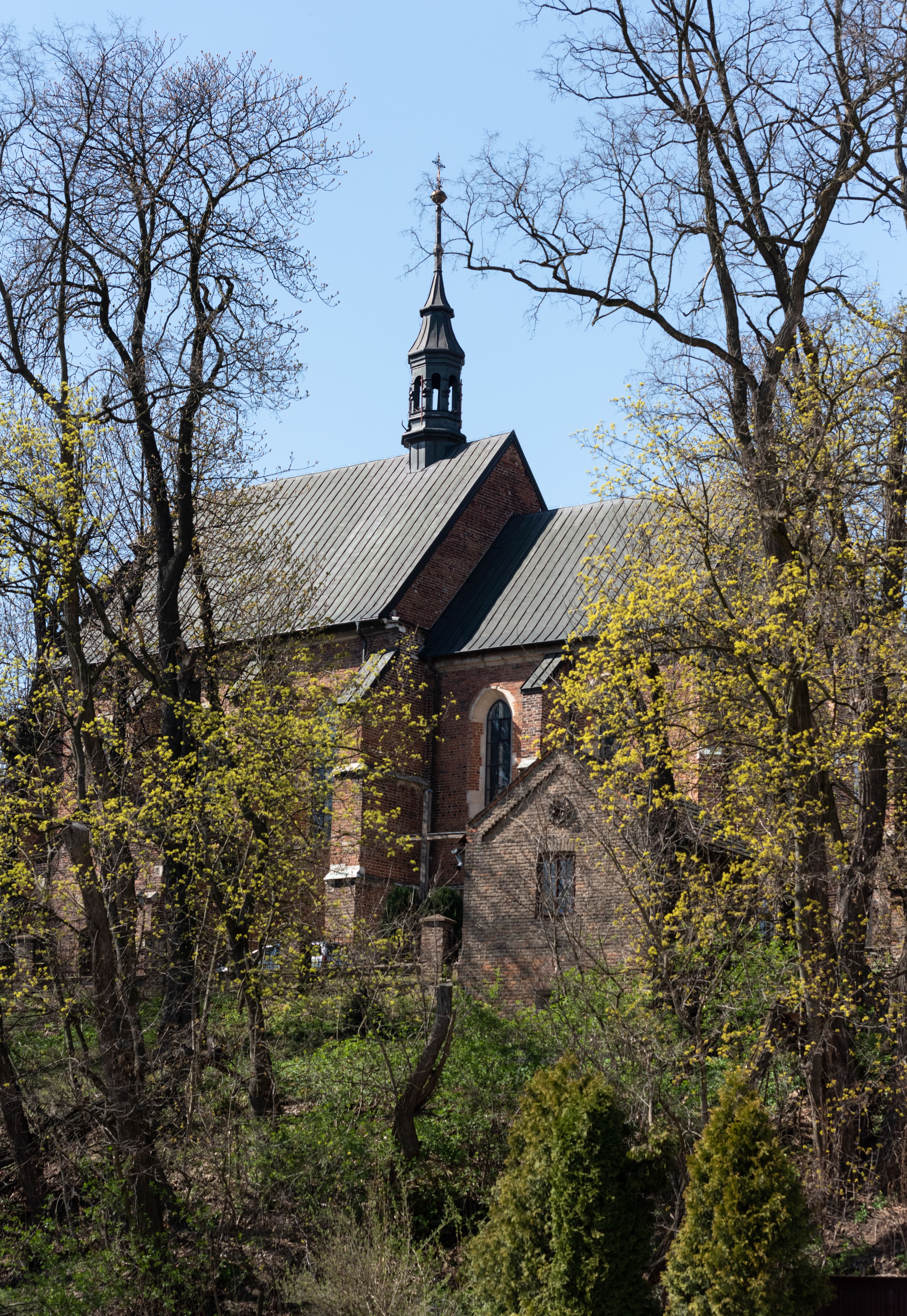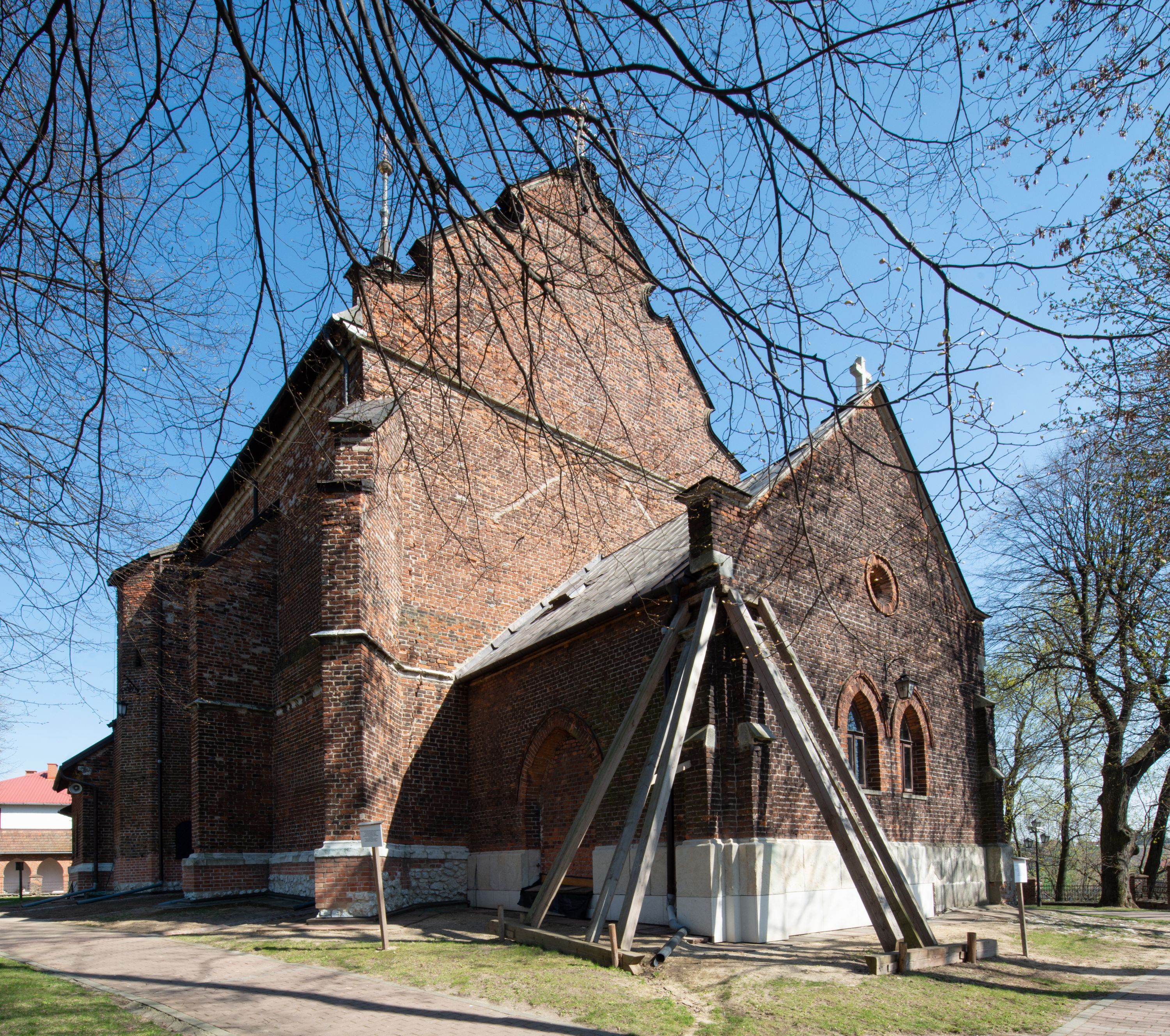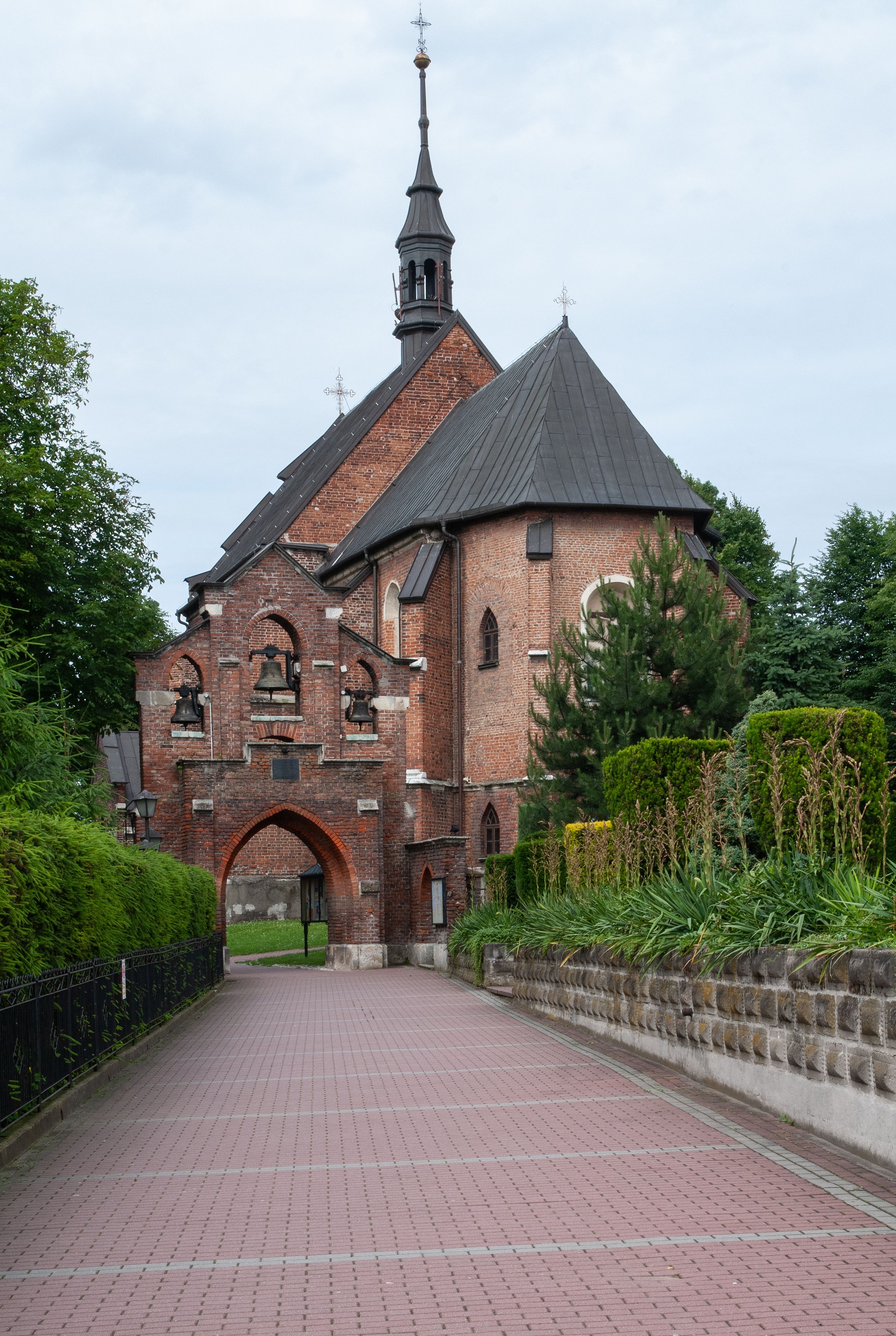Pierwotny drewniany kościół powstał z fundacji biskupa Iwona Odrowąża. Obecny murowany wybudowano w pierwszej ćwierci XV wieku, a przed 1433 rokiem. Około 1470 roku był wzmiankowany w źródłach jako kościół wymurowany z cegły przez proboszcza Mikołaja, kanonika krakowskiego, syna Hinczy lub Hinczki. Ów proboszcz został wspomniany w dokumencie biskupa krakowskiego Wojciecha Jastrzębca w 1422 roku. Sklepienie sieciowe jest datowane na przełom XV i XVI wieku. W XV lub XVI wieku dobudowano trójboczny aneks do prezbiterium. Na murze zakrystii znajduje się data 1579. Do prezbiterium dobudowano w 1742 roku kaplicę Ogrojcową ze skarbcem na piętrze. Kruchty od południa i zachodu są neogotyckie. W latach 1906-1911 dawną zakrystię przerobiono na kaplicę św. Franciszka i dobudowano do niej kruchtą.