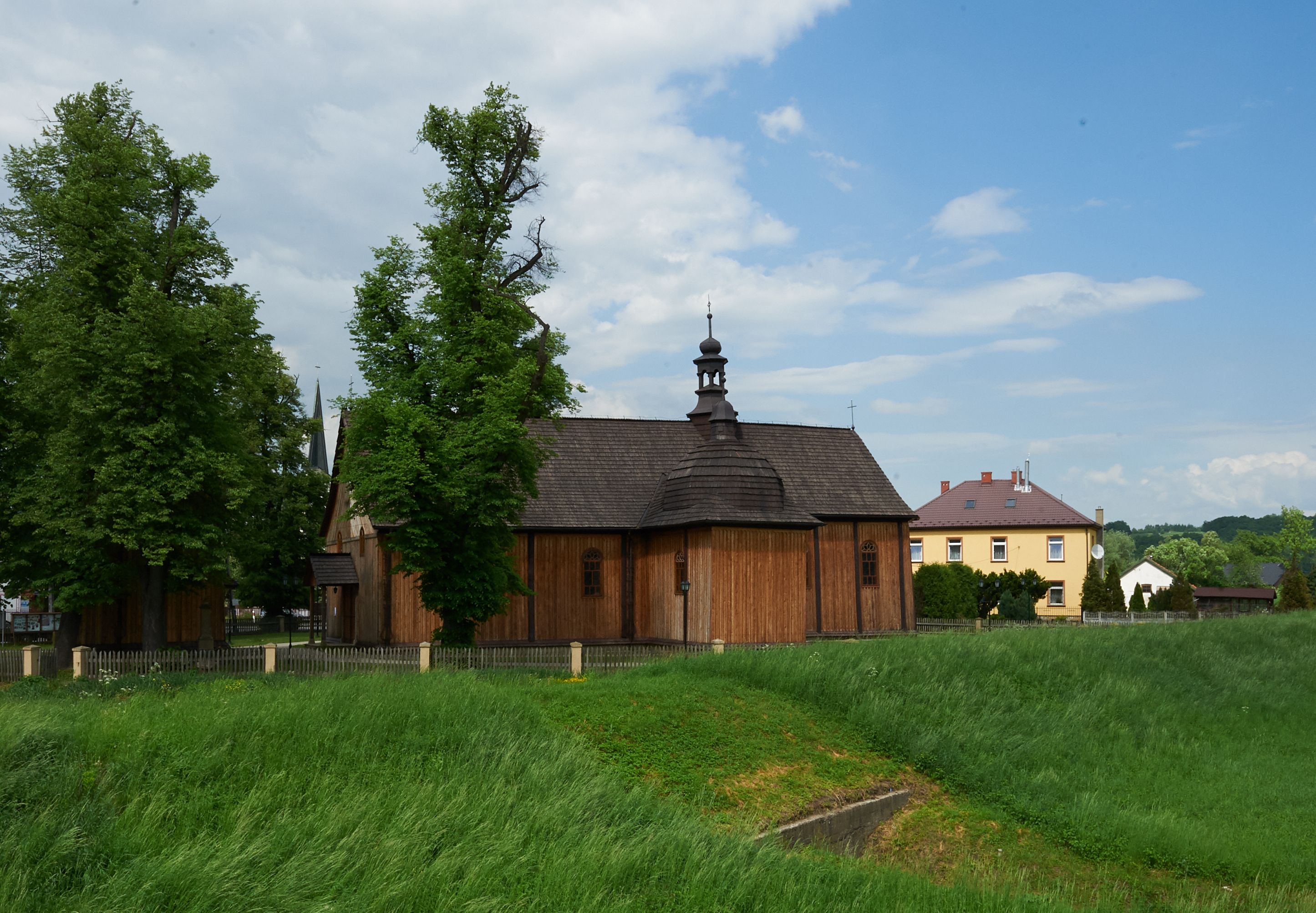 W inwentarzu z 1891 roku opisany został drewniany kościół z kaplicą, przedsionkiem, gankiem i murowaną zakrystią. Wewnątrz było pięć ołtarzy, ambona, organy, chrzcielnica, 3 konfesjonały, 13 obrazów na ścianach, stacje drogi krzyżowej, 5 feretronów, krucyfiks z dwiema figurami na belce tęczowej, etc. Za czasów probostwa Karola Guzkiewicza w latach 1899-1903 odrestaurowano kościół i postawiono nową dzwonnicę kosztem 14 349 koron 90 halemów. W 1903 roku kościół został odmalowany przez Michała Tarczałowicza z Bochni (napis pod chórem). W publikacji z 1916 roku wymieniono już cztery ołtarze boczne w nawie, a więc o jeden więcej. W 1921 roku komitet kościelny poprosił o „konkurencję” na odmalowanie kościoła. Trzy lata później ze składek sprawiono nowe dzwony. W 1944 roku wybudowano nowy parkan wokół kościoła – „podmurówka z betonu słupy kamienne i rygle i balasy drewniane”. W 1950 roku odnowiono prezbiterium i wyzłocono wielki ołtarz oraz obraz Matki Boskiej Różańcowej w kaplicy.