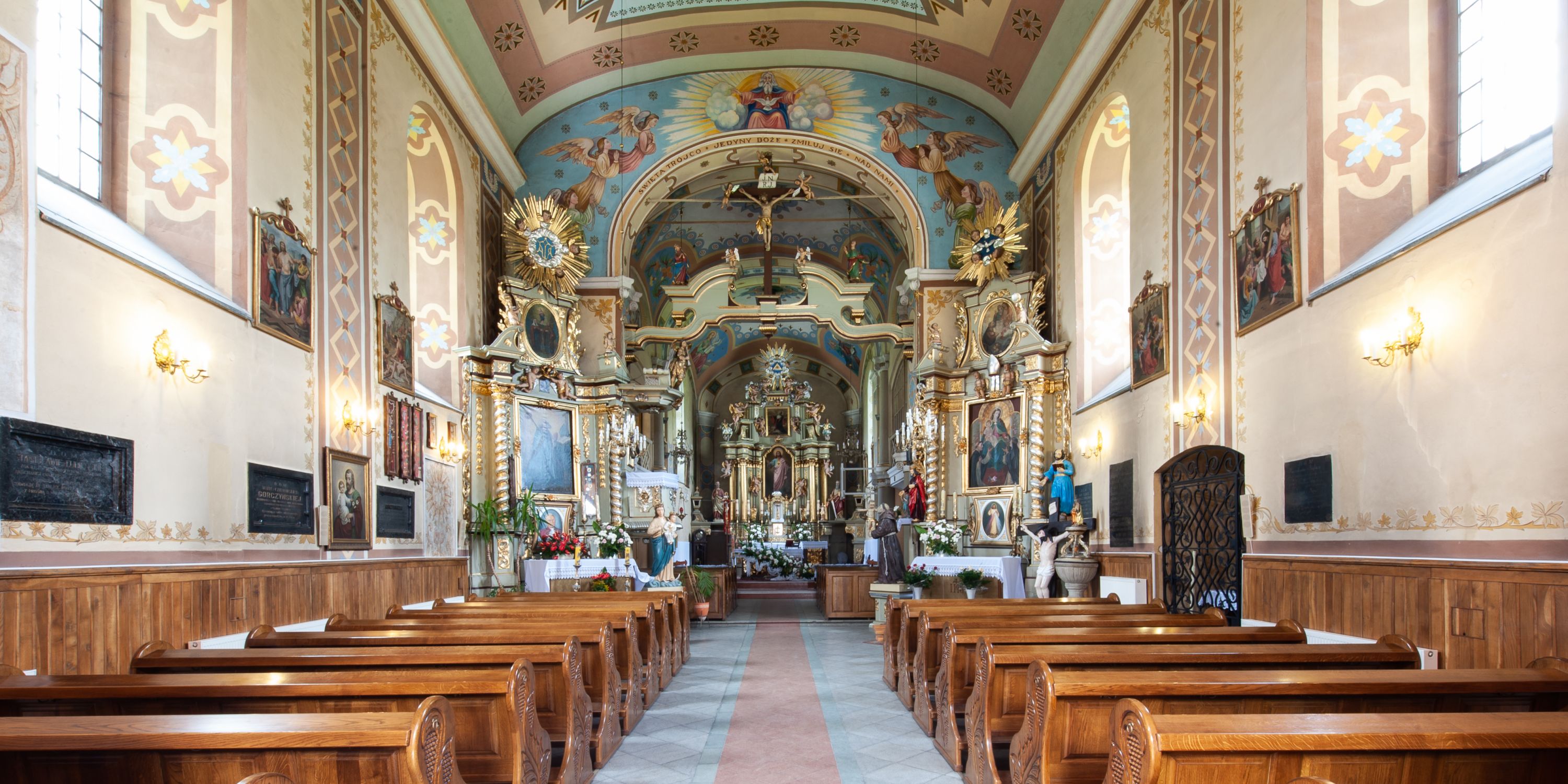 Świątynia w takim stanie wzmiankowana była w aktach wizytacji w 1645, 1663 i 1670 roku. W 1679 roku wymieniono już cztery ołtarze. W dokumentacjach powizytacyjnych z 1708 i 1729 roku wskazano ich wezwania, mianowicie główny Ukrzyżowania Pańskiego, boczne św. Mikołaja (prawy), Najświętszej Marii Panny (lewy) oraz Zdjęcia z krzyża.