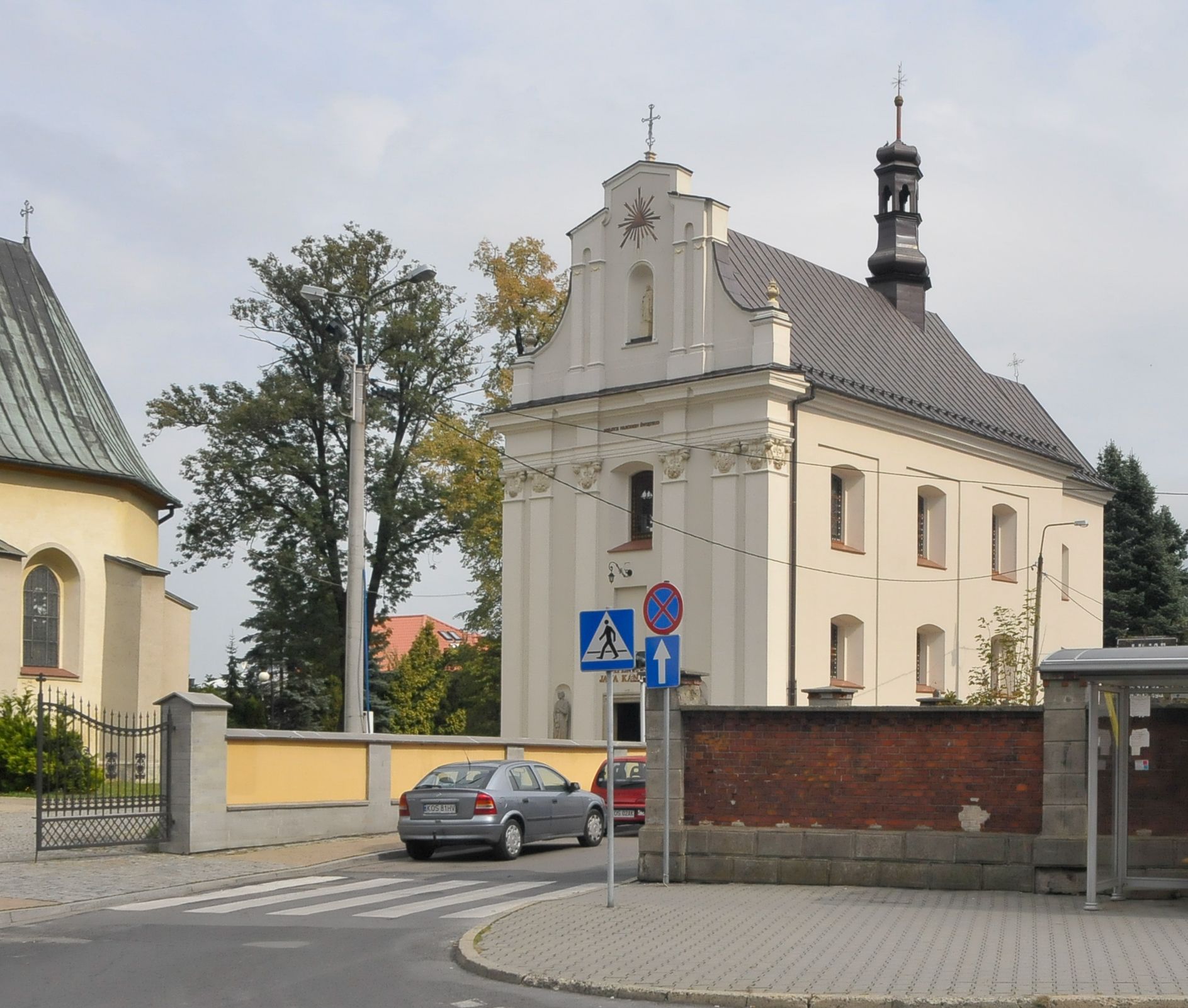 Kościół usytuowany jest za północną pierzeją zabudowy rynku, w bezpośrednim sąsiedztwie świątyni parafialnej, po jej południowo-wschodniej stronie.