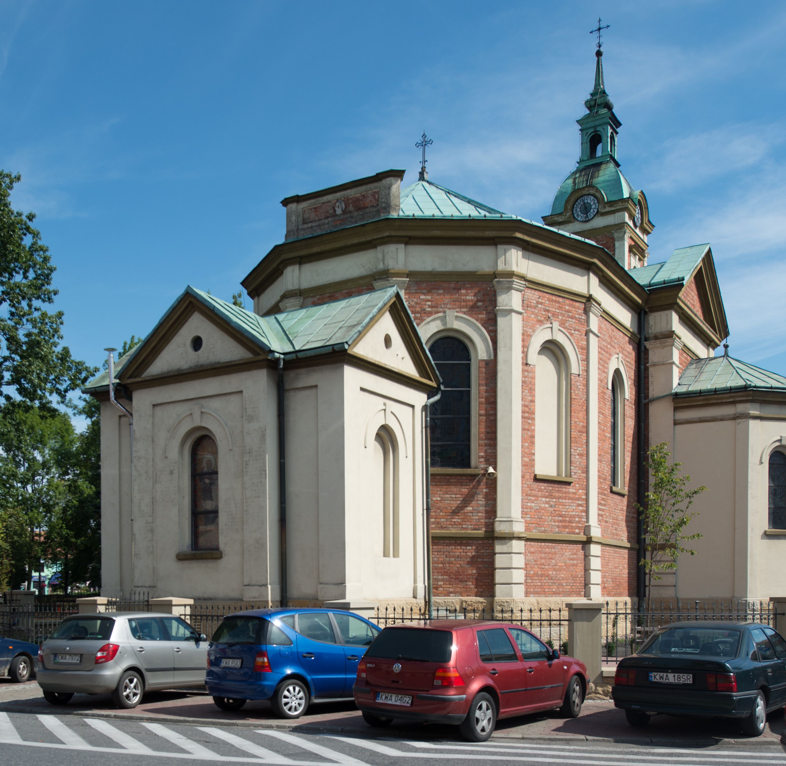 W 1887 roku przygotowano plany kościoła, lecz jego budowę przeprowadzono w latach 1902-1908. Plan jednonawowej świątyni został w latach dwudziestych XX wieku powiększony o kaplice boczne zgodnie z planami Józefa Merendy. Kościół jest budowlą eklektyczną.