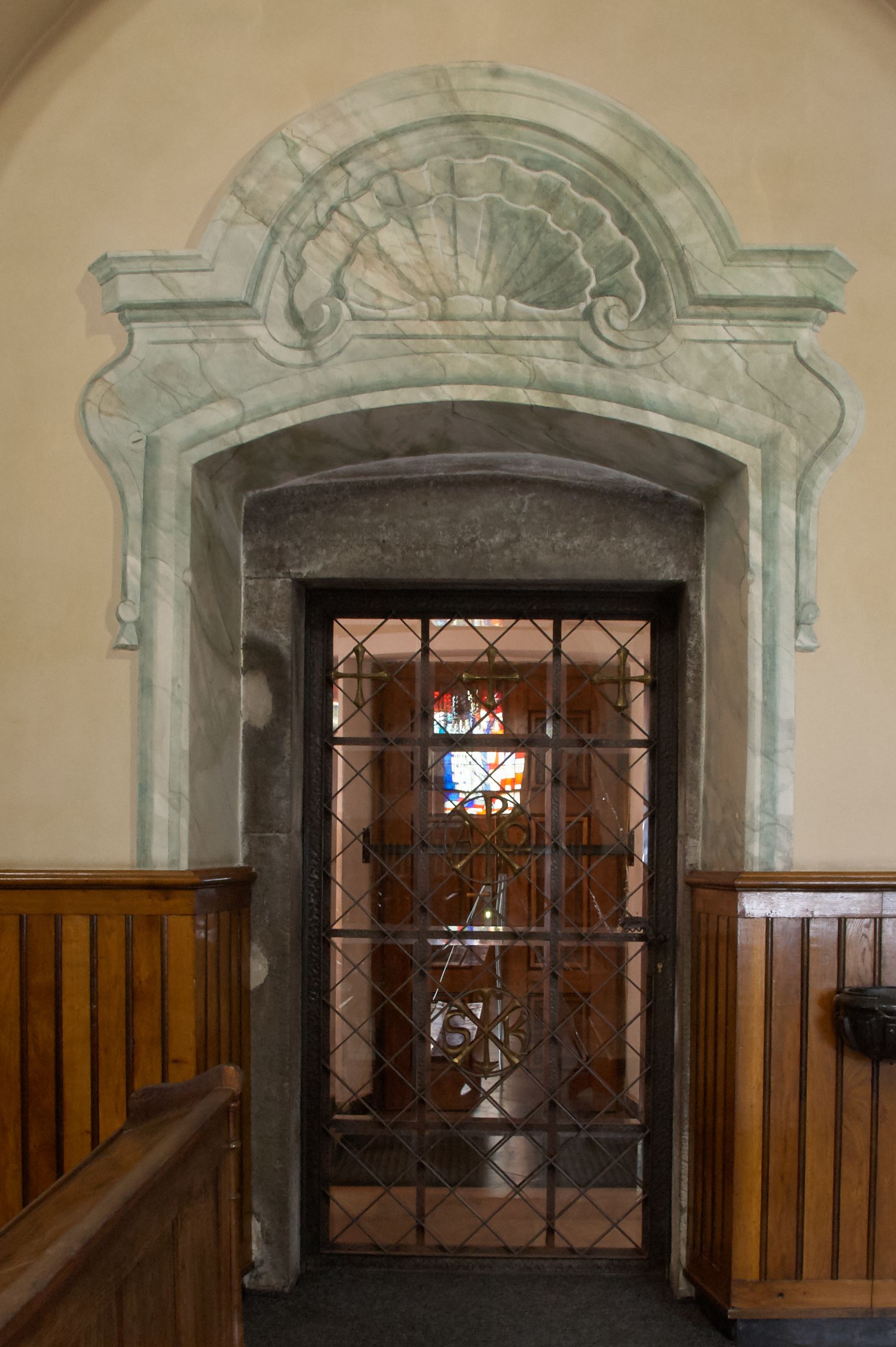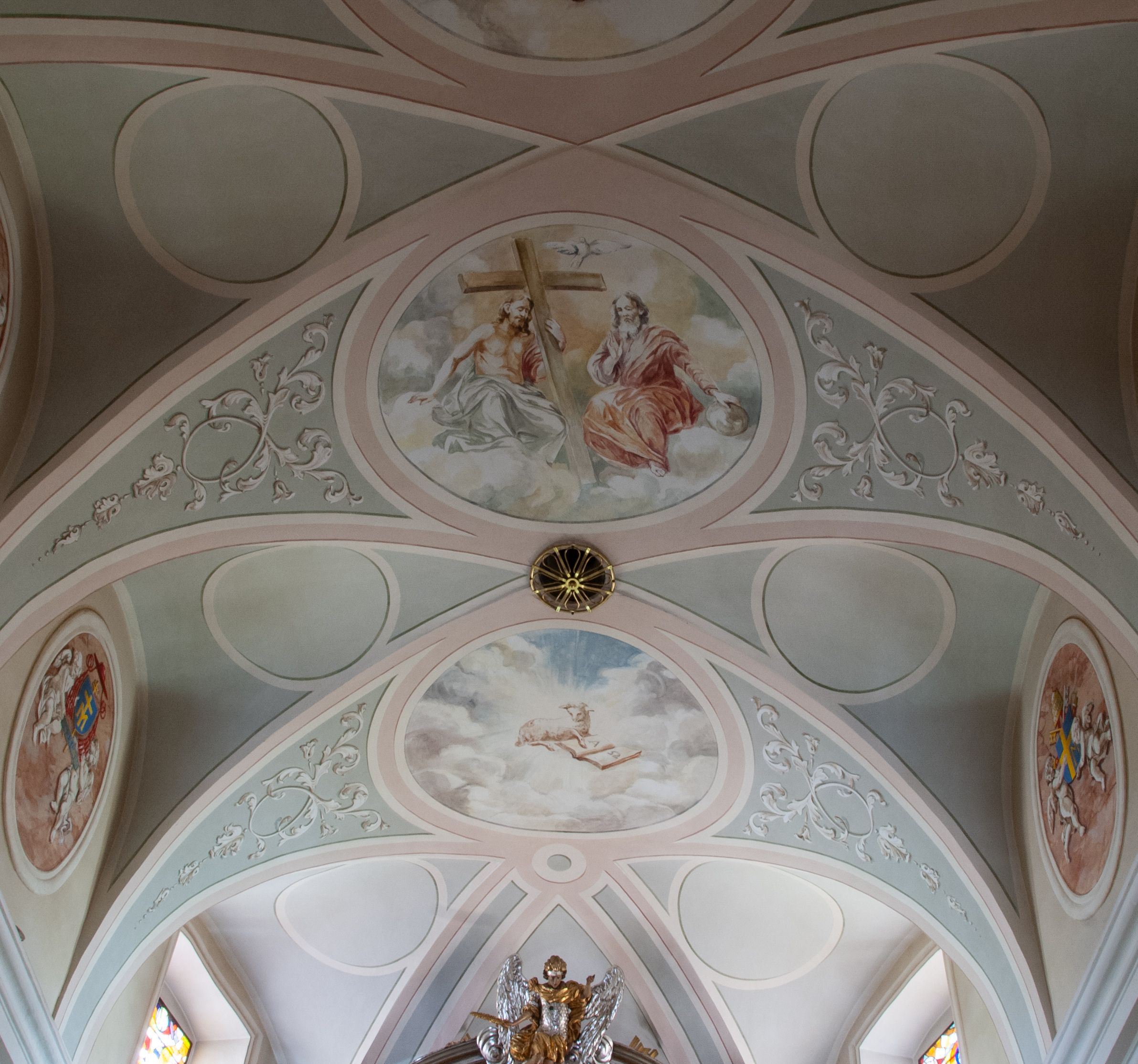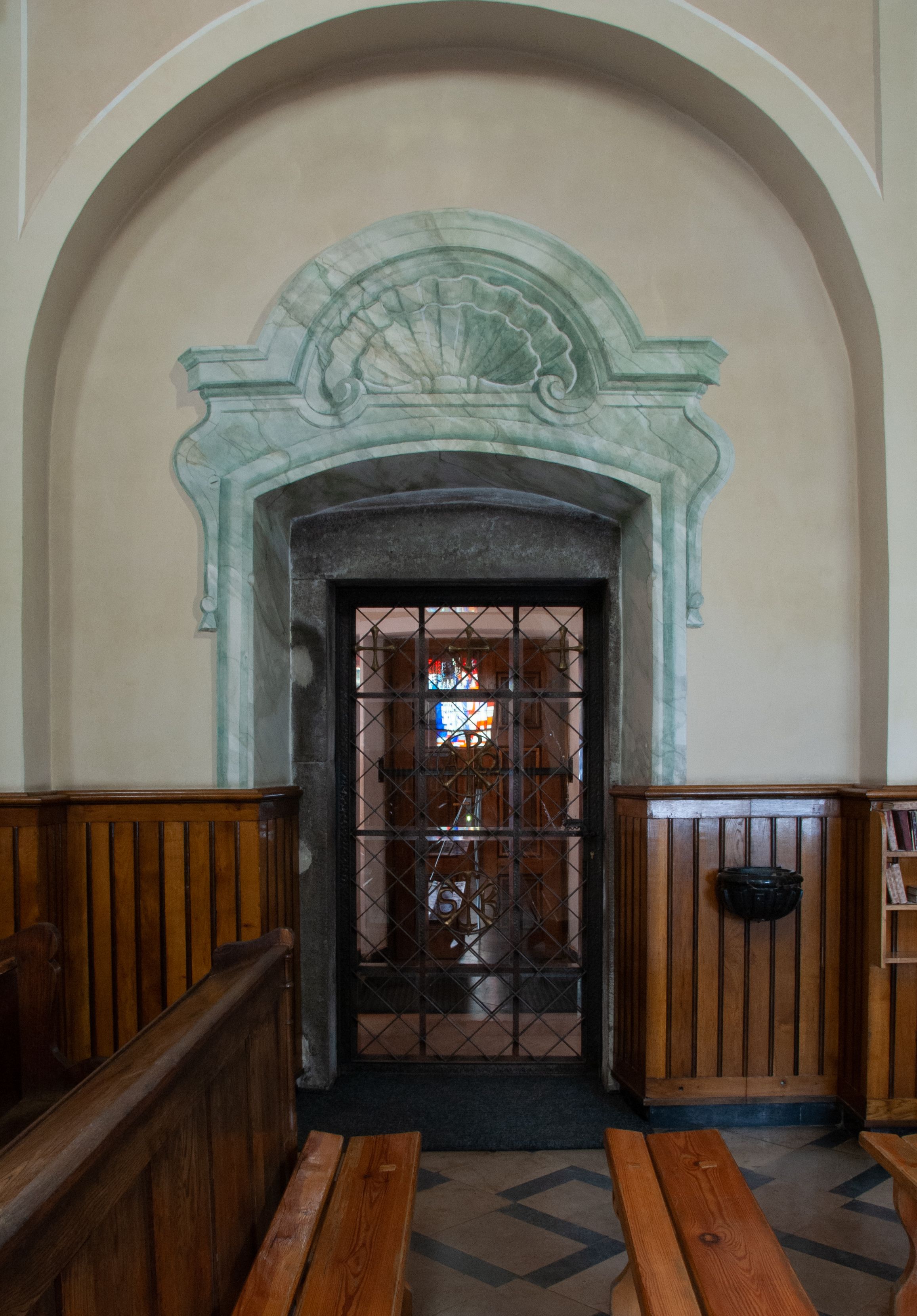W partii przyziemia oraz sklepienia prostokątne okna w rozglifionych obramieniach zamkniętych łukiem odcinkowym, na osi prezbiterium owalne. Od zachodu oraz od południa drzwi zamknięte łukiem odcinkowym.